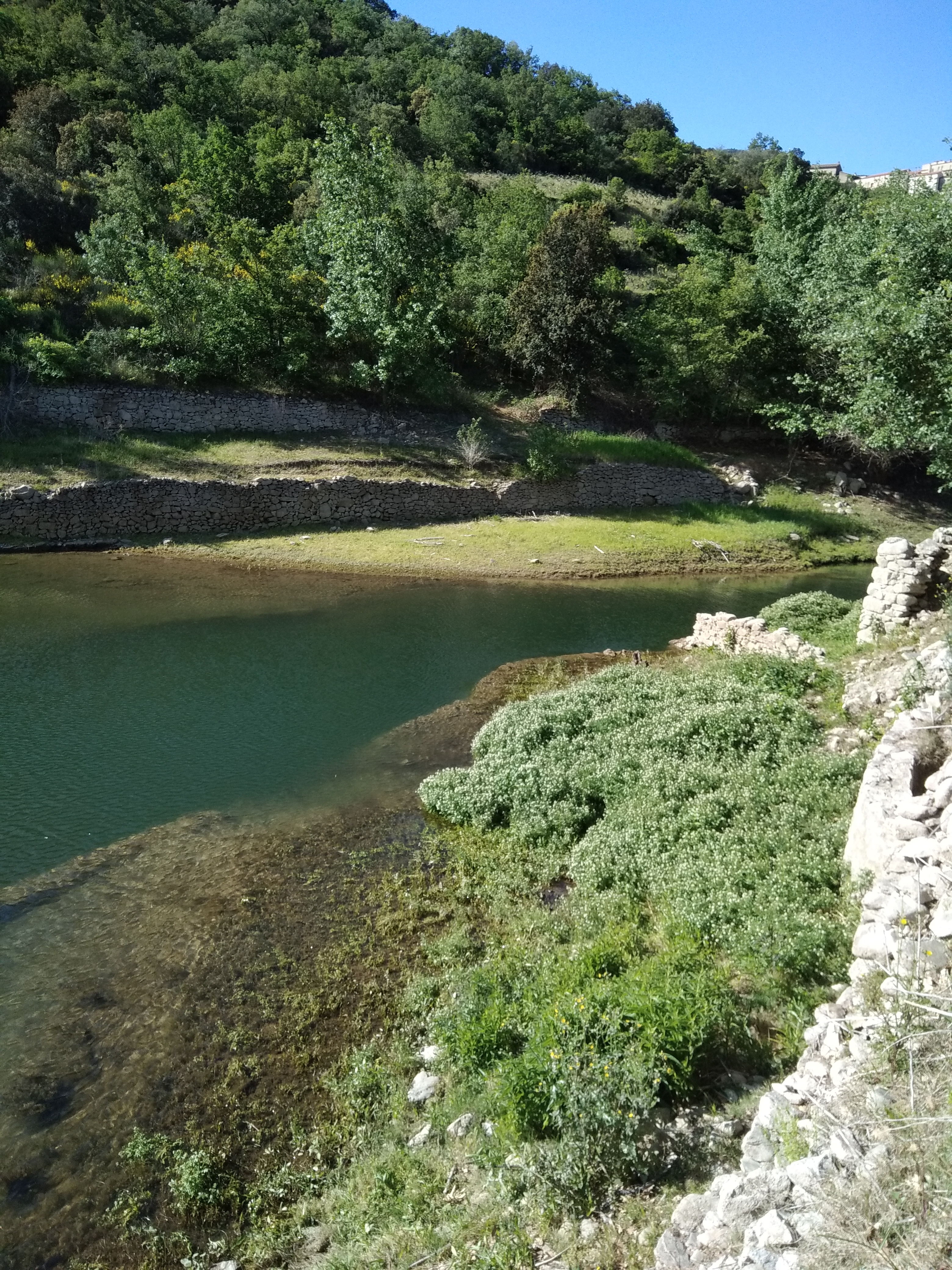 Caramany ; cette retenue d'eau n'est pas un simple lac. C'est un lieu où la pensée fait corps avec l'âme, où la vie semble prendre tout son sens. Oui, le barrage sur l'Agly ne laisse pas indifférent, c'est un exutoire jamais vu ailleurs. La vie est semblable à l'eau qui trouve son chemin sous le pont d'Ansignan qui longe les berges verdoyantes puis rocheuses, enfin elle vient mourir en se déversant le long de la massive structure en béton.