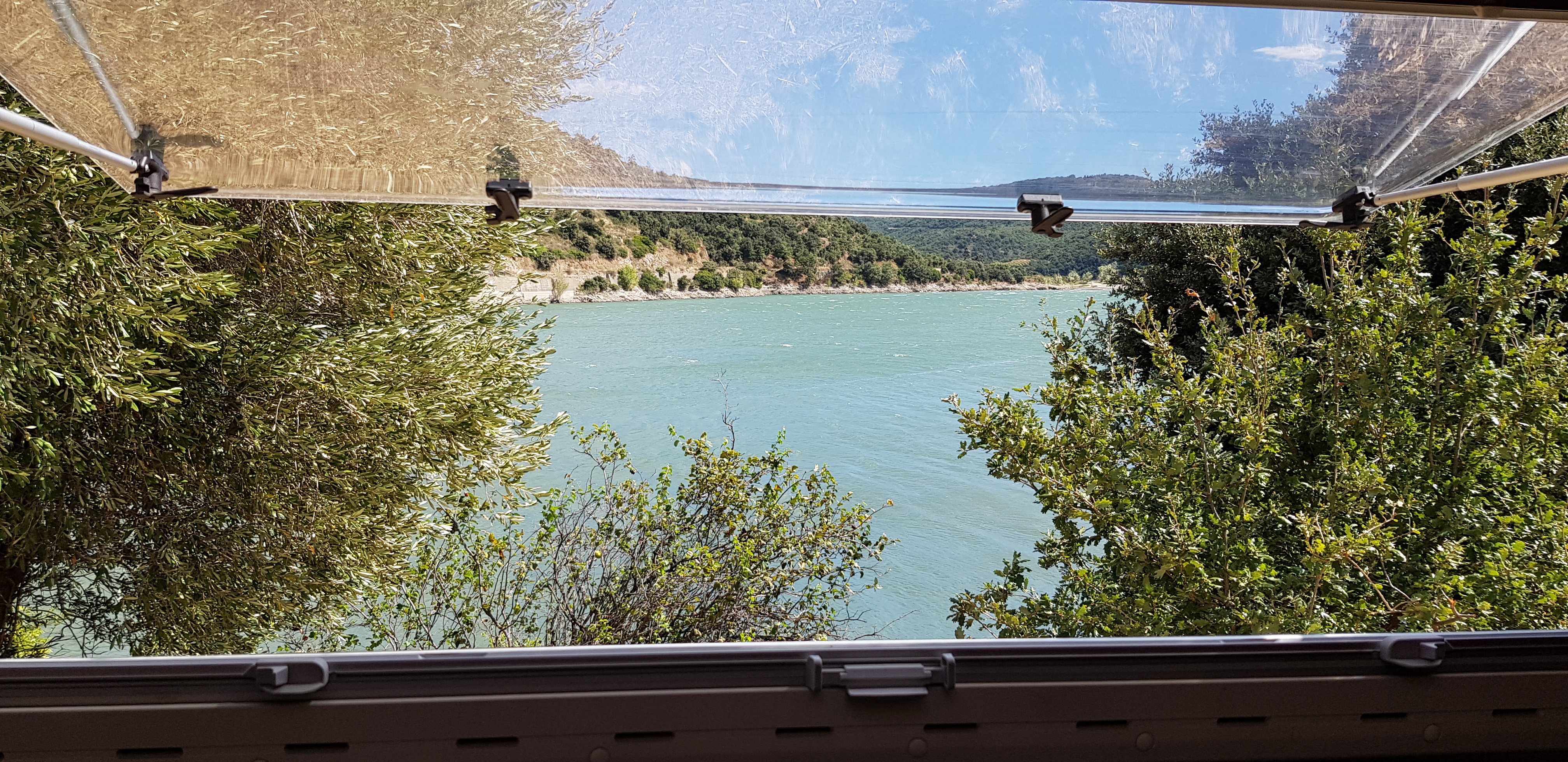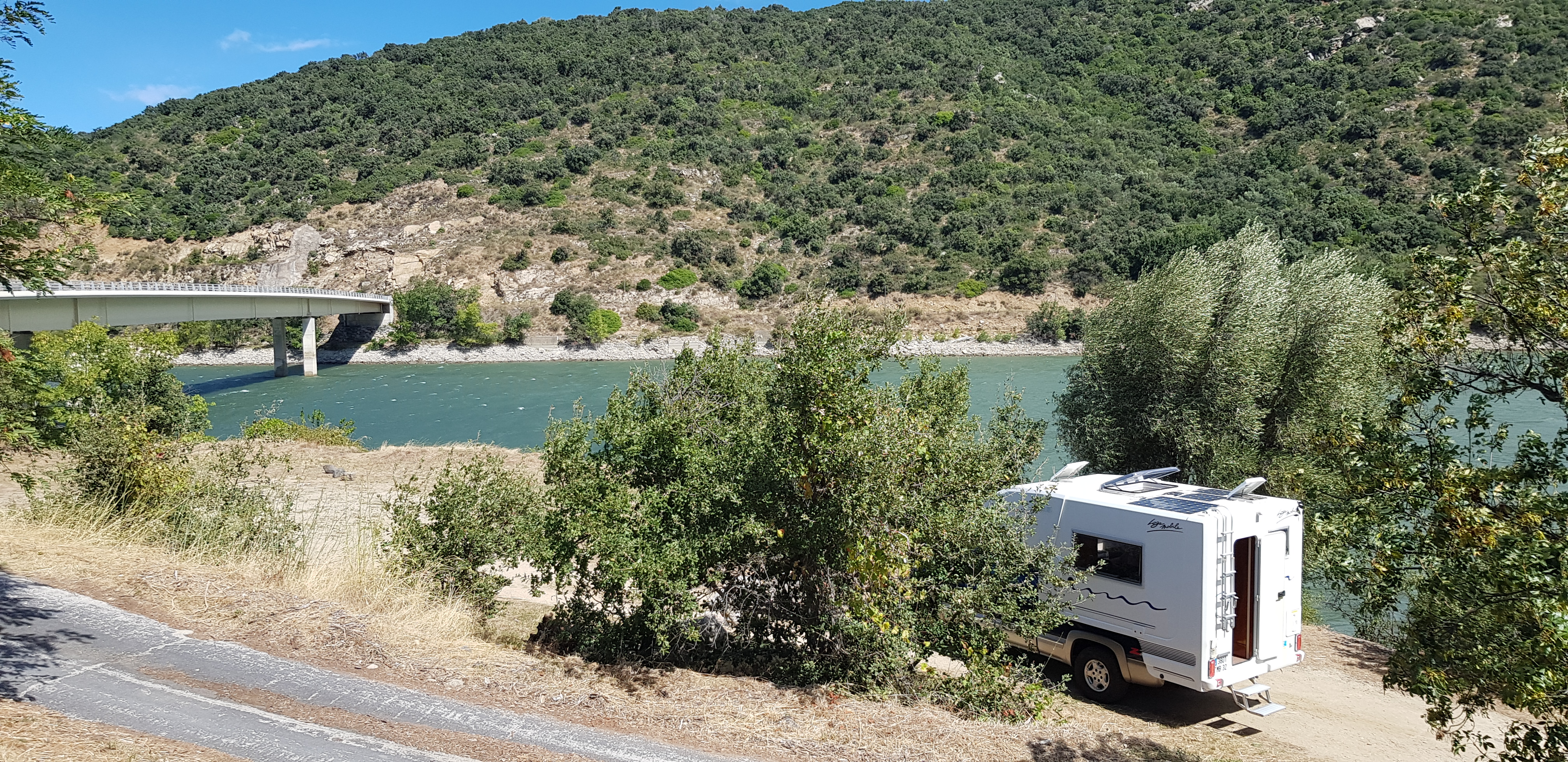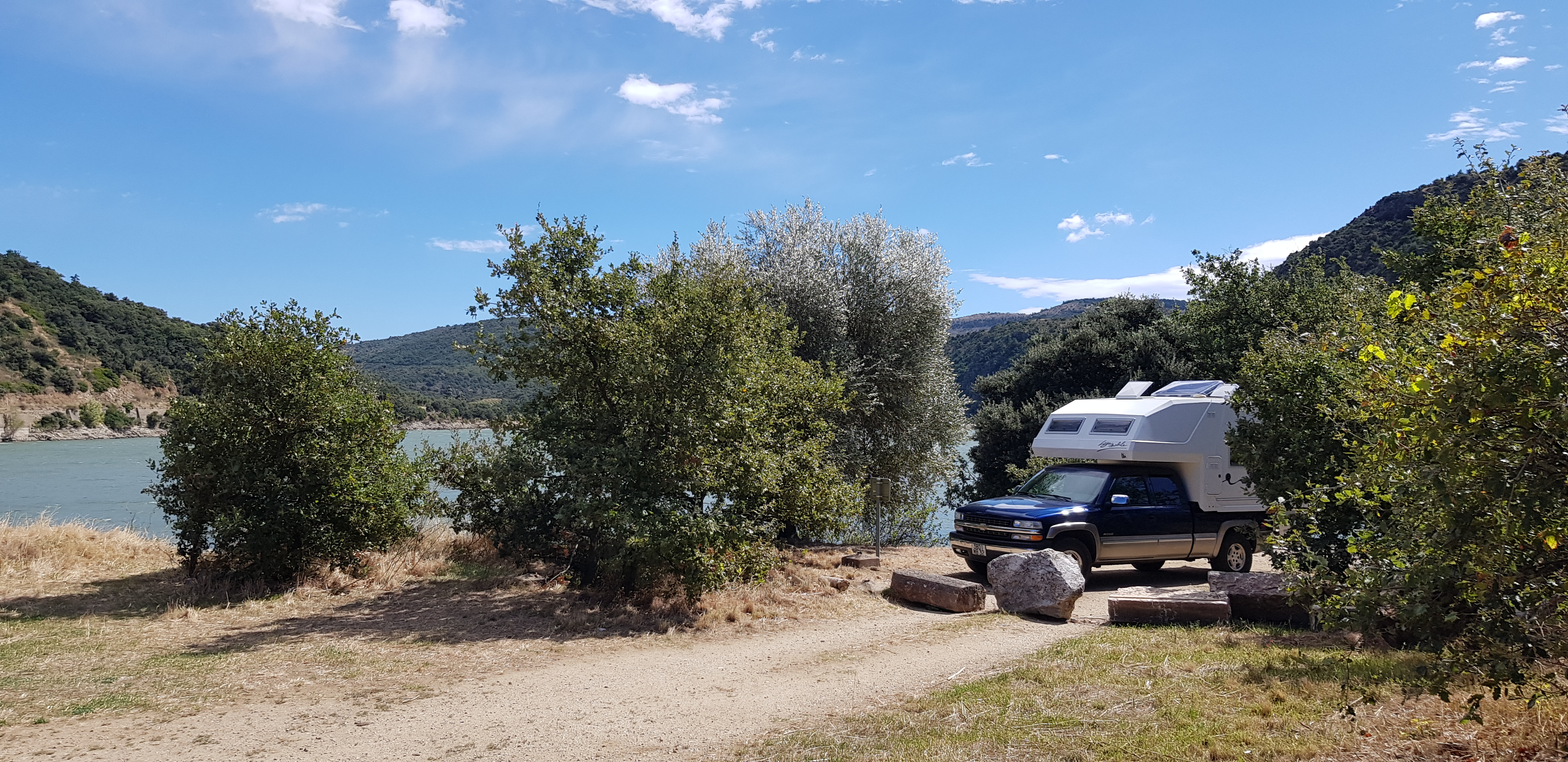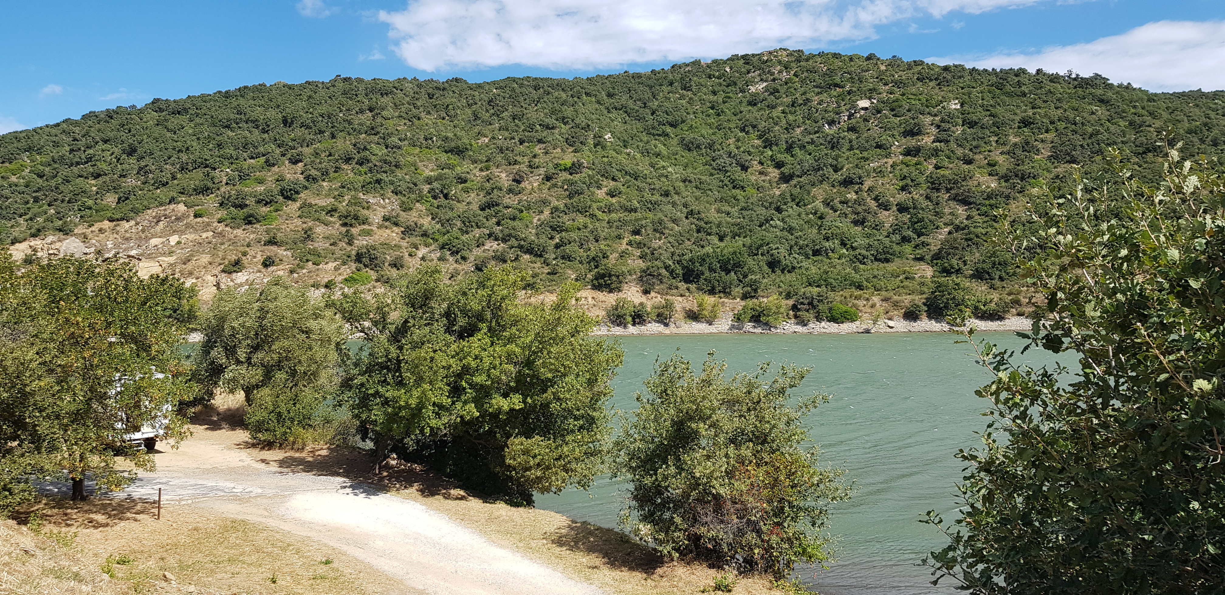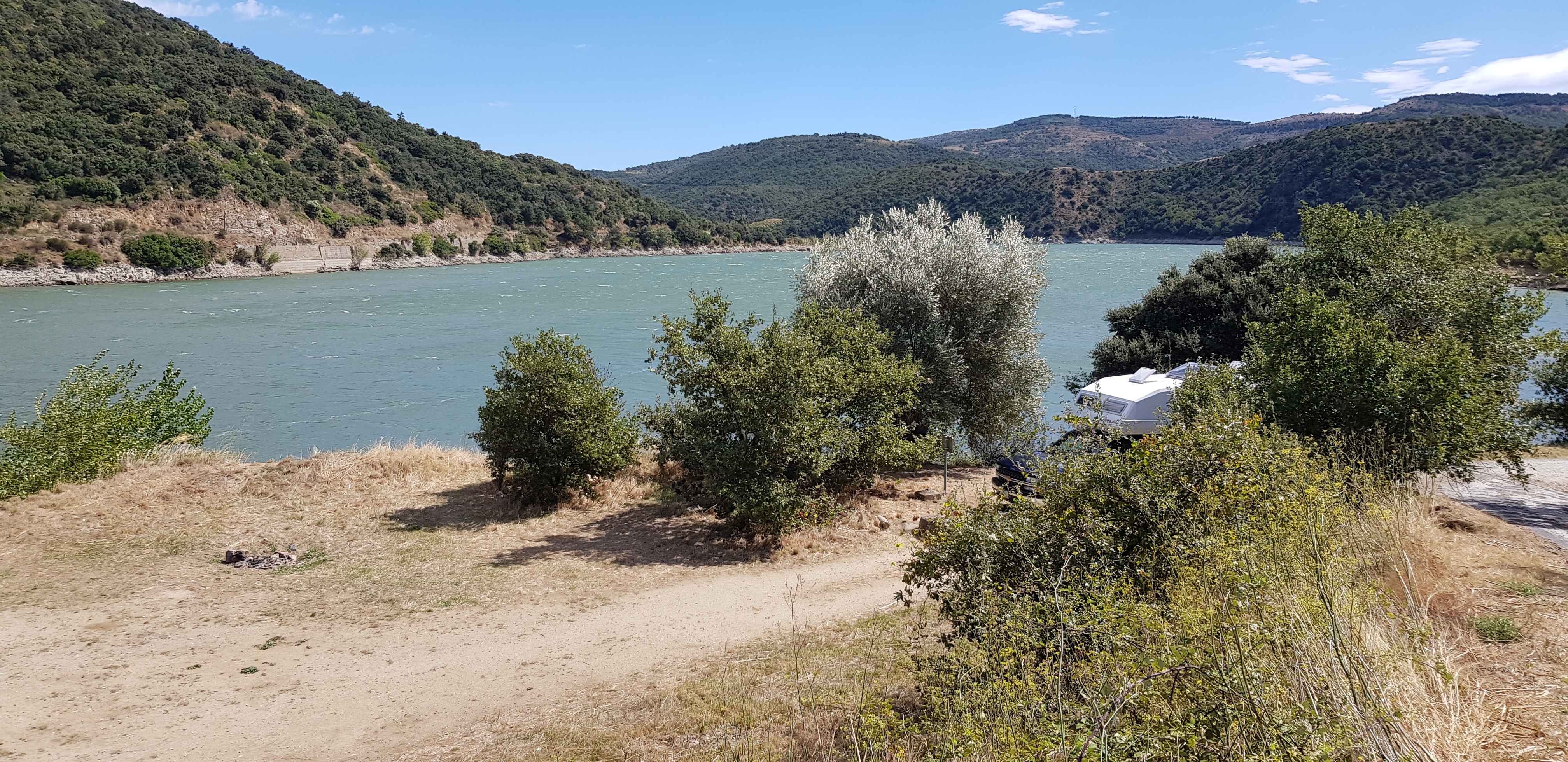 Excellent parking pour garer notre van et dormir tranquille au bord du lac avec une belle vue
