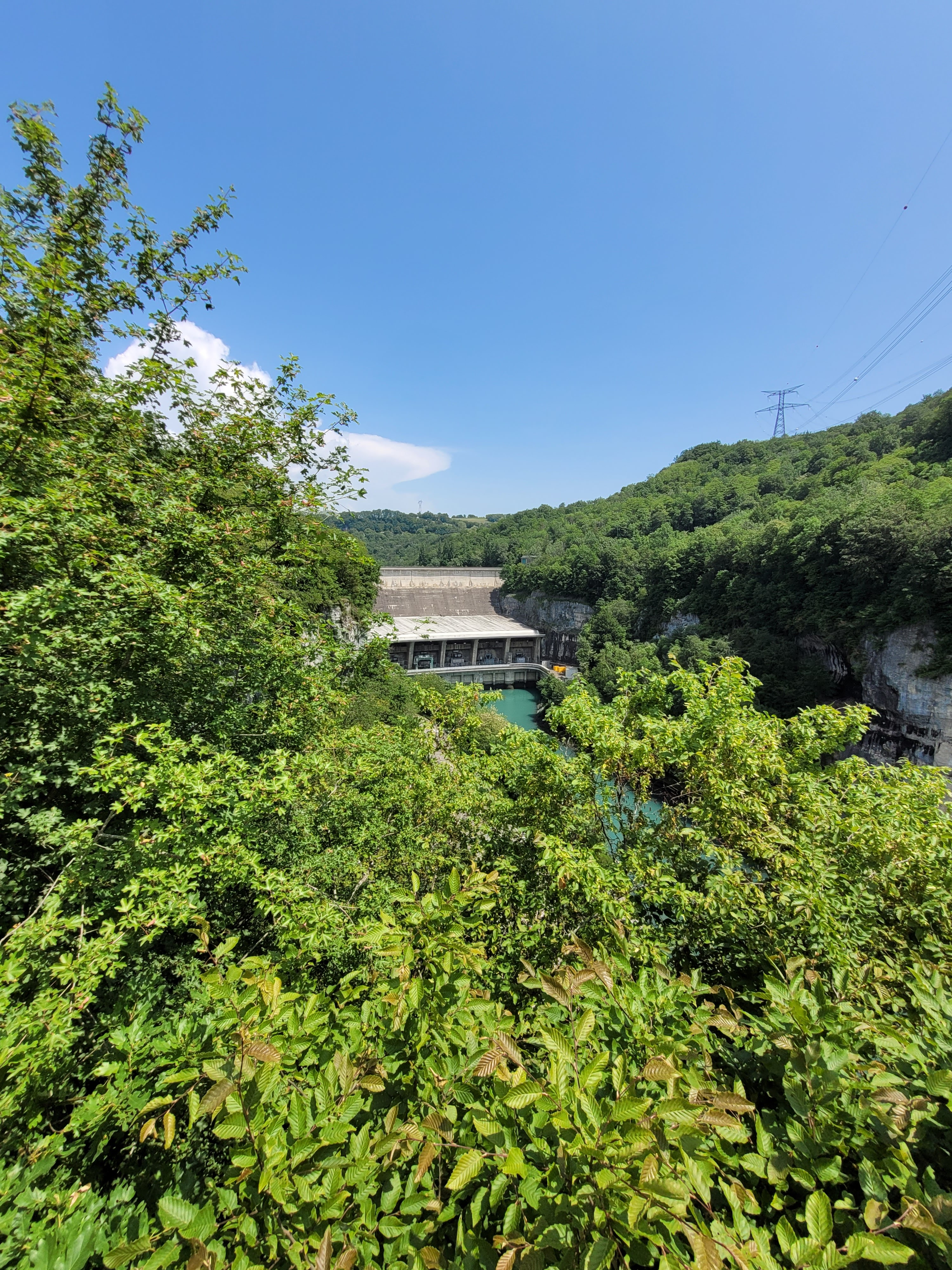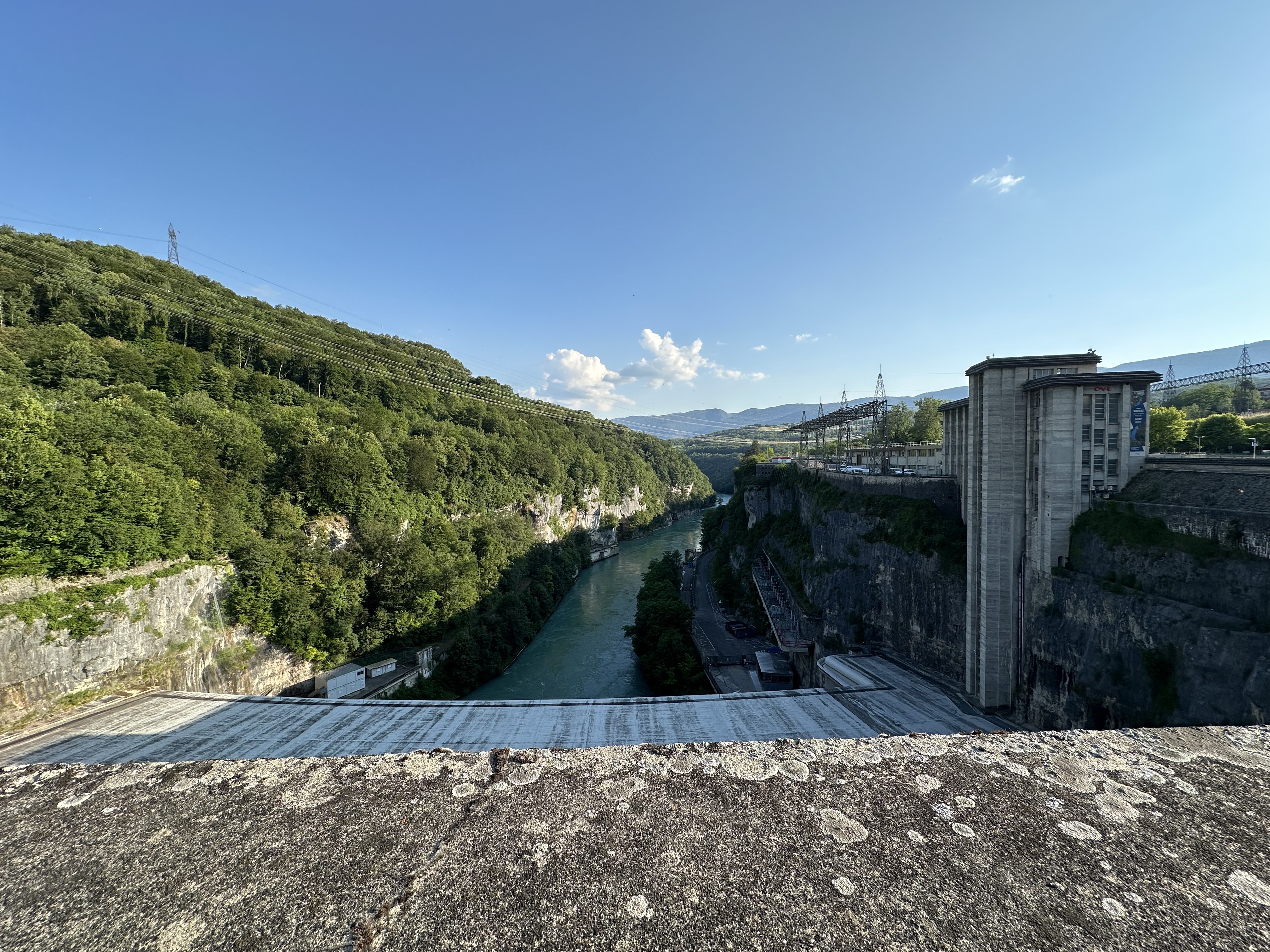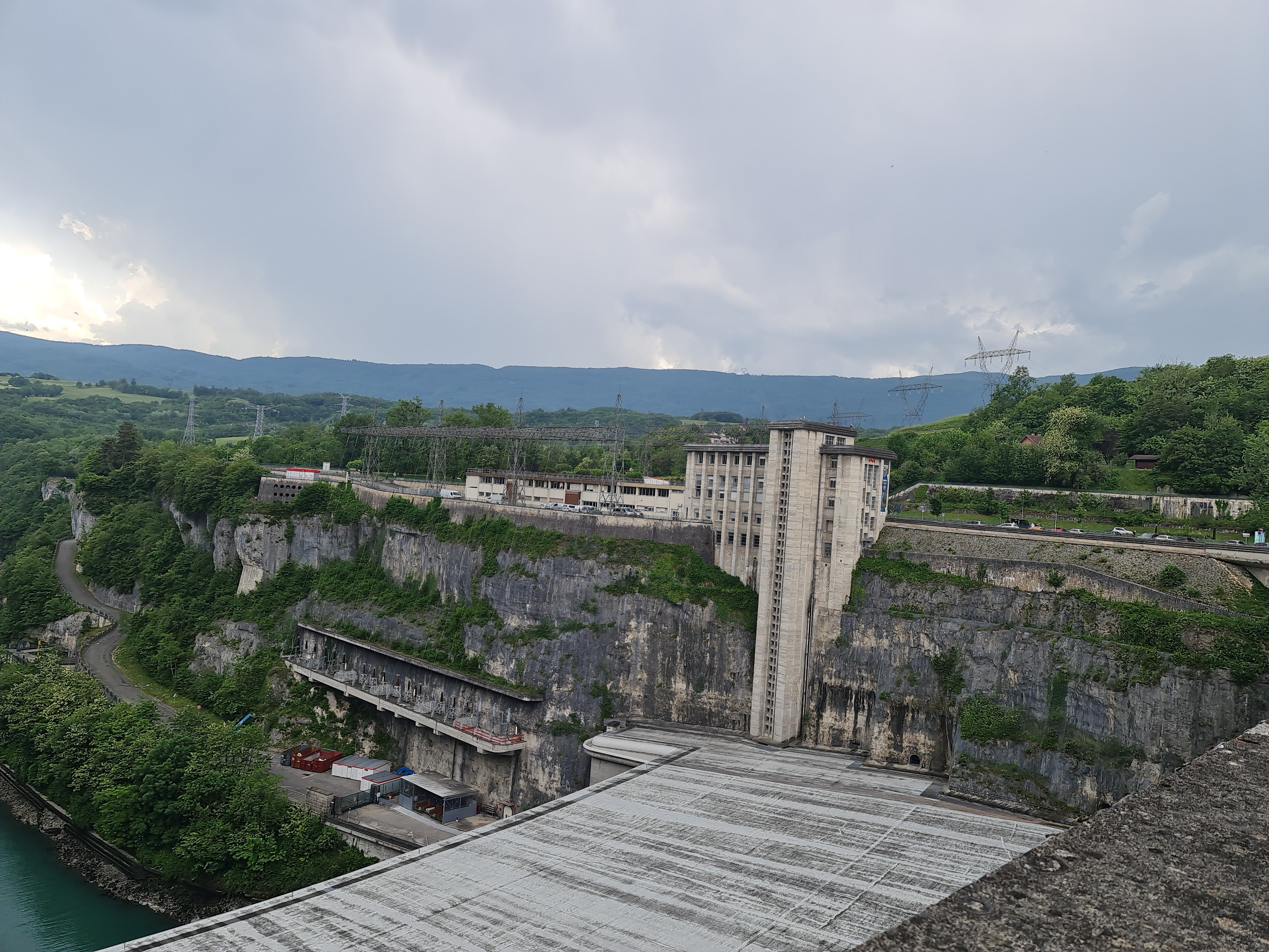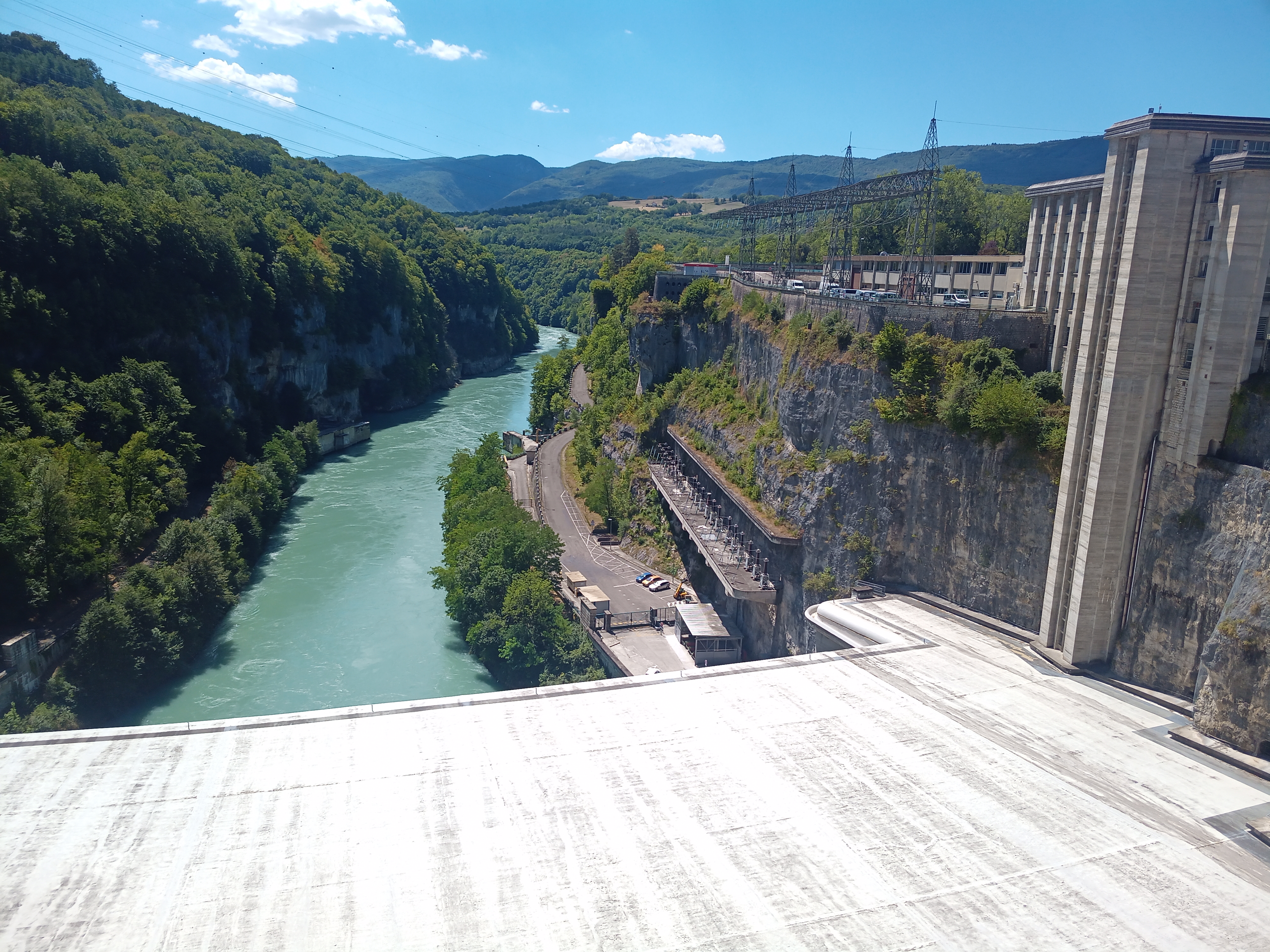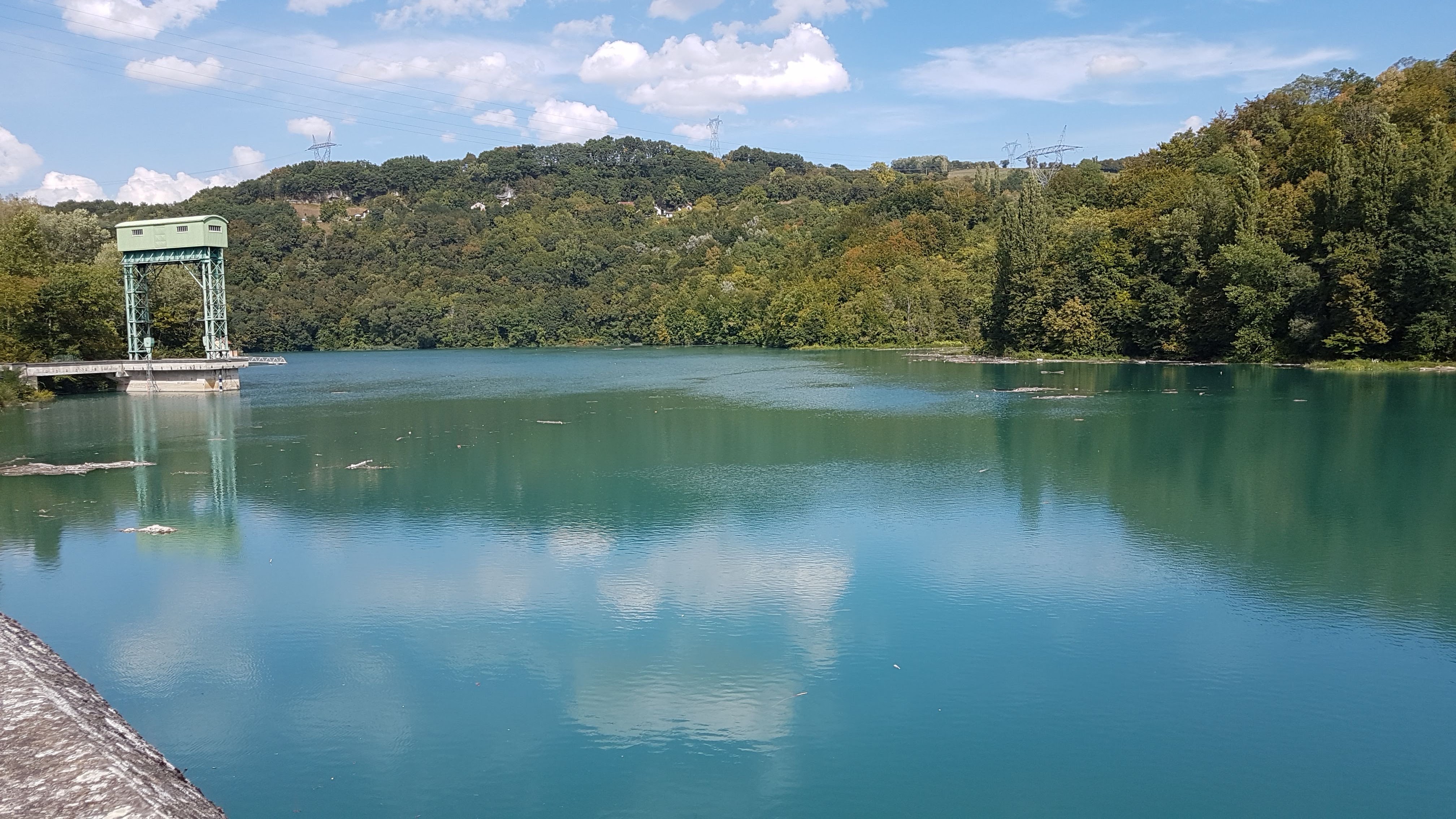 Retenue du Rhône a Génissiat pour faire tourner la centrale hydroélectrique qui se trouve en contrebas. Une halte s'impose pour le panorama.