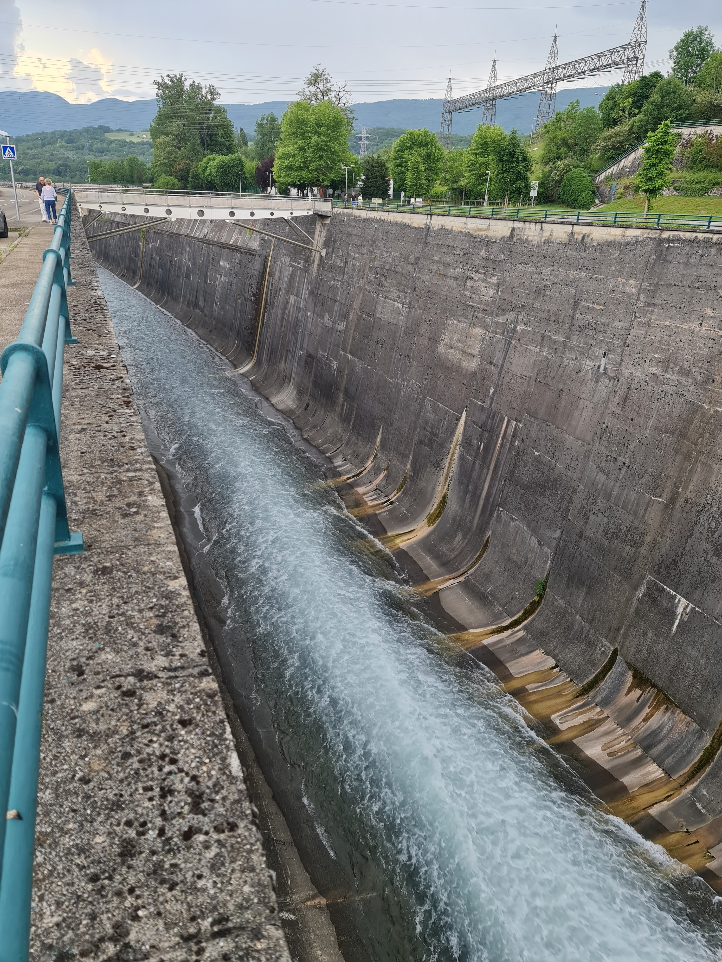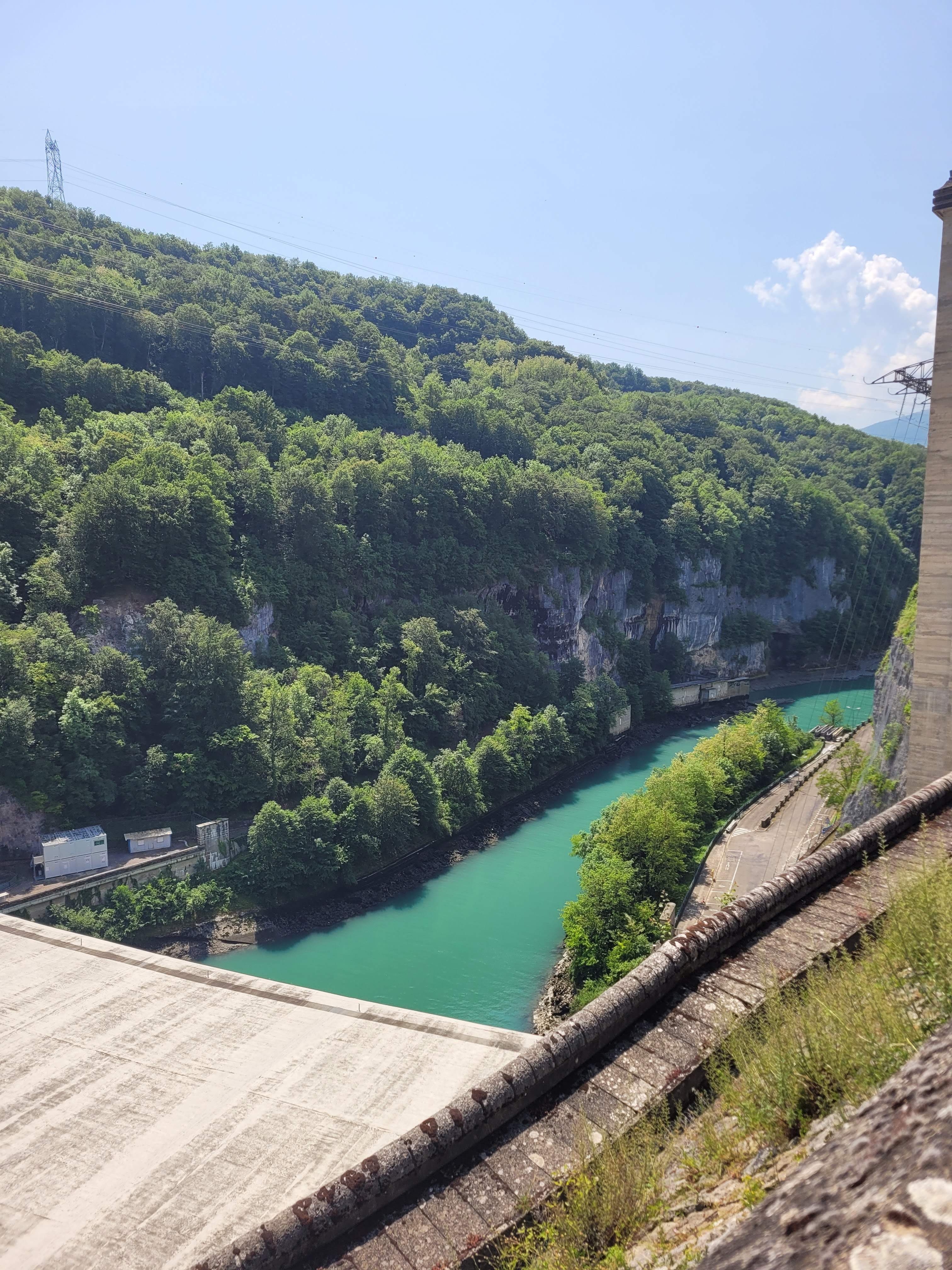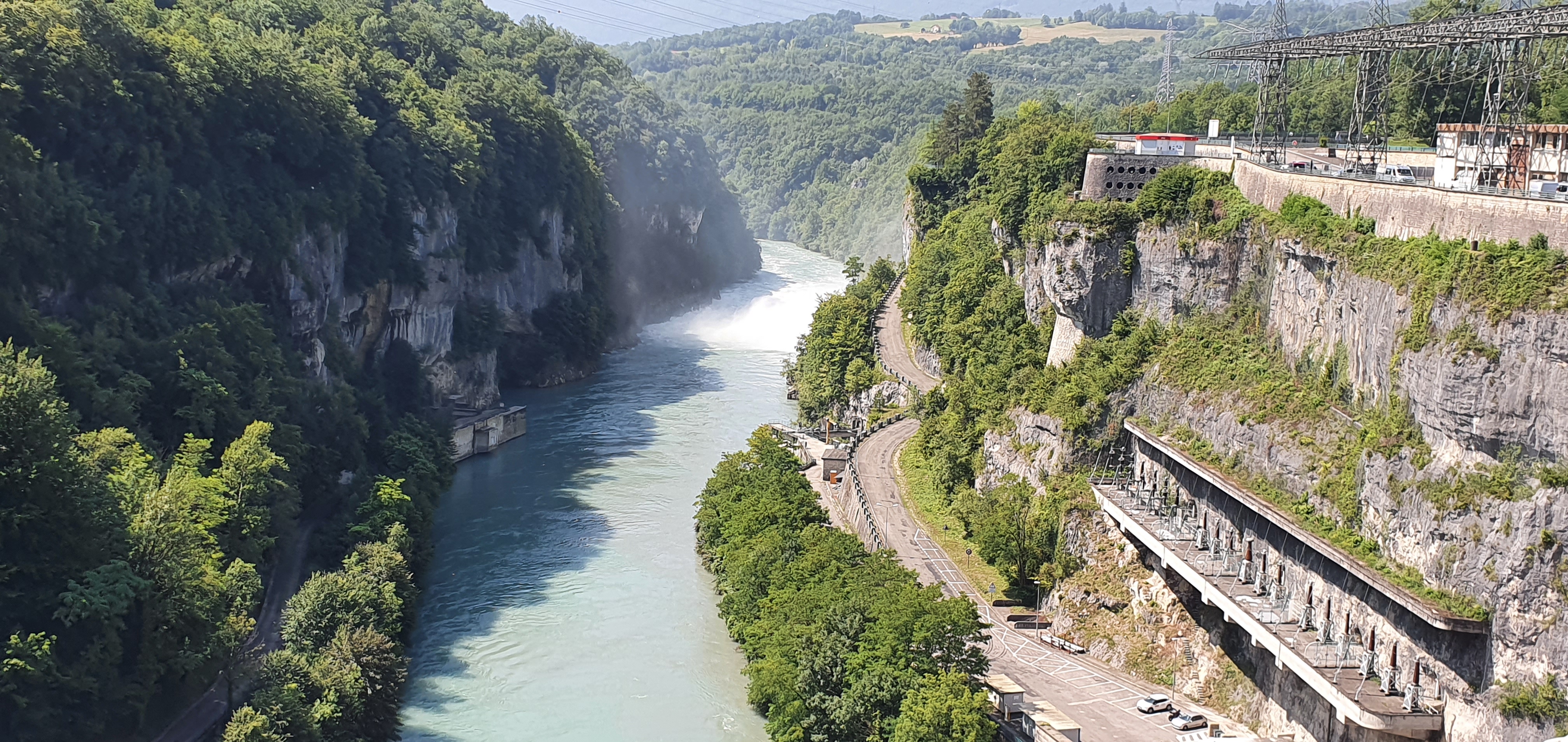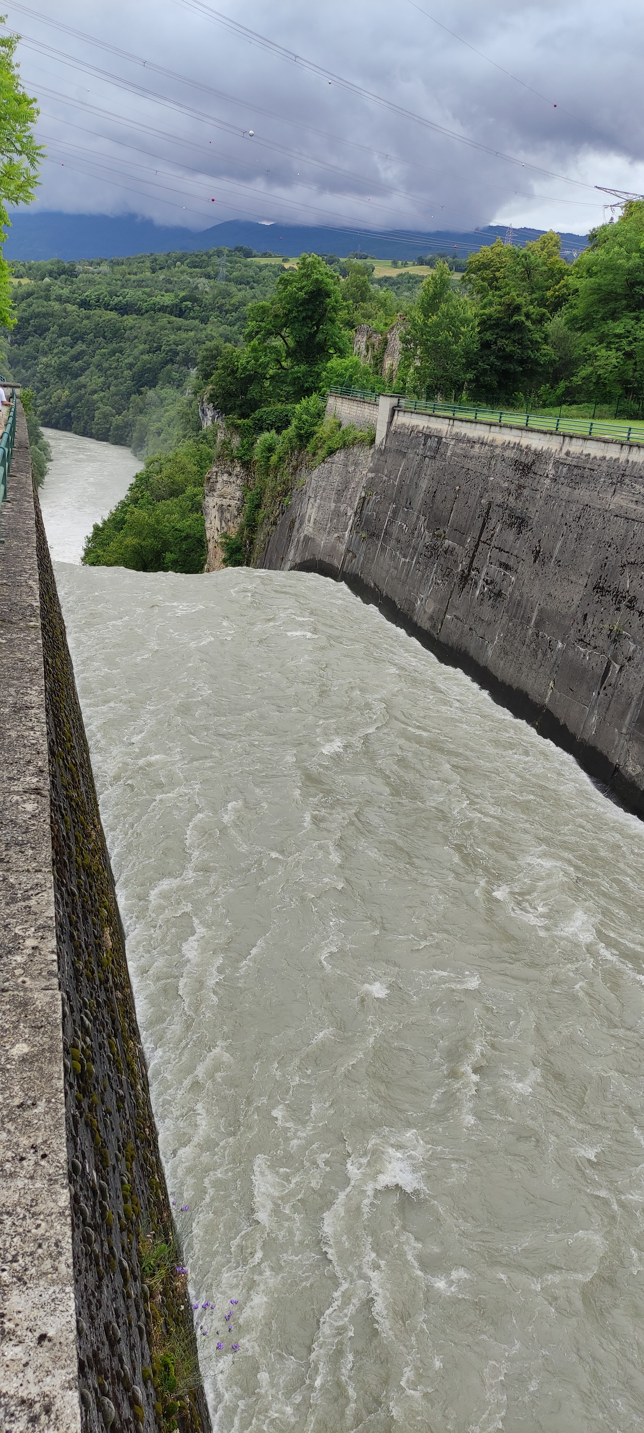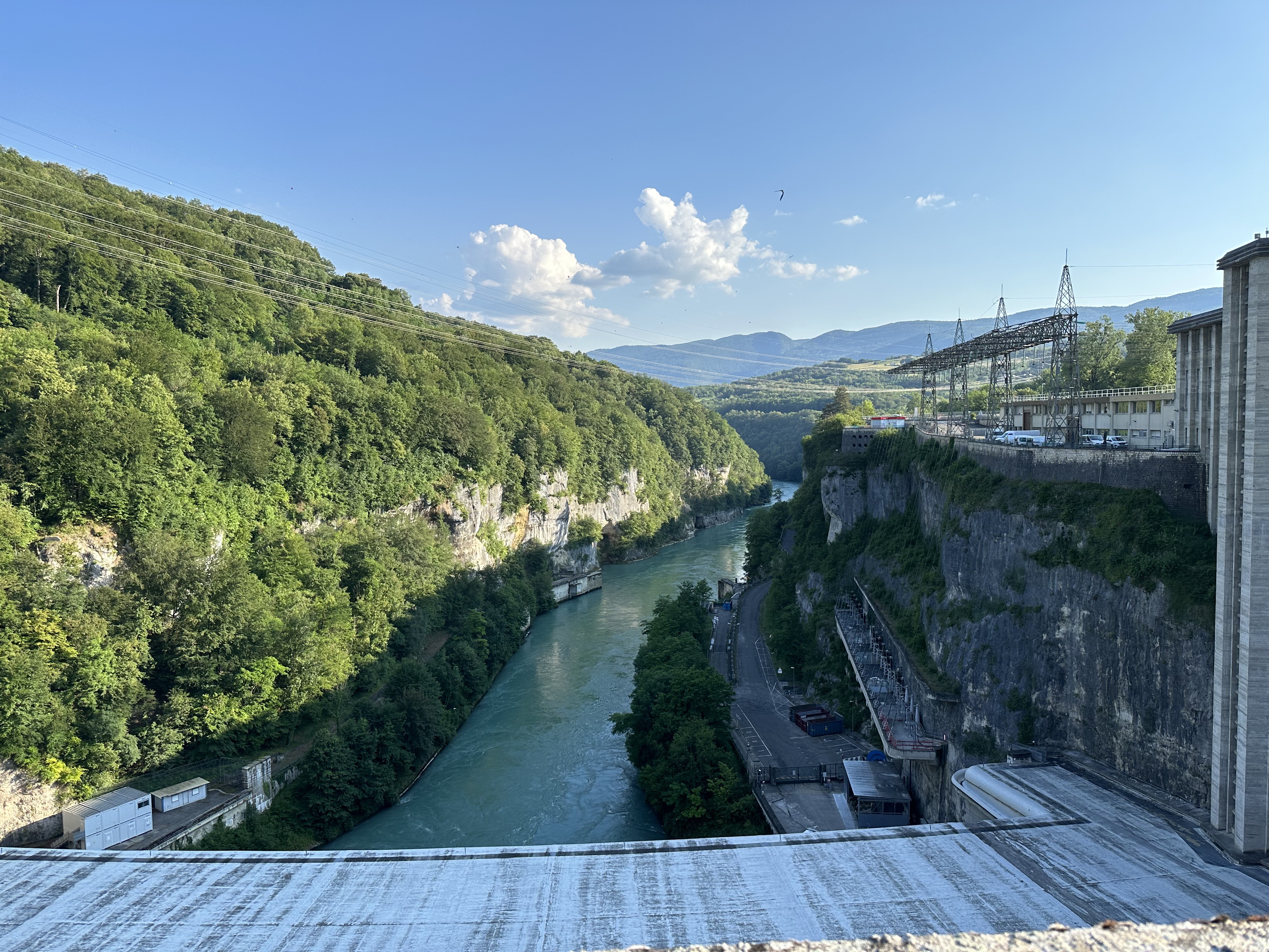 Retenue du Rhône a Génissiat pour faire tourner la centrale hydroélectrique qui se trouve en contrebas. Une halte s'impose pour le panorama.