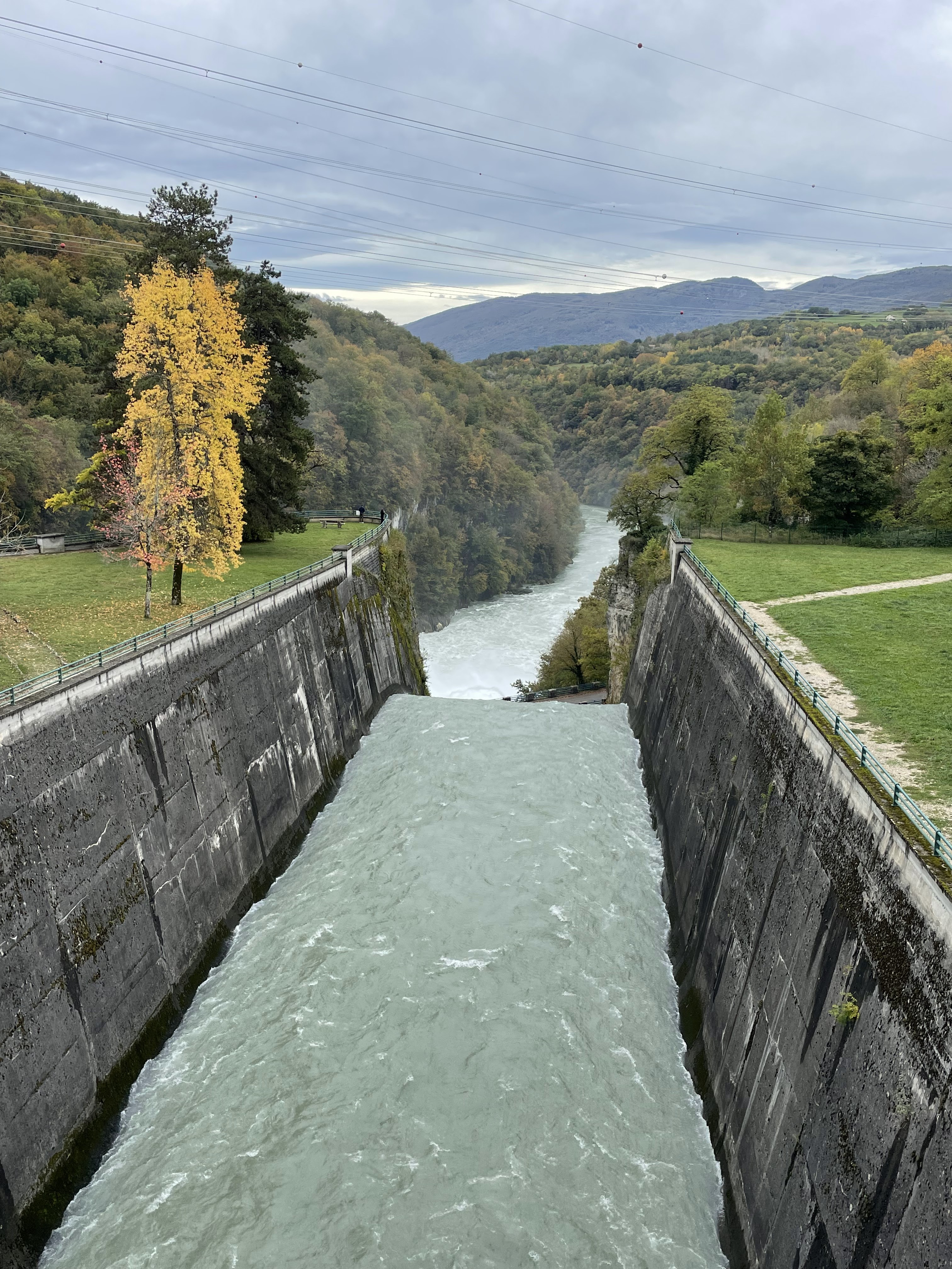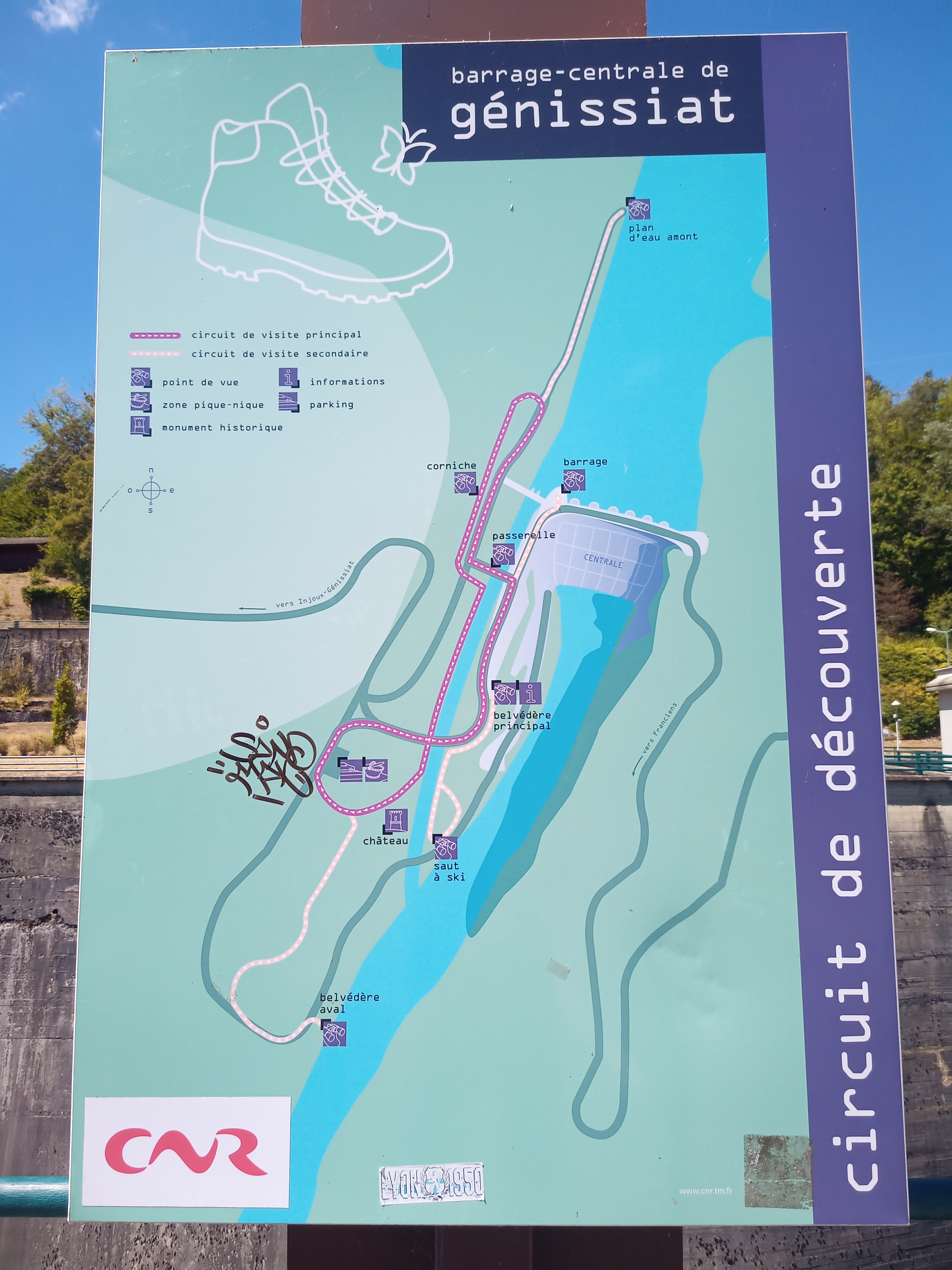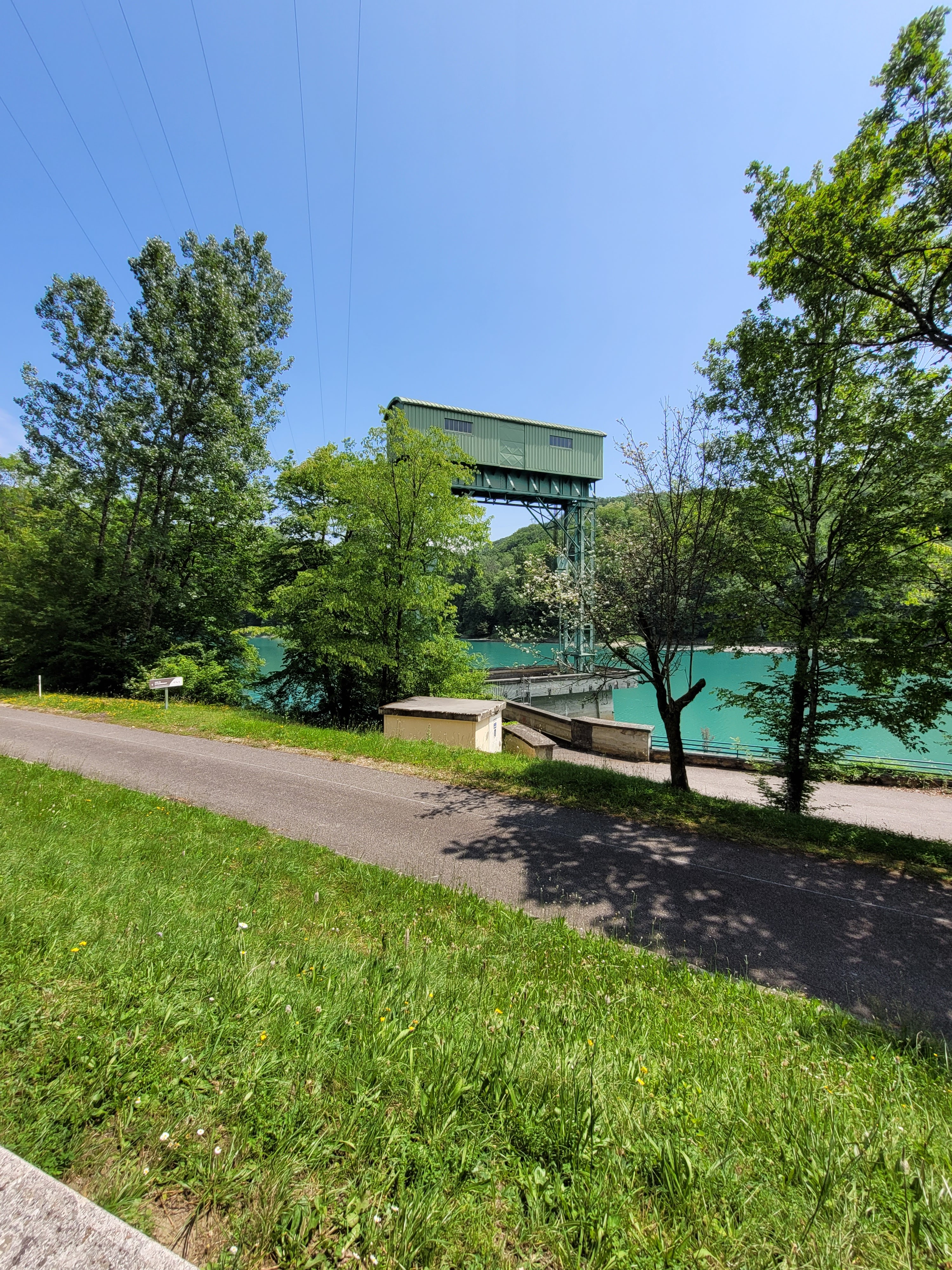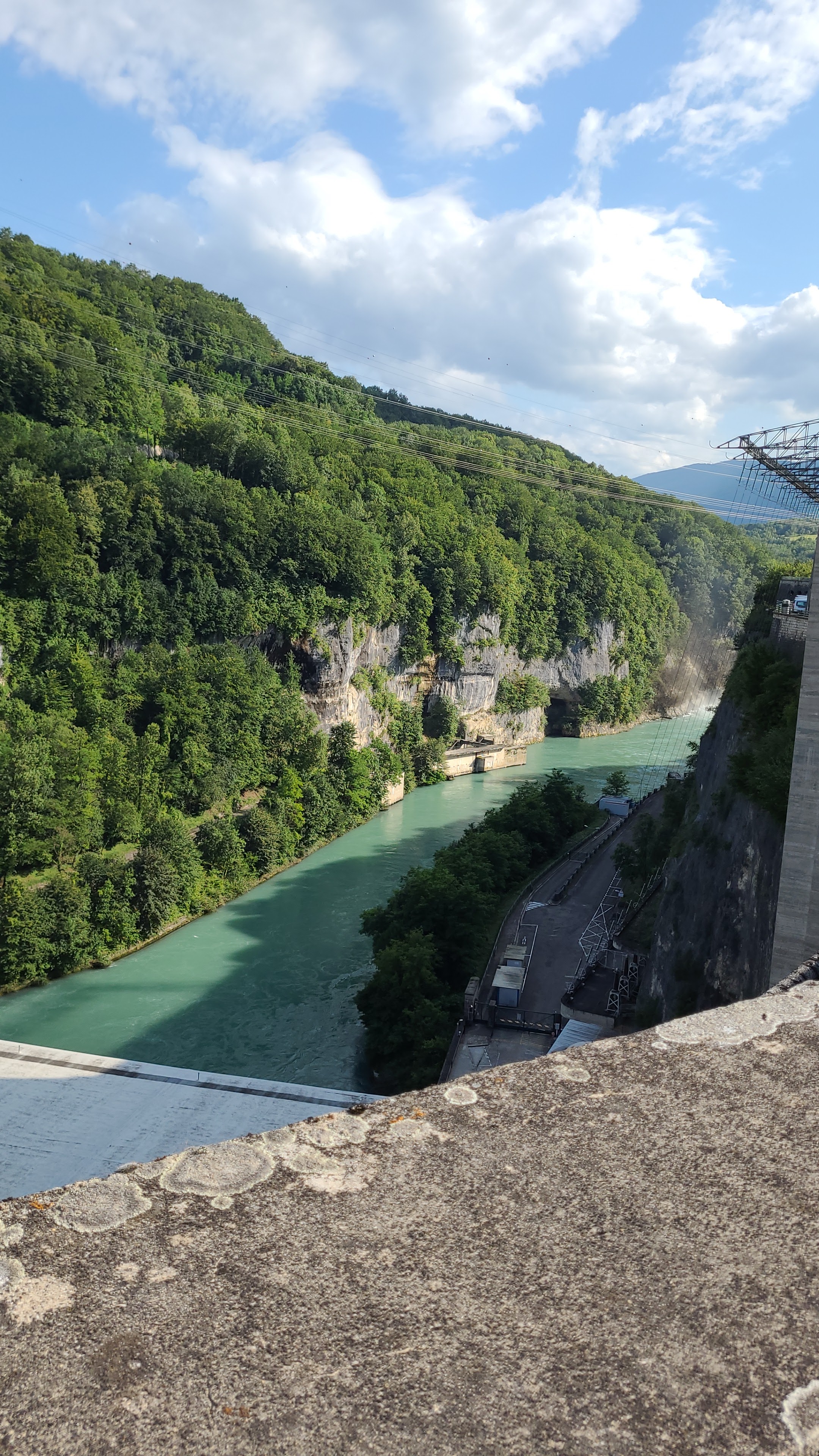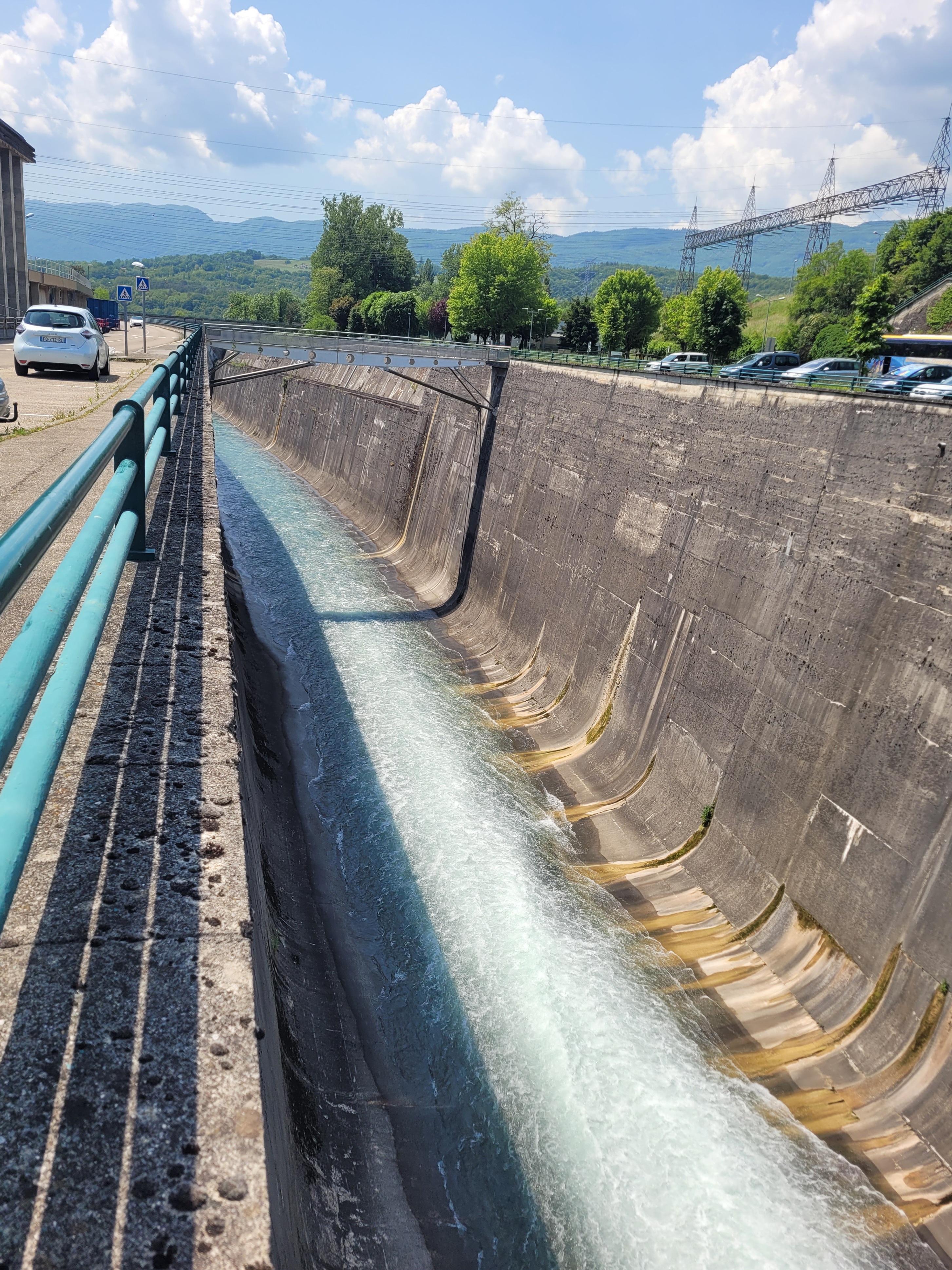 Retenue du Rhône a Génissiat pour faire tourner la centrale hydroélectrique qui se trouve en contrebas. Une halte s'impose pour le panorama.