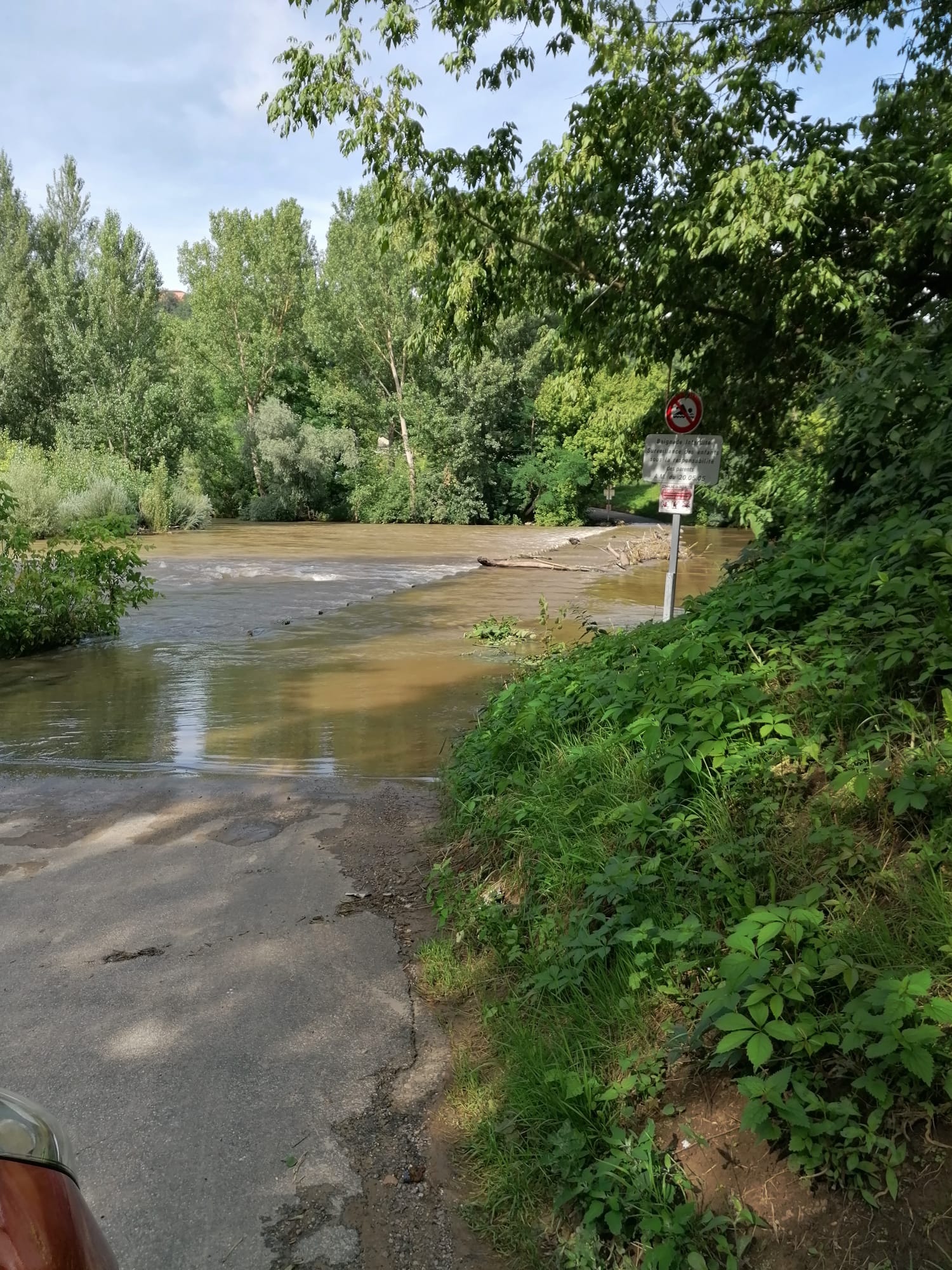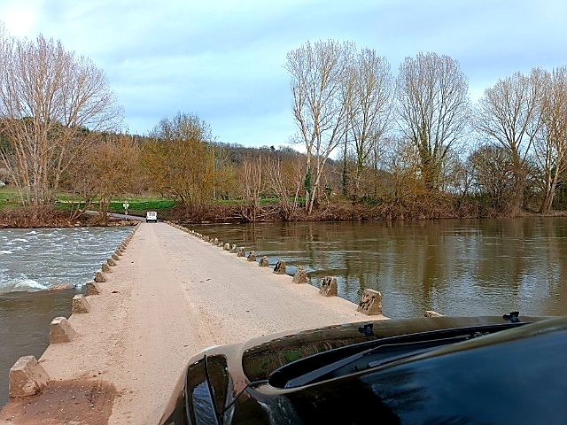 Impressionnant de traverser en véhicule au raz de la rivière l,Aveyron