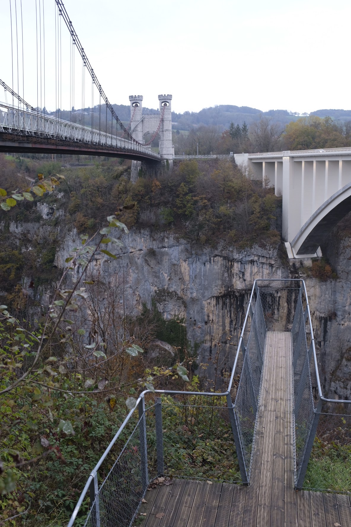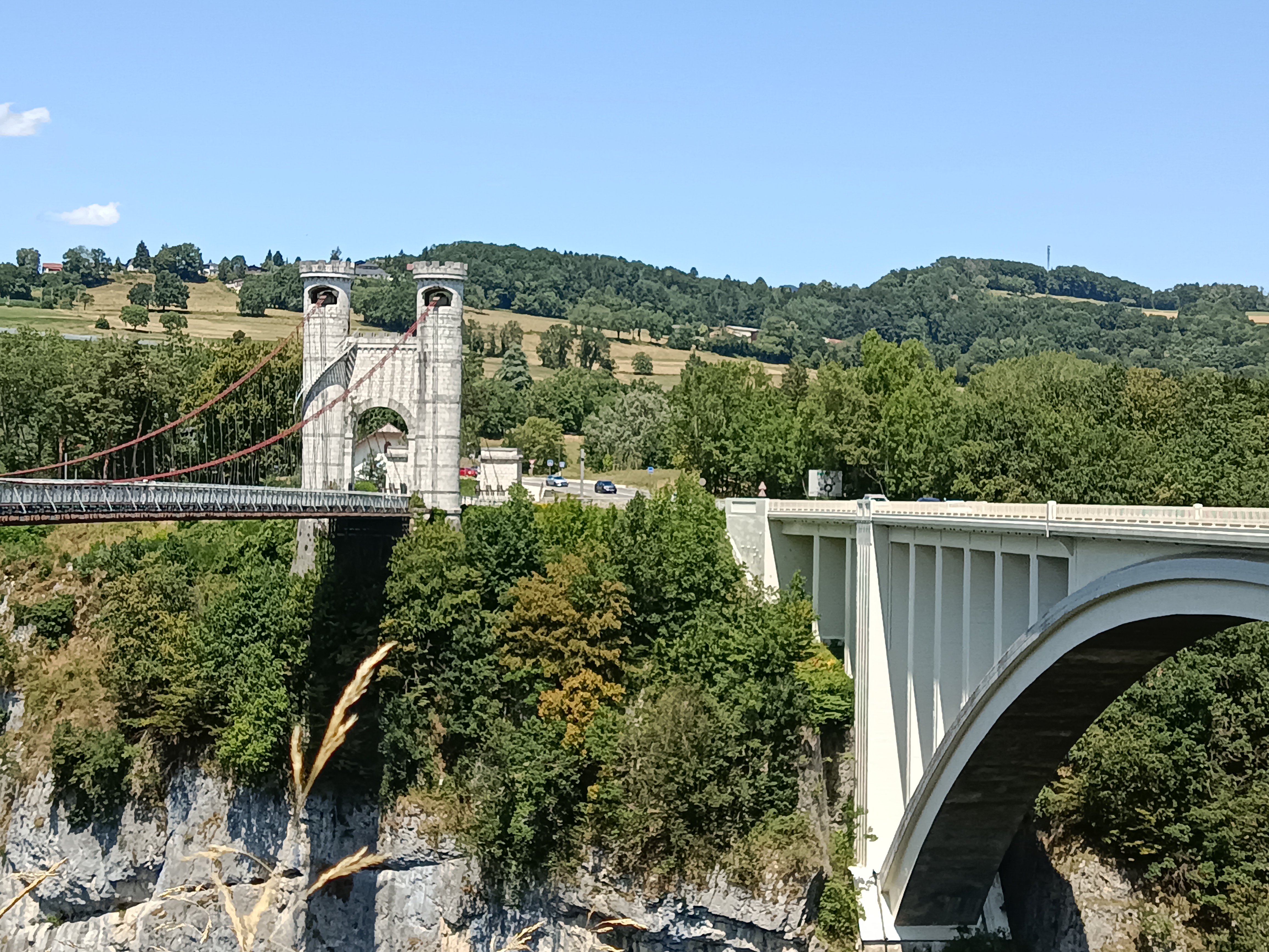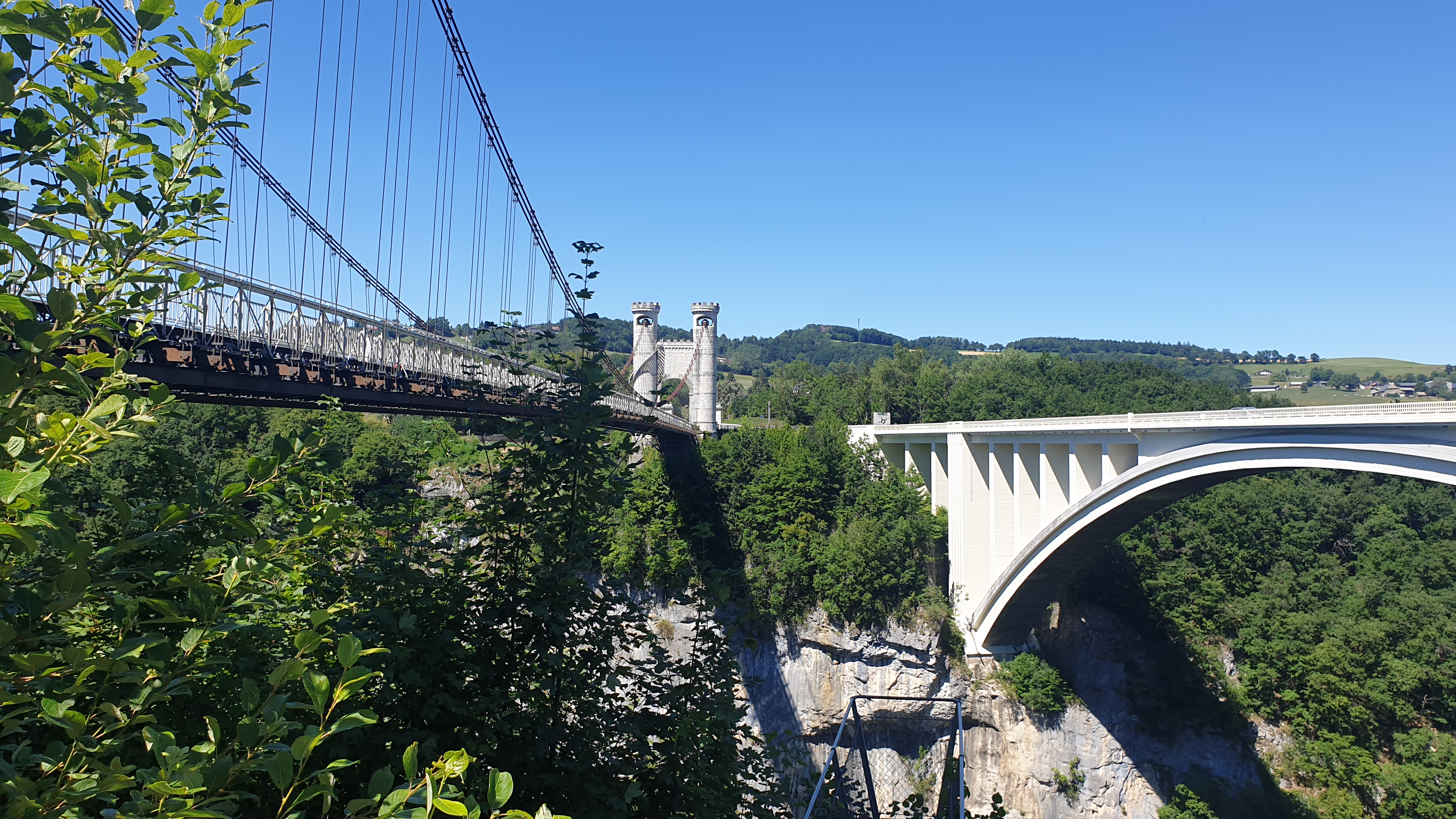 D'un côté, vous avez le pont suspendu dont la construction date de 1838, classé aux monuments historiques et de l'autre le pont routier, en béton, plus récent. La visite ne prend pas longtemps, mais ça mérite le déplacement que ce soit pour le pont suspendu ou le panorama. Possibilité de pique-niquer. À éviter pour les personnes ayant le vertige !