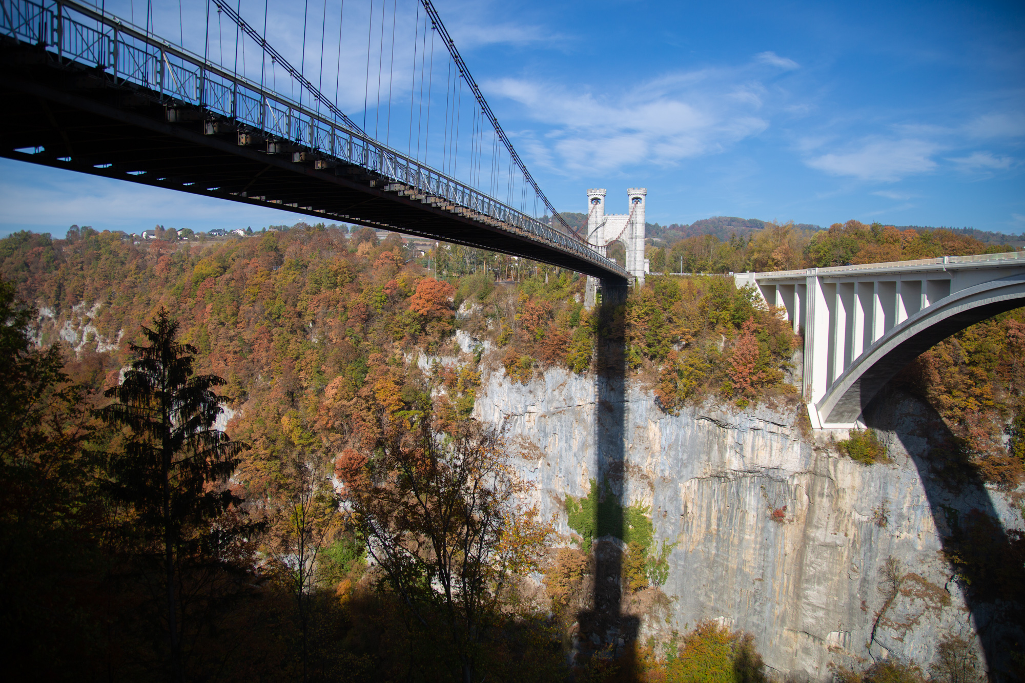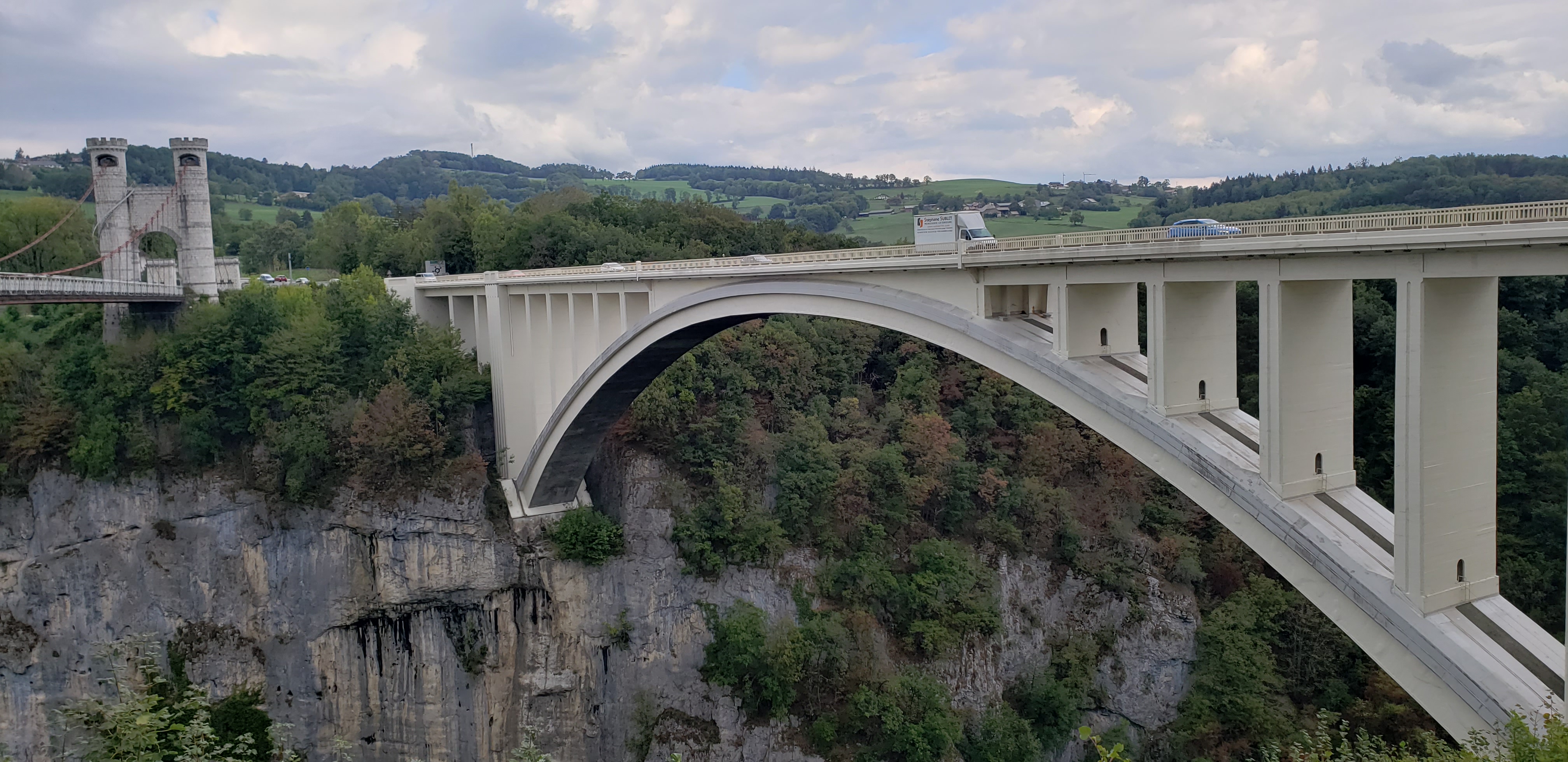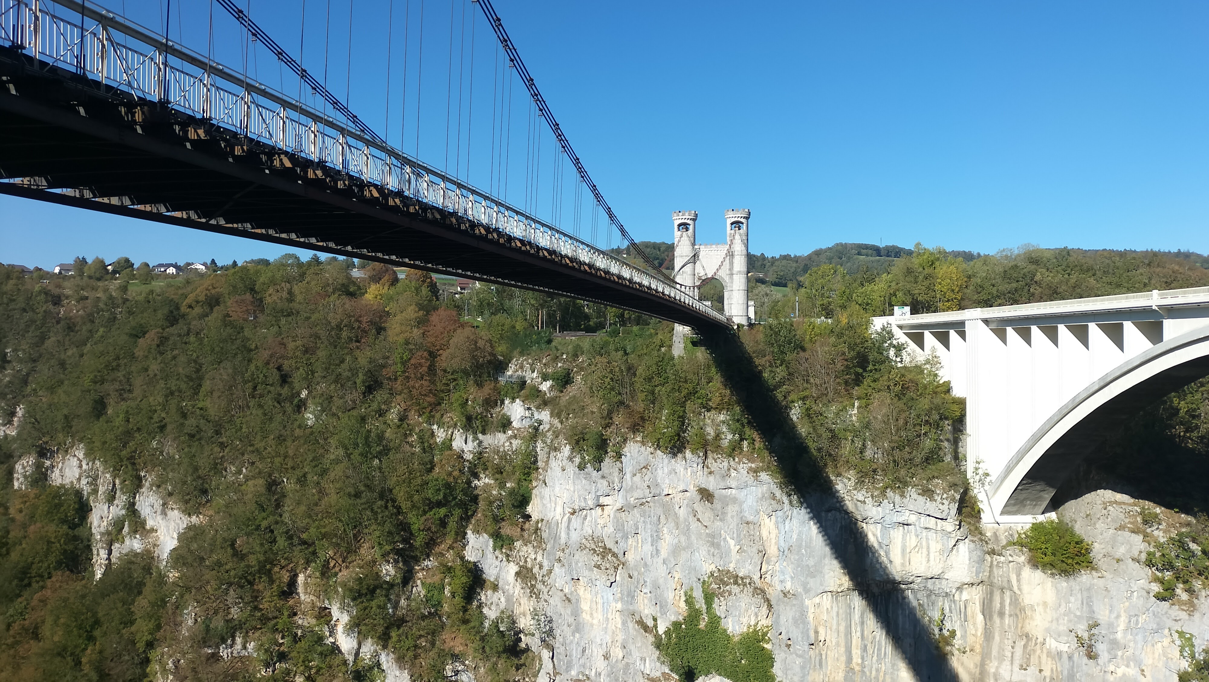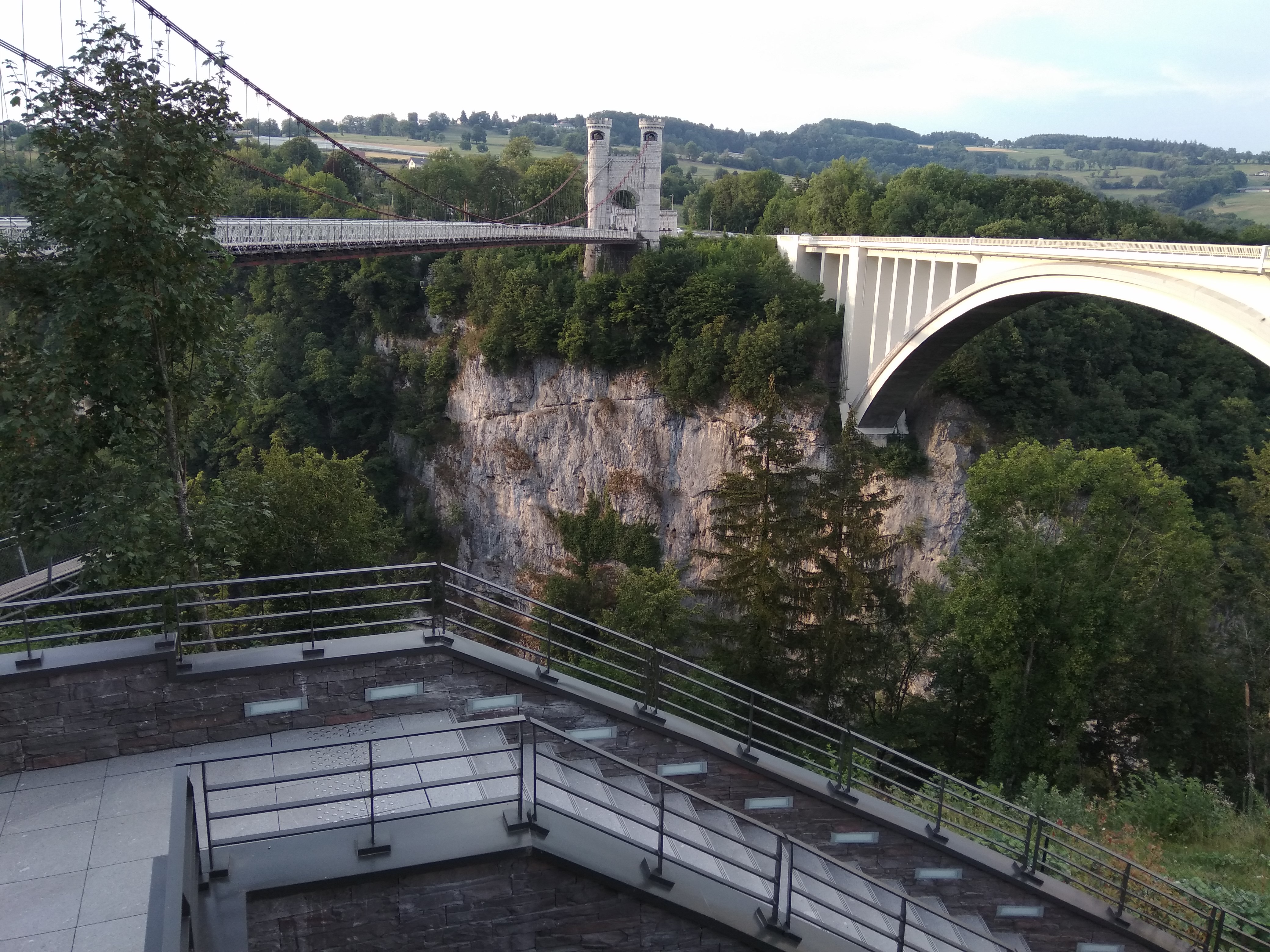 D'un côté, vous avez le pont suspendu dont la construction date de 1838, classé aux monuments historiques et de l'autre le pont routier, en béton, plus récent. La visite ne prend pas longtemps, mais ça mérite le déplacement que ce soit pour le pont suspendu ou le panorama. Possibilité de pique-niquer. À éviter pour les personnes ayant le vertige !
