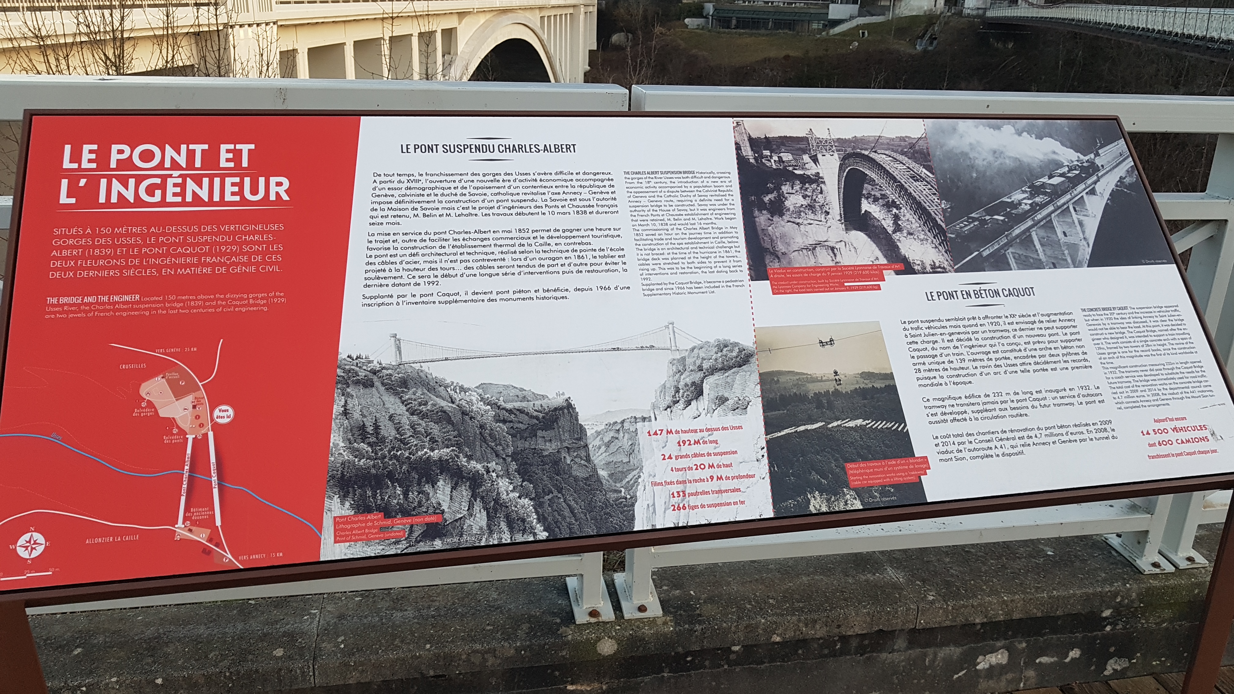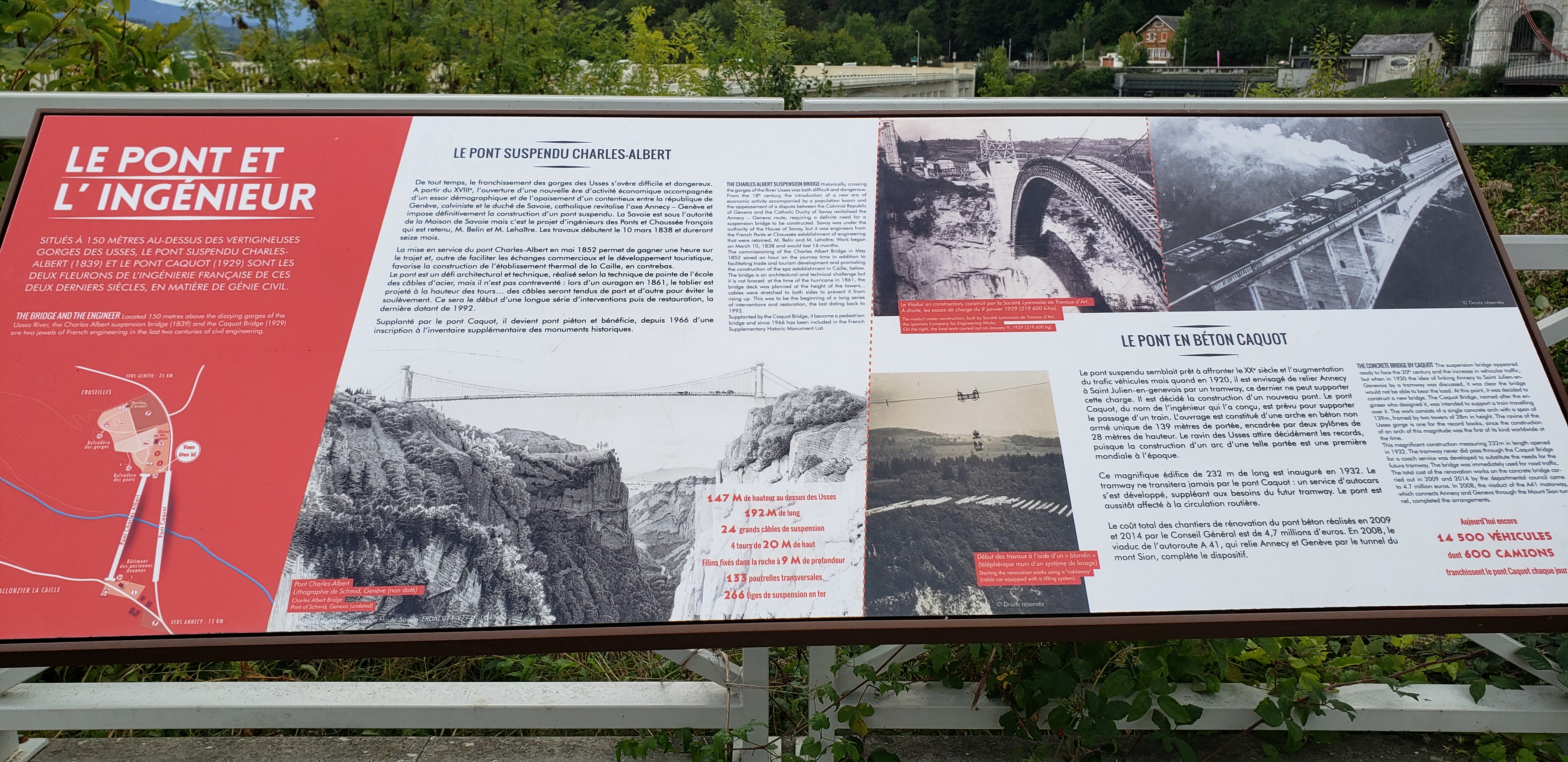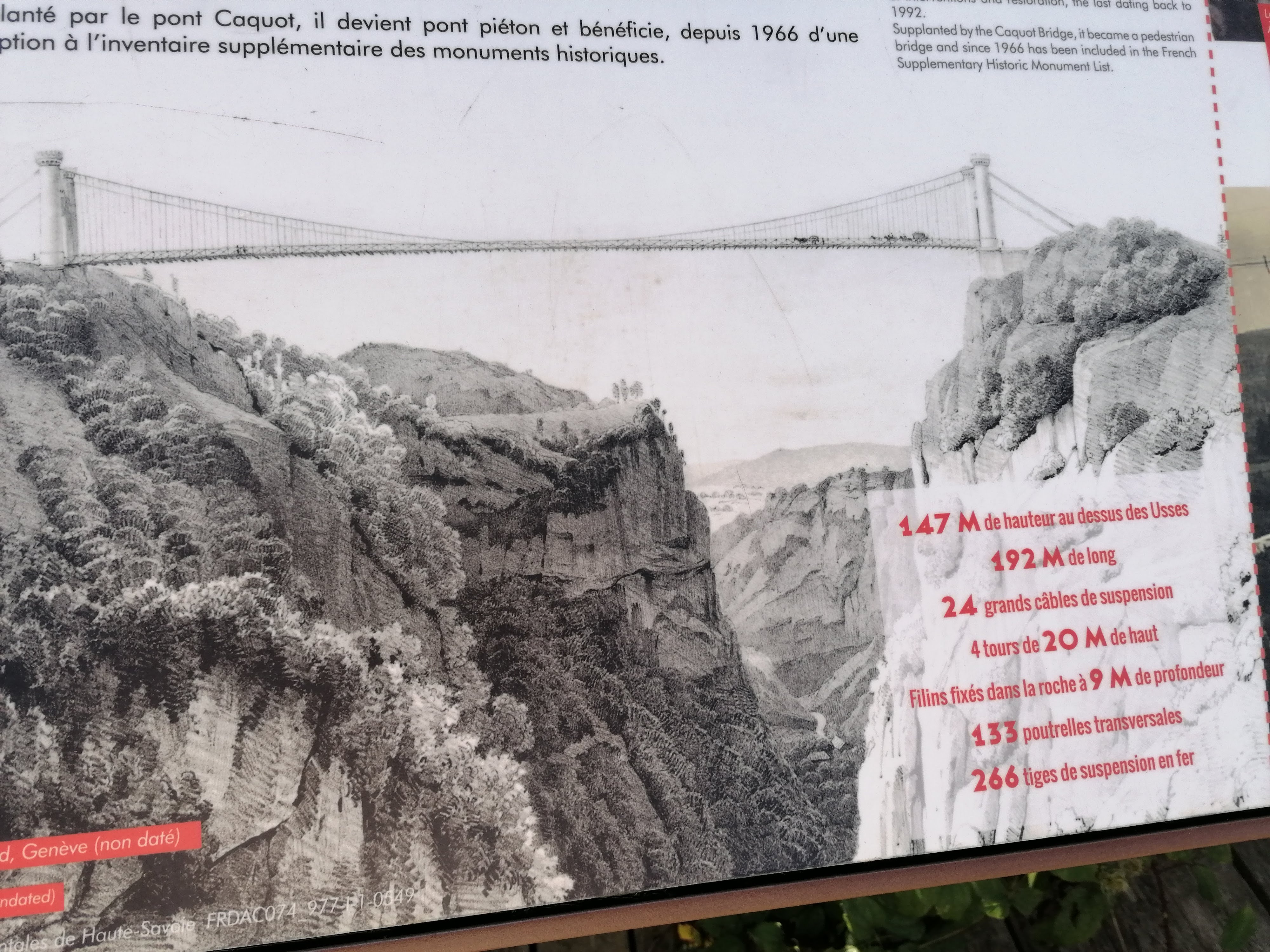 Une étape à ne pas rater si vous prenez la route départementale entre Genève et Annecy. L'accès au pont est gratuit, comptez un bon quart d'heure pour le visiter. Une passerelle aérienne sécurisée se trouve en contrebas du pont, sensations garanties !