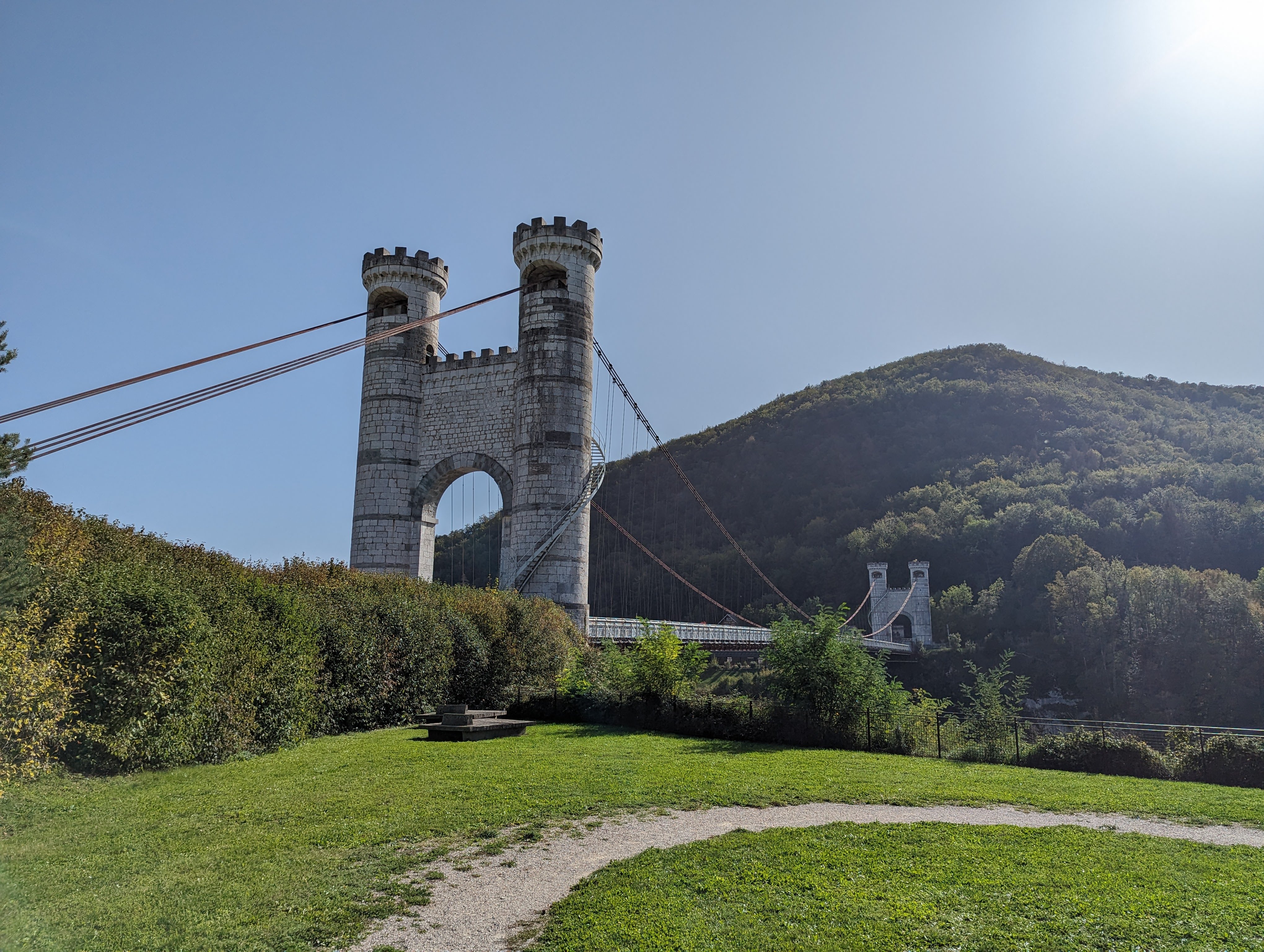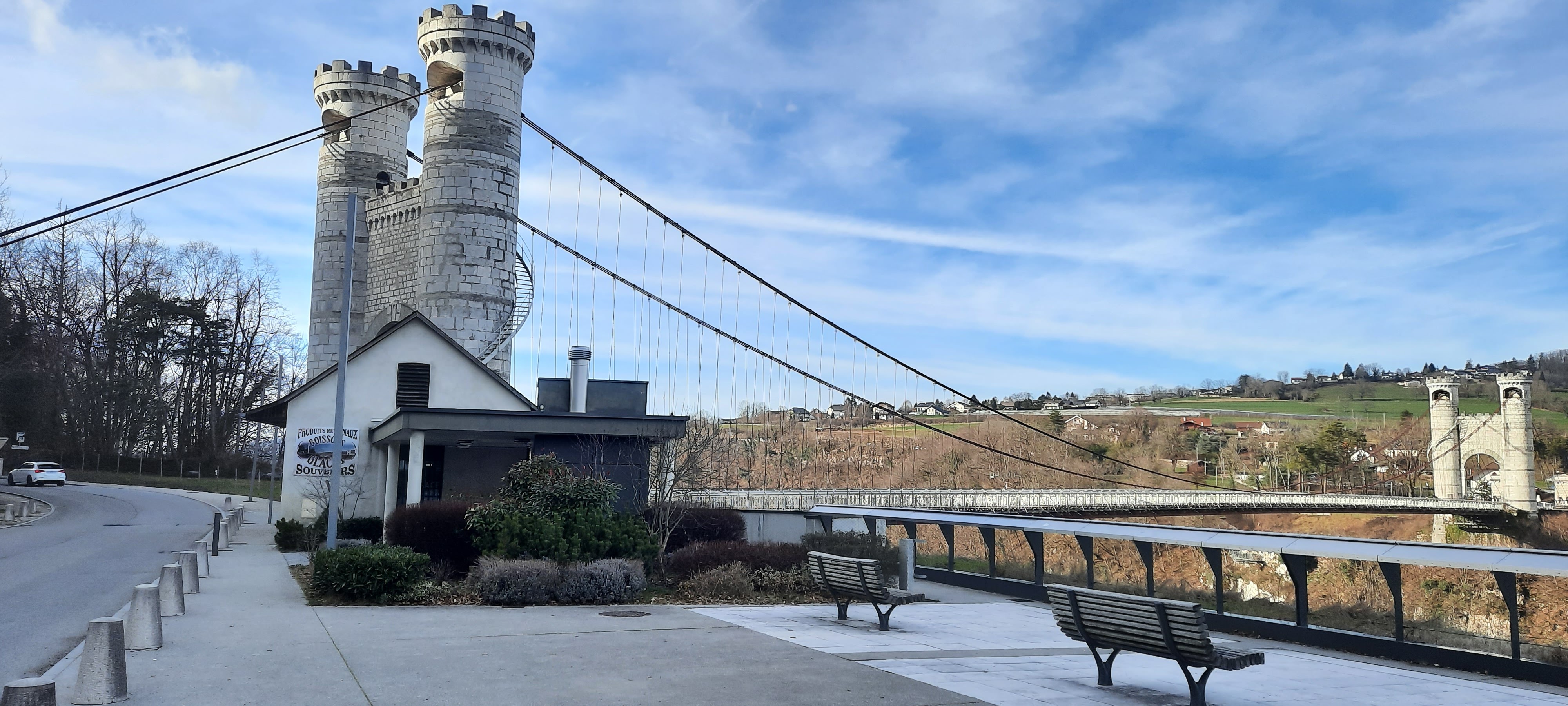 Situé entre St Julien en Genevois et Annecy, ce pont suspendu est une belle surprise.