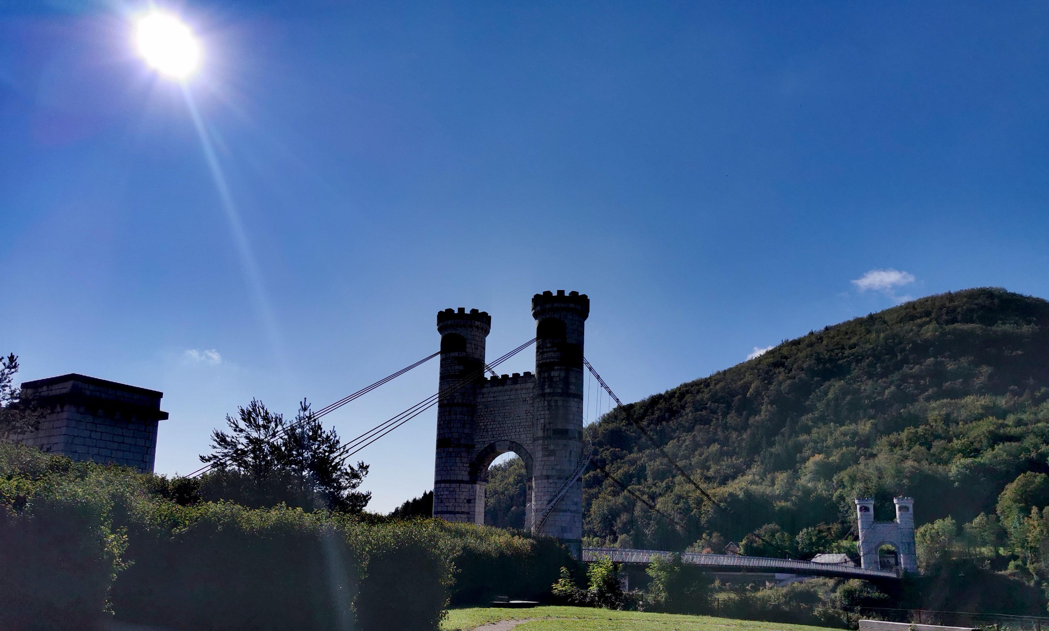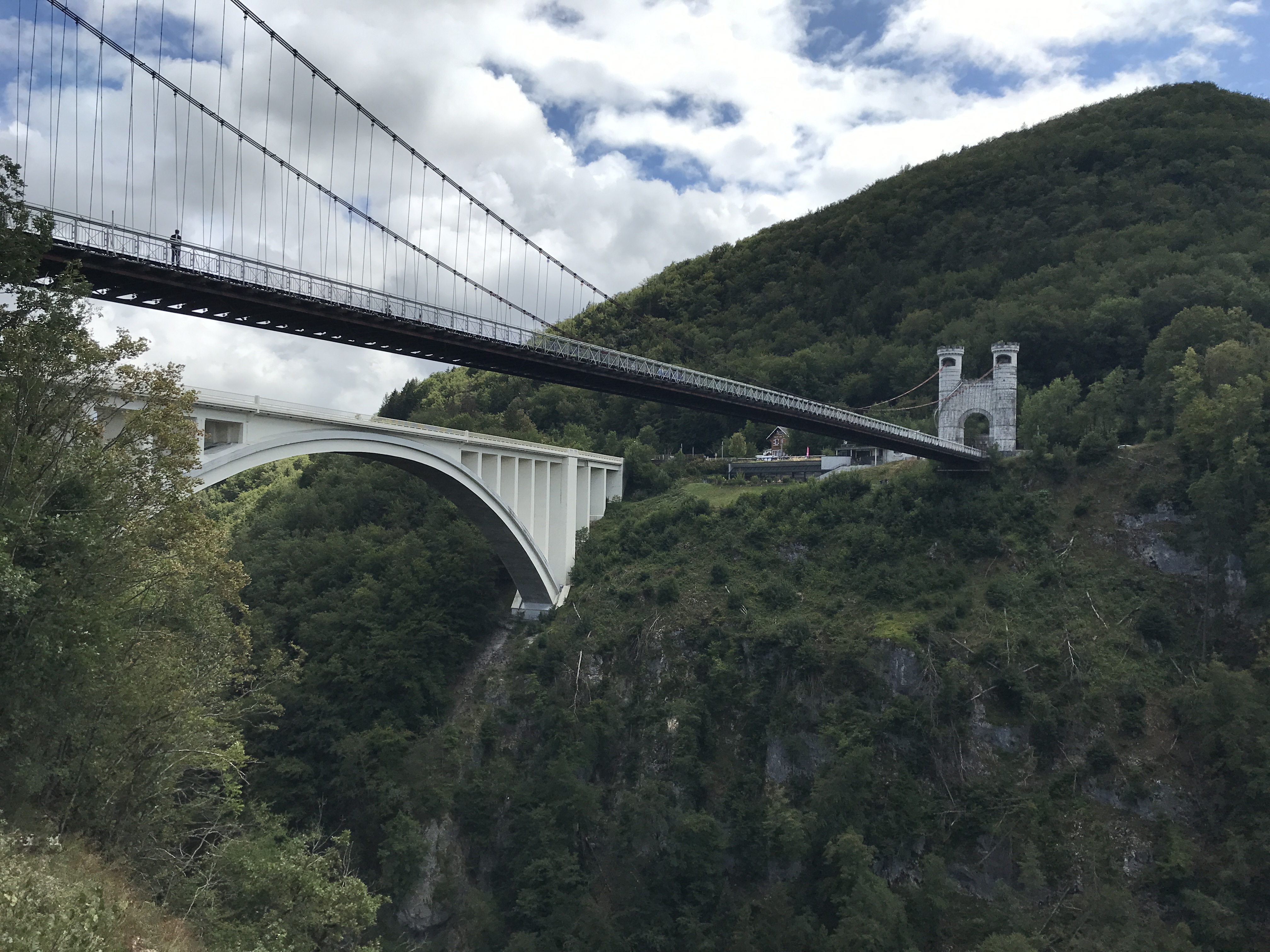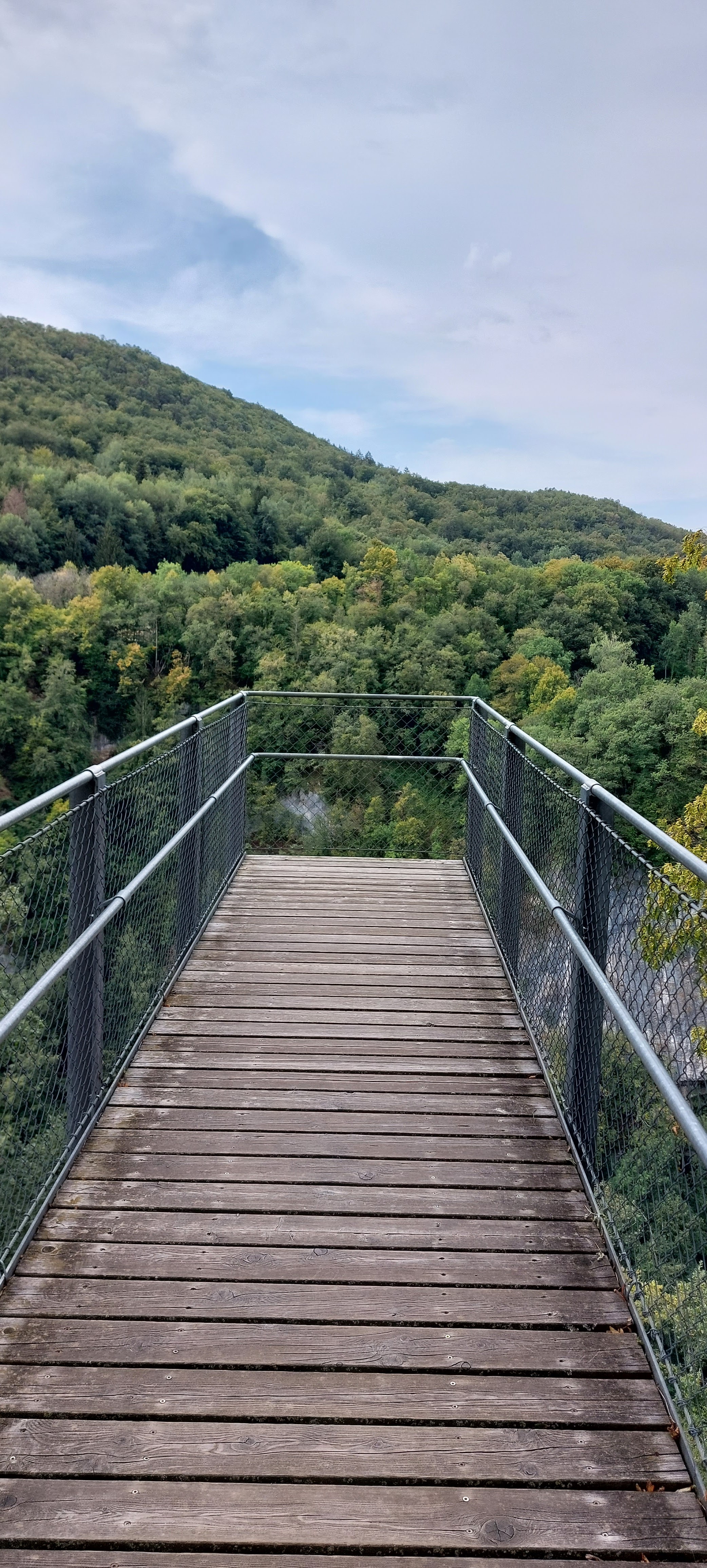 Superbe pont avec 1 tablier en lattes de bois ( s'abstenir quand on a le vertige !). 3 Passerelles sympa pour voir le panorama. Je recommande ce site ( anciens bâtiments cure thermale).