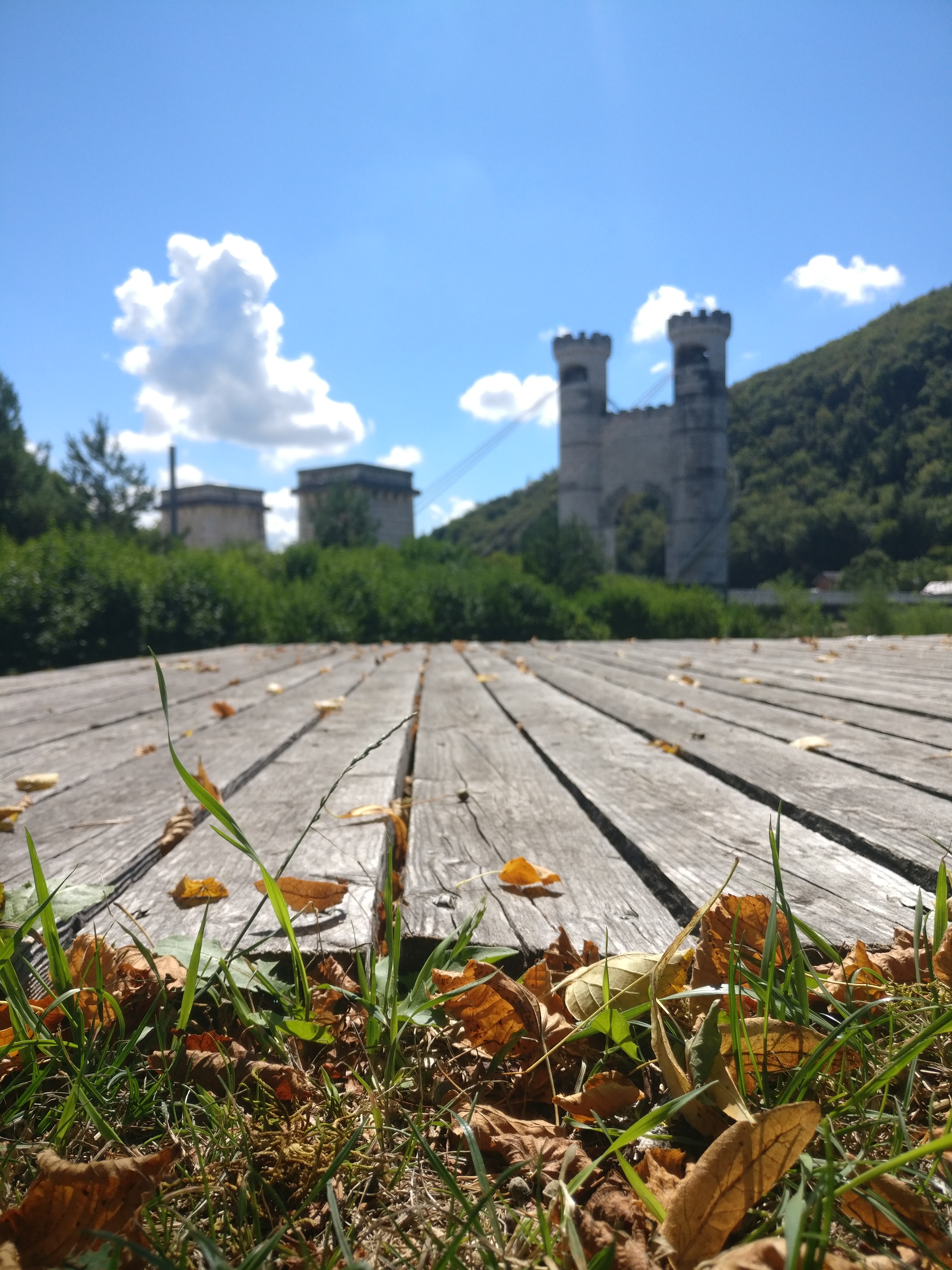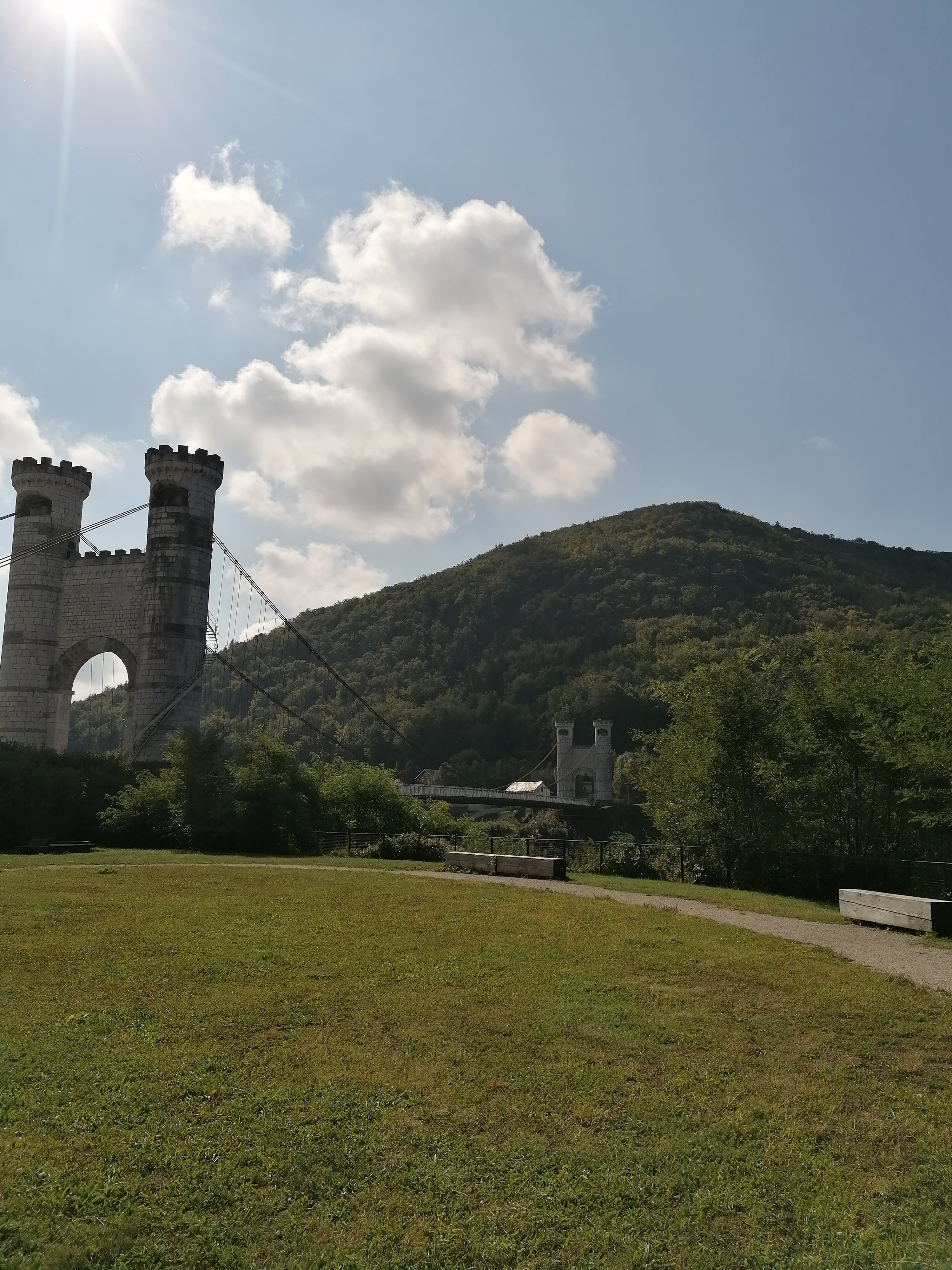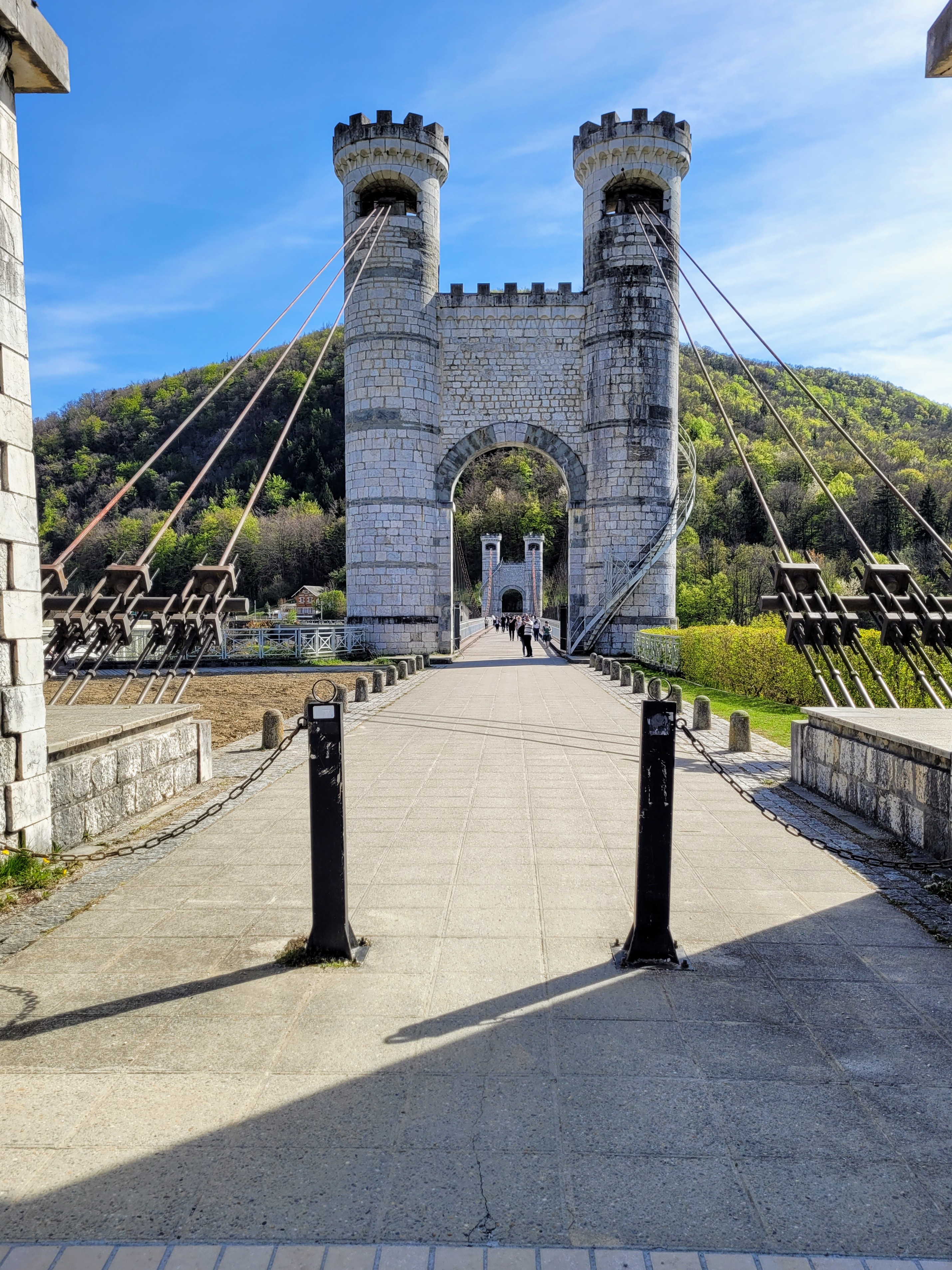 Superbe pont avec 1 tablier en lattes de bois ( s'abstenir quand on a le vertige !). 3 Passerelles sympa pour voir le panorama. Je recommande ce site ( anciens bâtiments cure thermale).