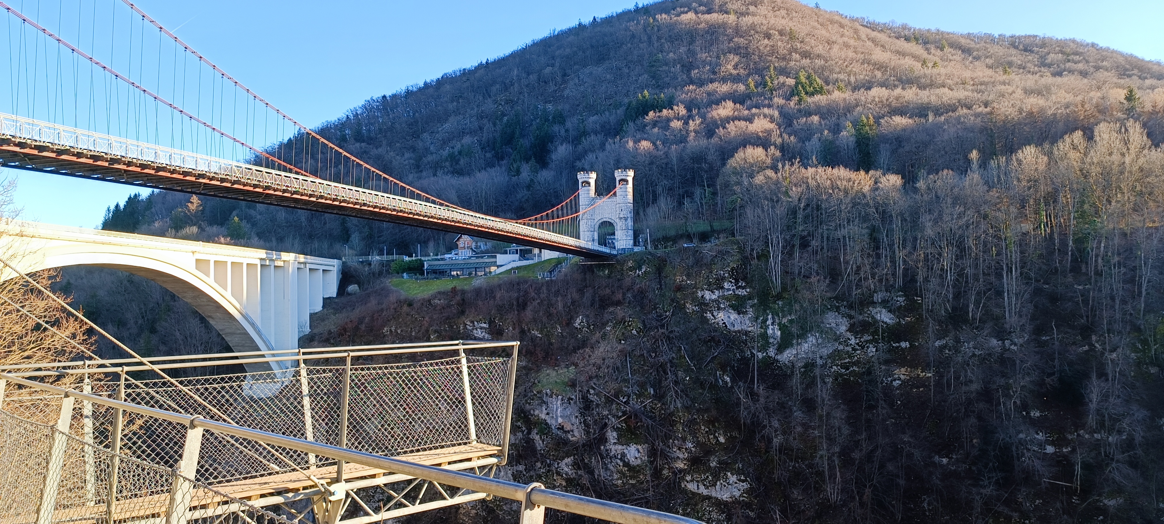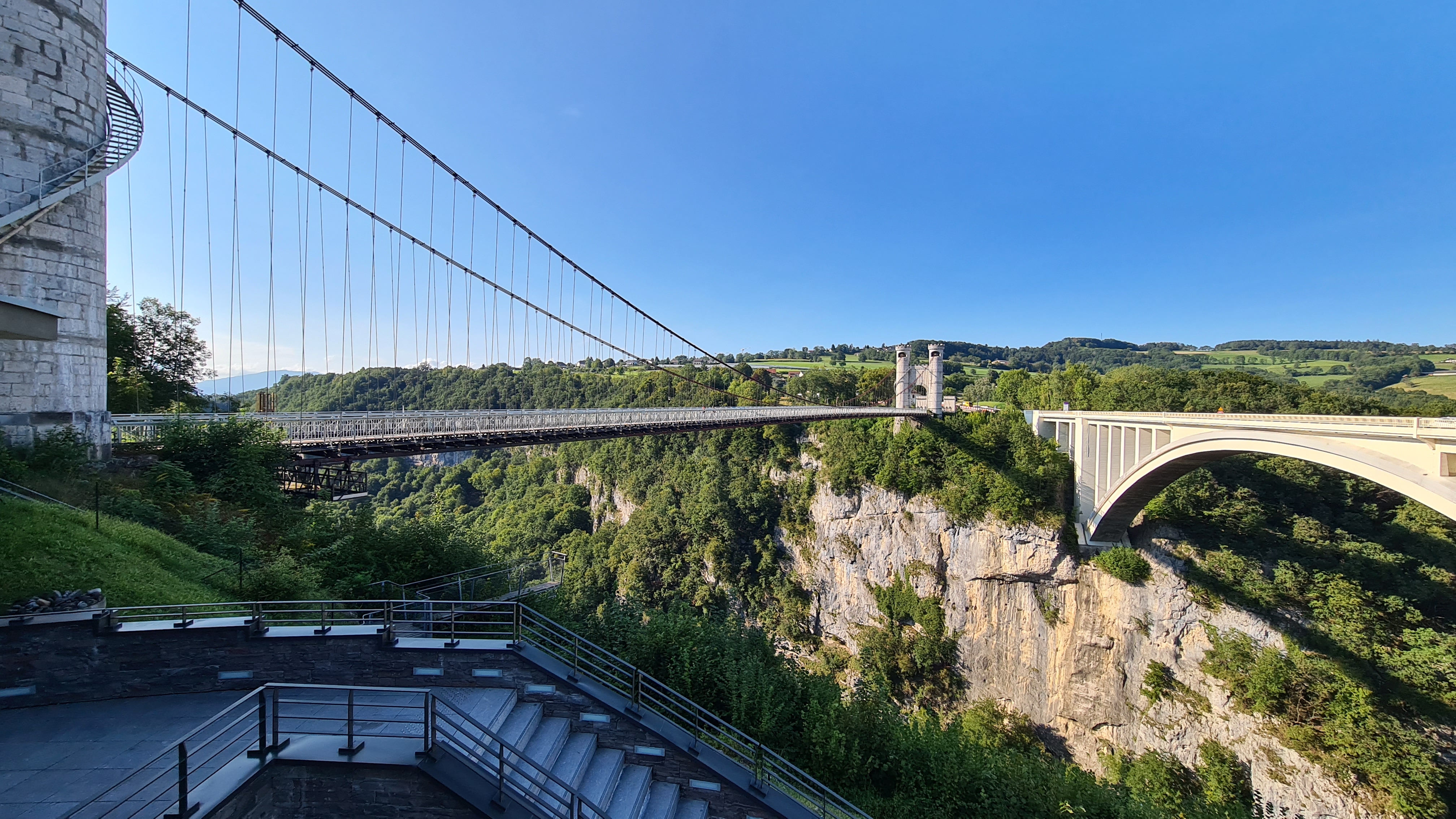 Magnifique pont, tout est aménagé, propre et bien entretenu ! Des passerelles suspendues sont installés des 2 cotés.