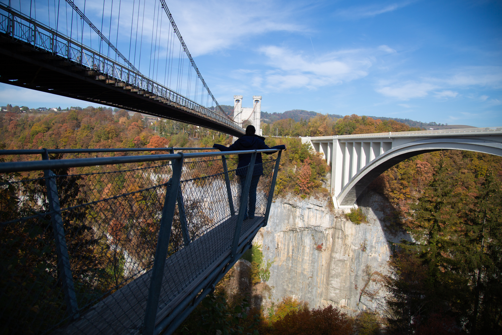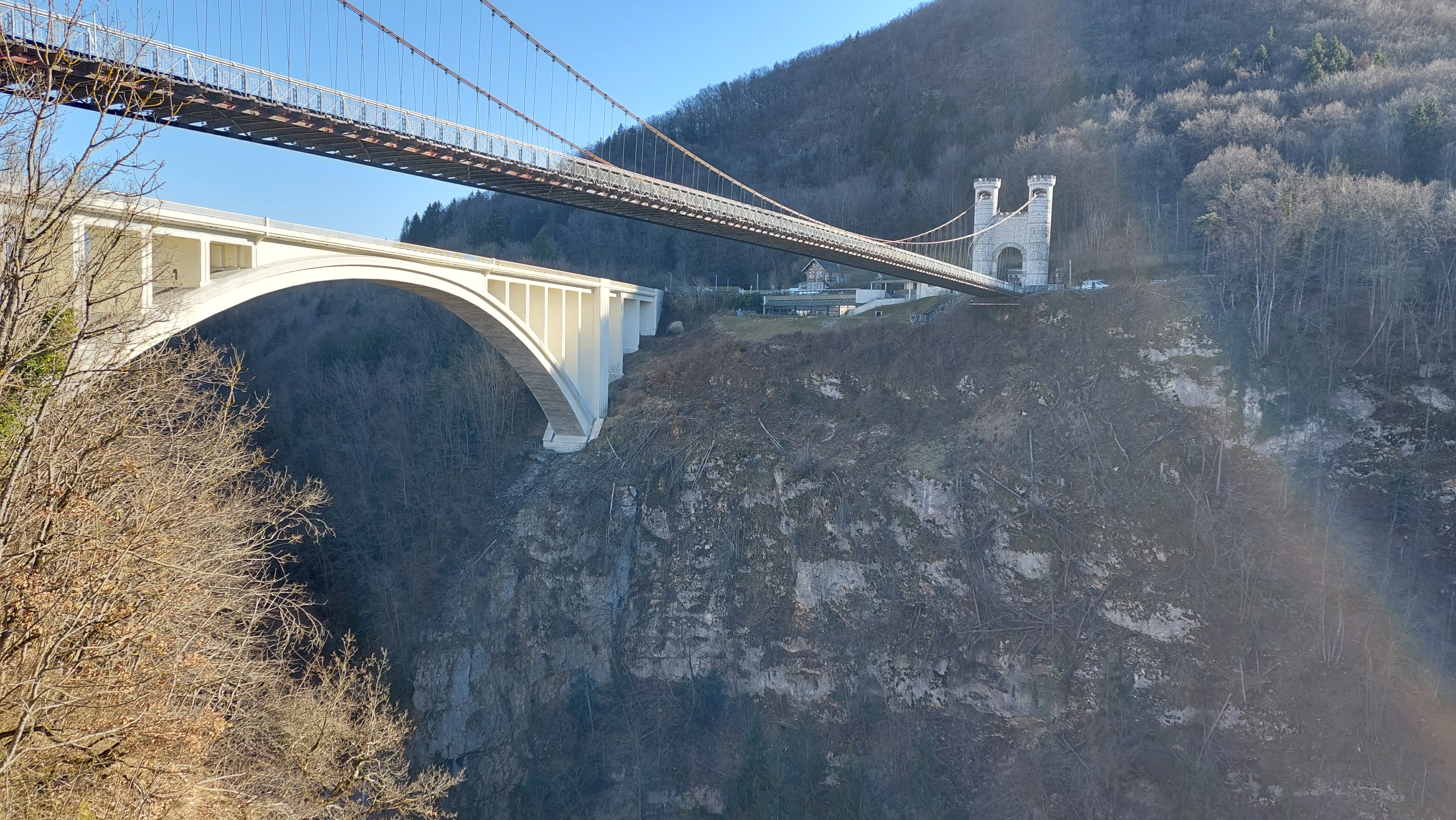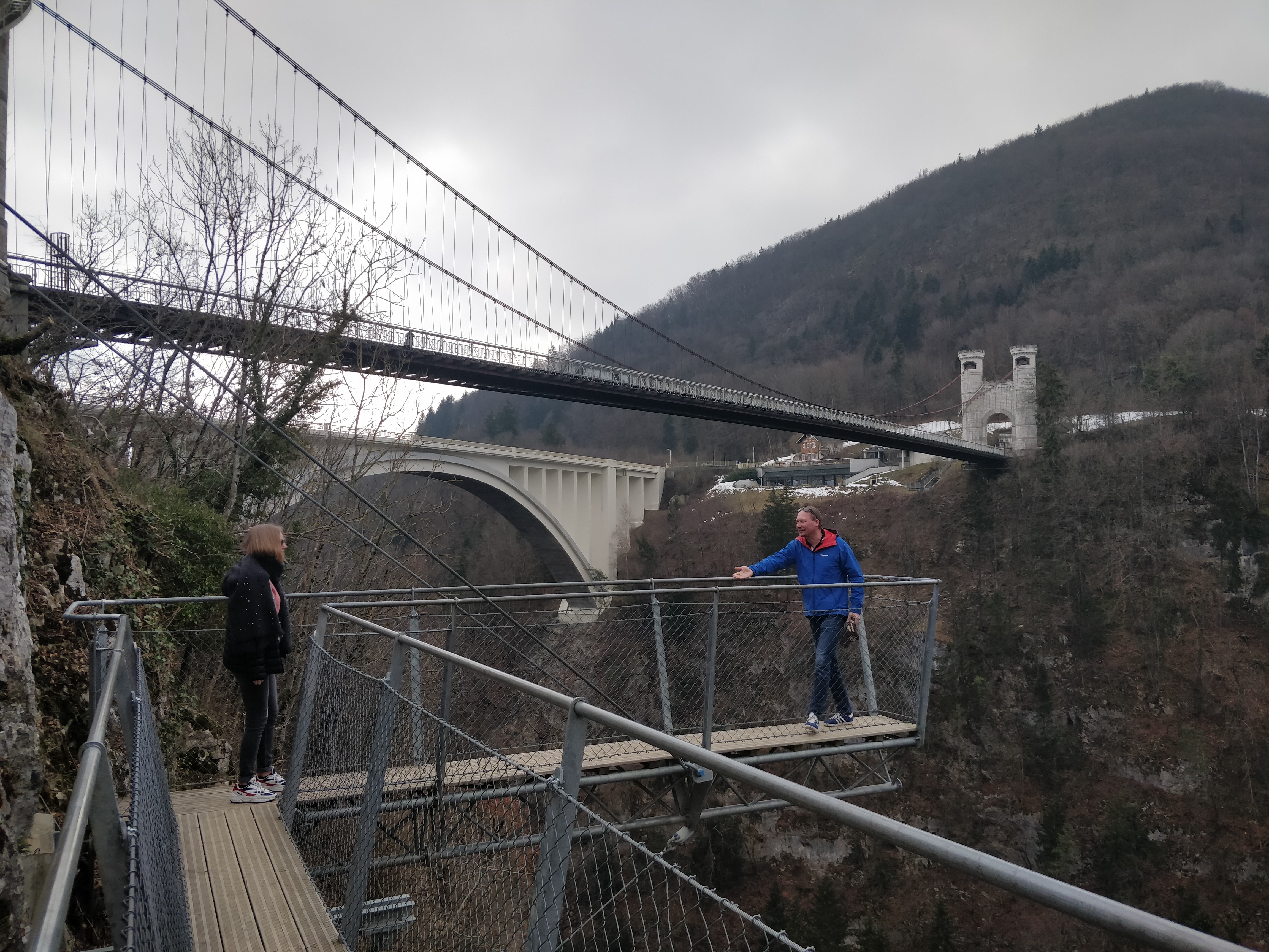 Un site remarquable et exceptionnel. Les 2 ponts de la Caille, longs de prés de 200 mètres (l'ancien de 1839 et l'actuel de 1928) enjambent la rivière des Usses qui coule 150 mètres plus bas. Le panorama sur les gorges est impressionant depuis l'ancien pont. Le site est parfaitement aménagé avec un grand parking gratuit, un espace pique-nique avec de nombreux bancs, et cerise sur le gâteau, deux passerelles qui s'avancent dans le vide. Frissons garantis. L'ensemble est parfaitement sécurisé et convient aux familles. Comptez une 1/2 heure pour la visite. Un incontournable de Haute-Savoie sur la route de Genève.