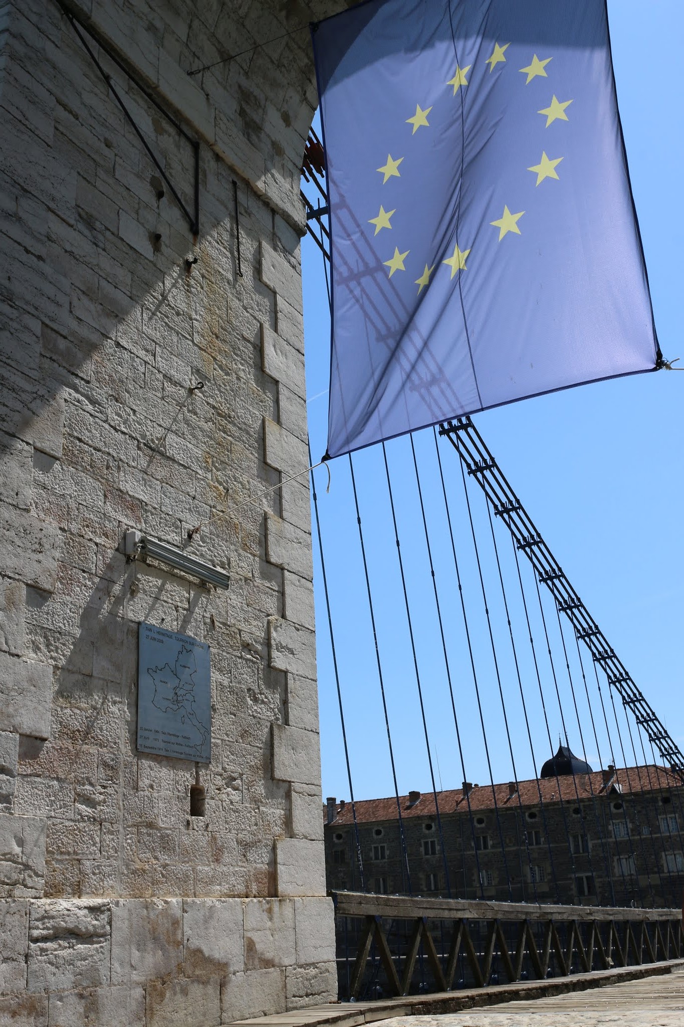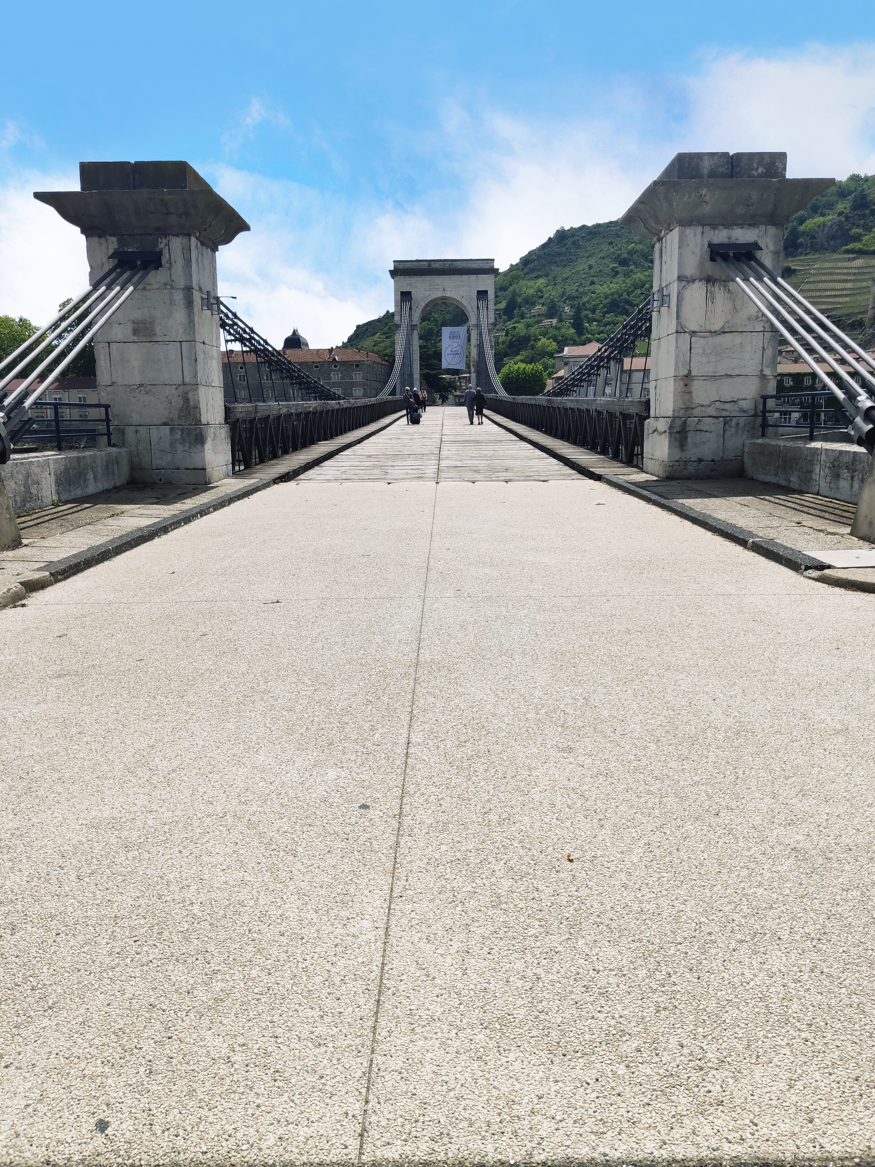 Belle passerelle pédestre et cyclable de Tournon à Tain. Le plus vieux pont suspendu avec câbles en fer d'Europe !
