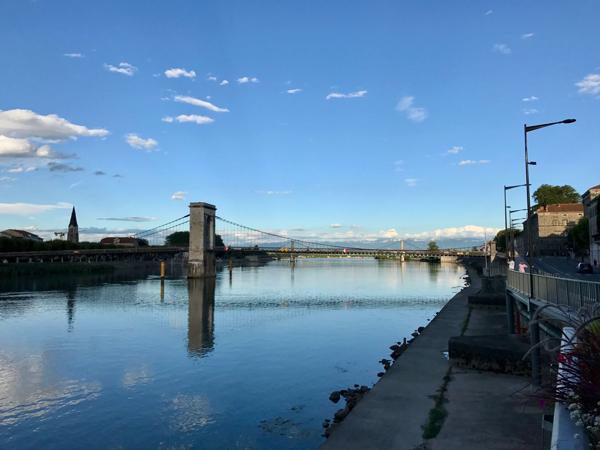 Sympathique passerelle piétonne qui survol le Rhône