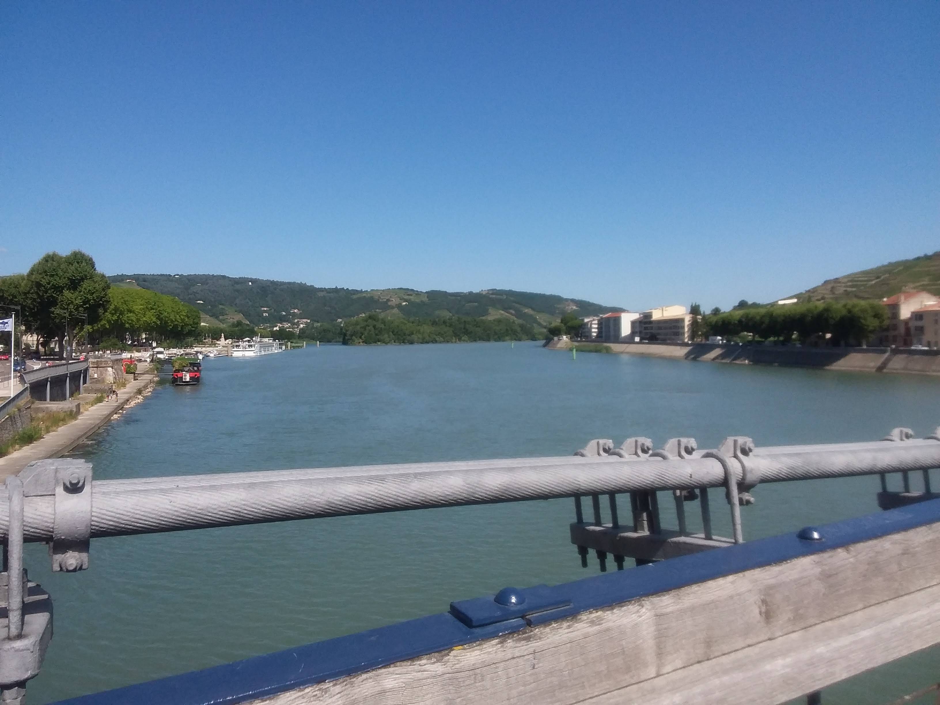 Nice footbridge with splendid views on Rhone. Joining Tournon-sur-Rhône et Tain-l'Hermitage