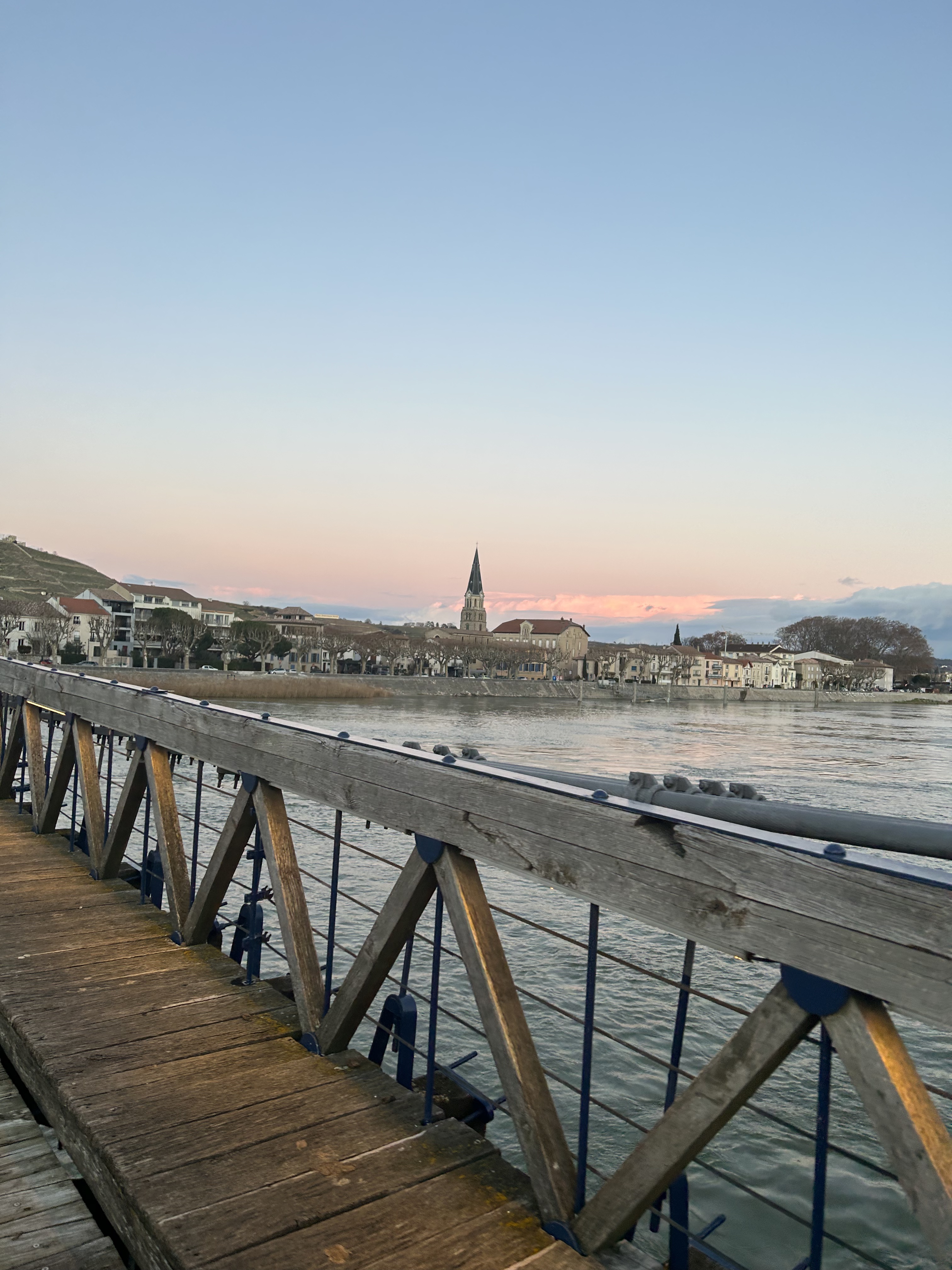 Très jolie passerelle piétonne qui relie la Drôme et l’Ardèche. Très instagrammable lors du coucher de soleil ! ☀️