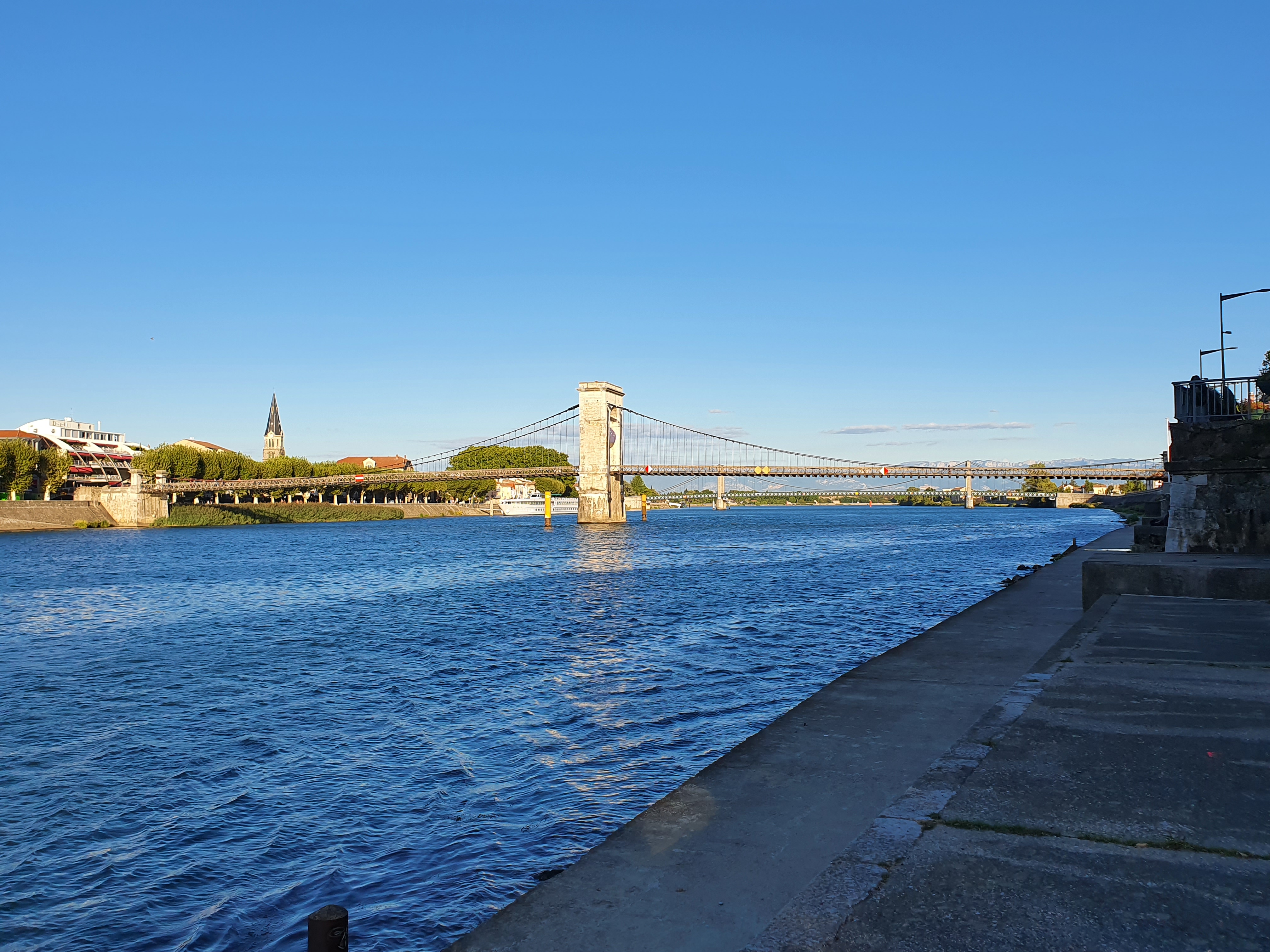 Magnifique édifice, superbe vues dur le Rhône et ses coteaux, passage des bateaux de croisières sous le pont très impressionnant, dommage qu'il y ai autant d'arabes bruyants ça gâché tout