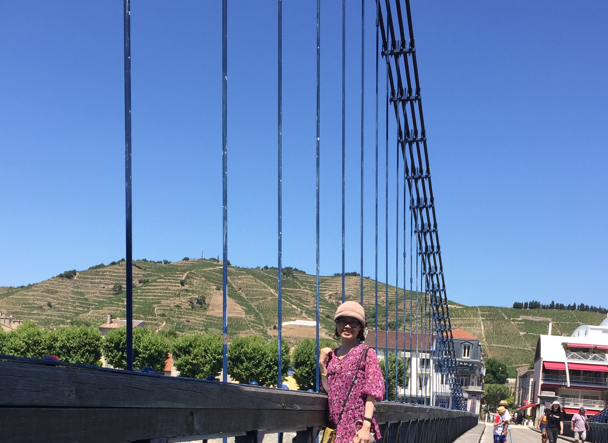 Très beau vieux pont de corde en bois et métal reliant le musée aux vignobles de la ville.