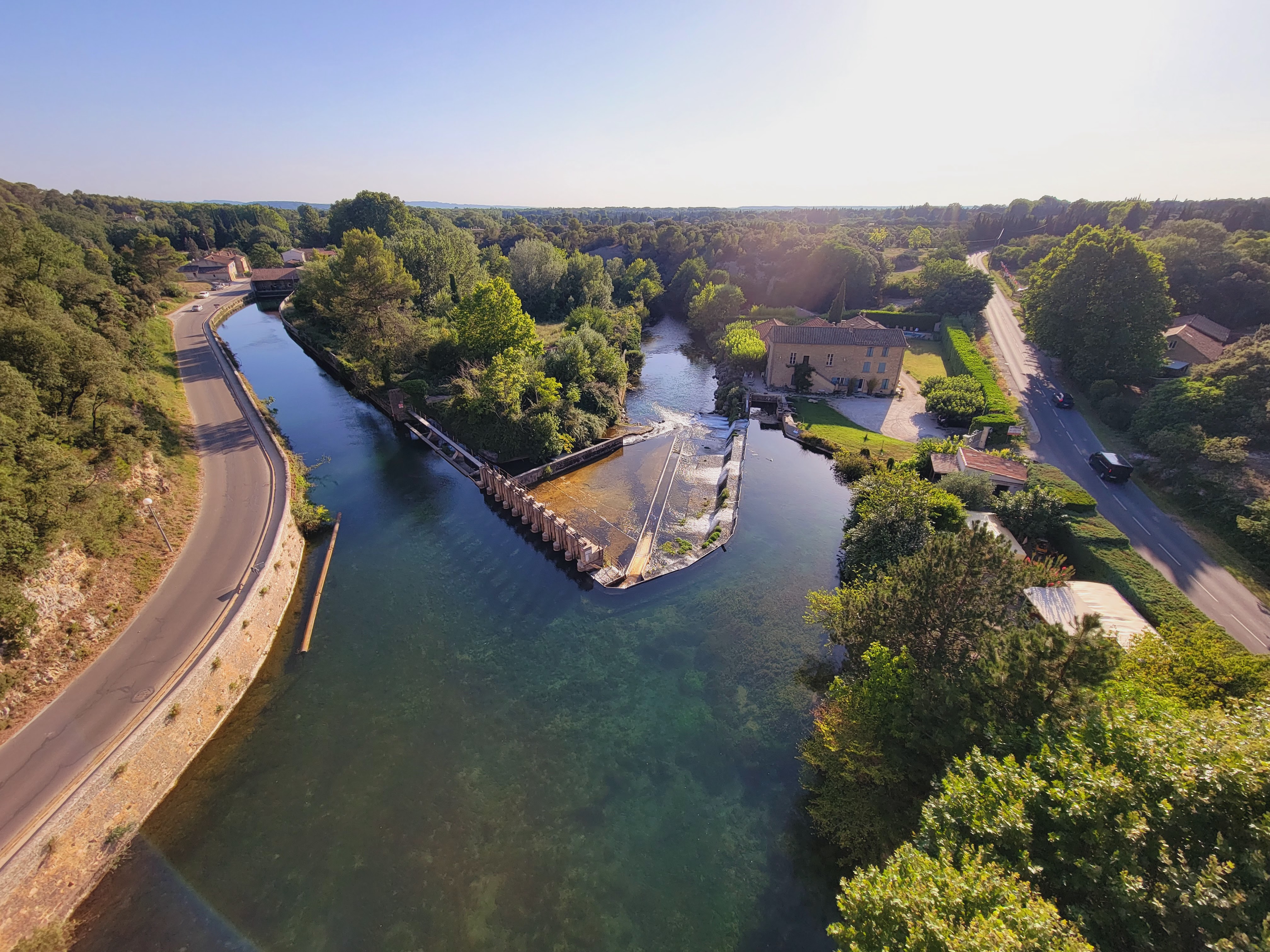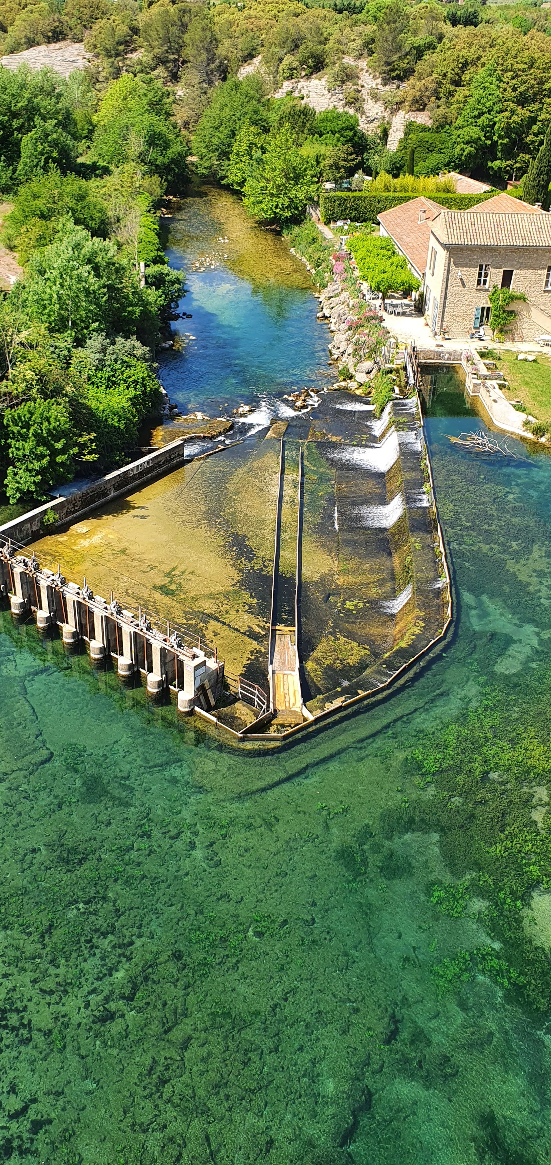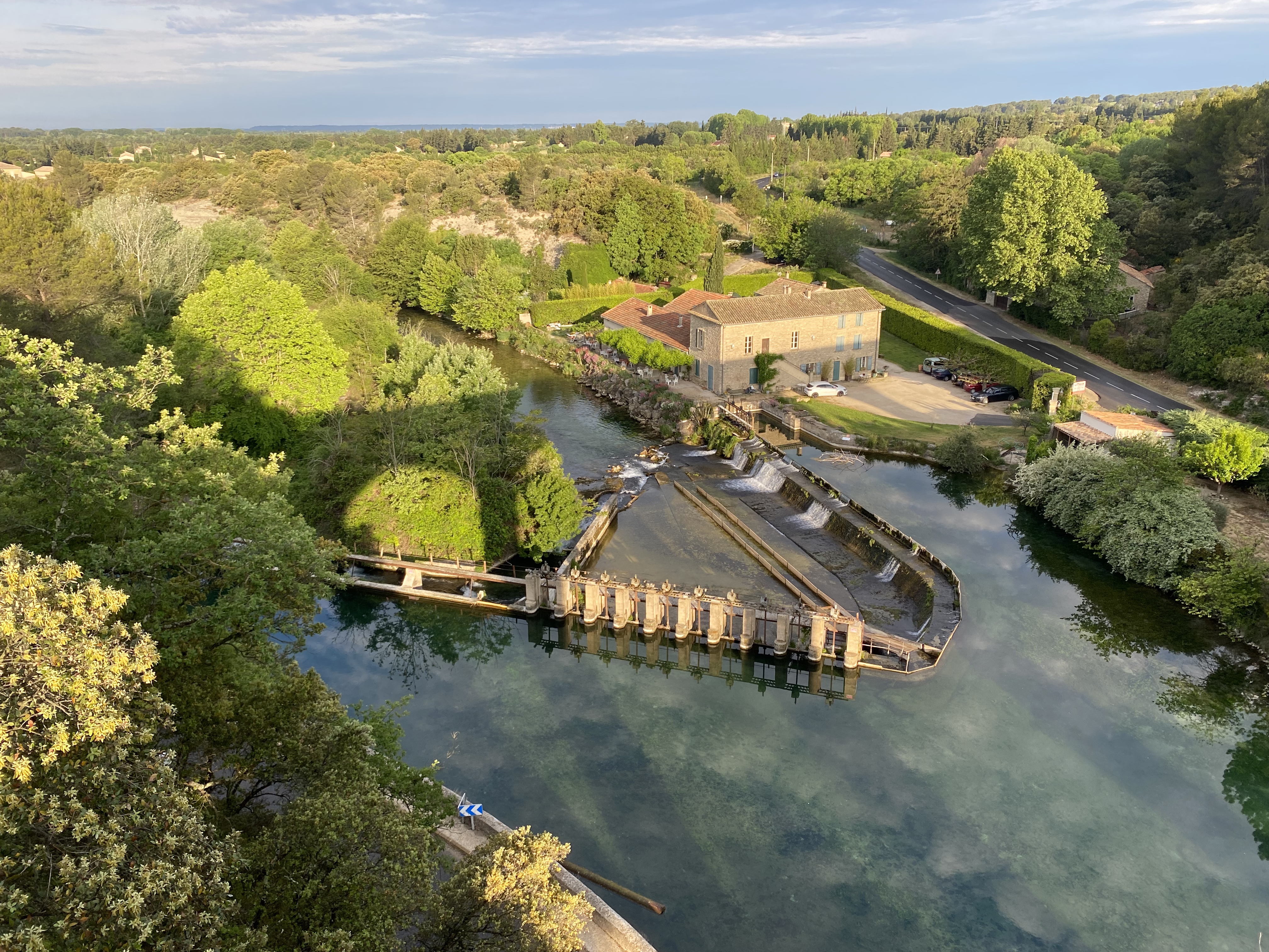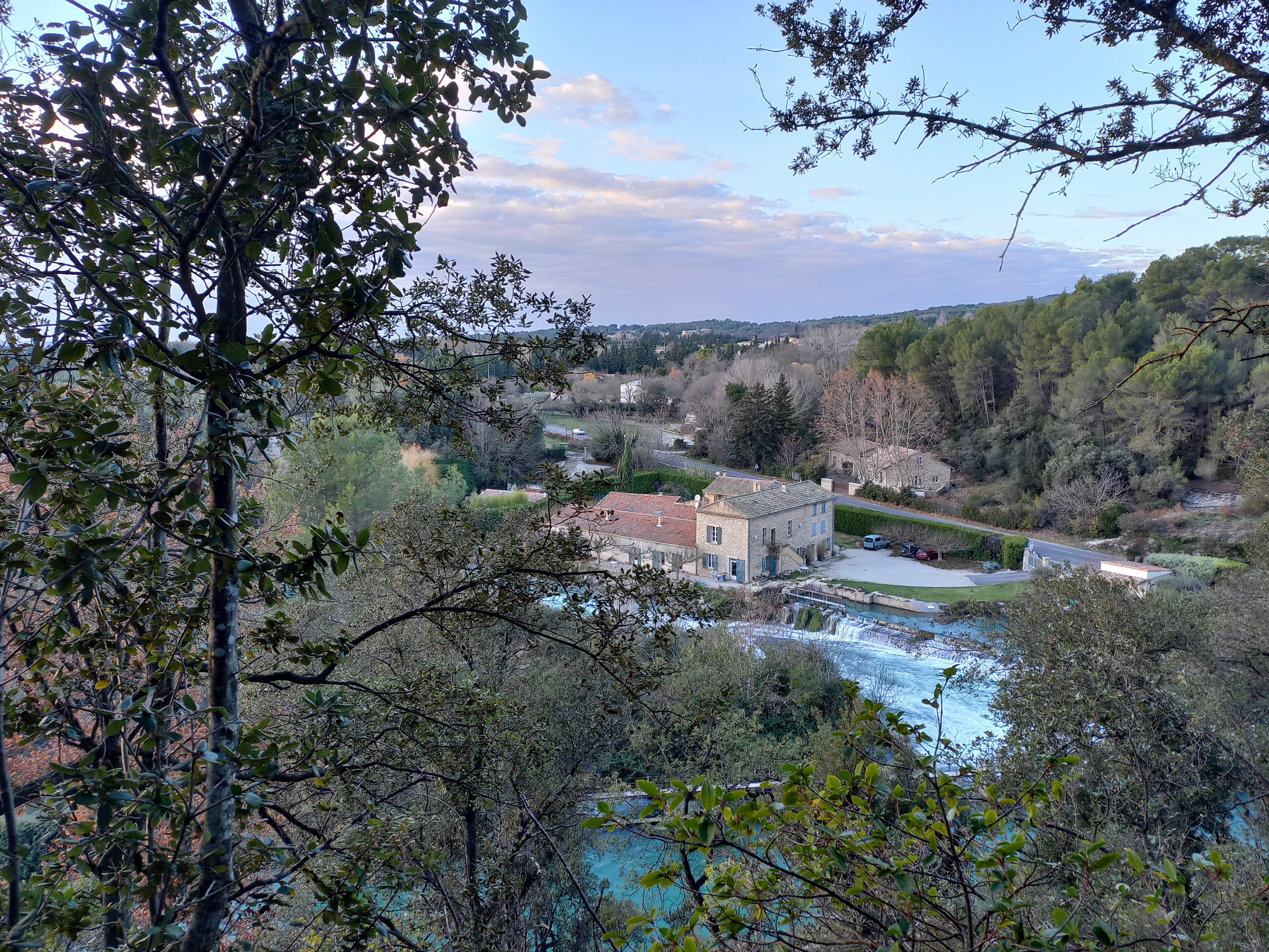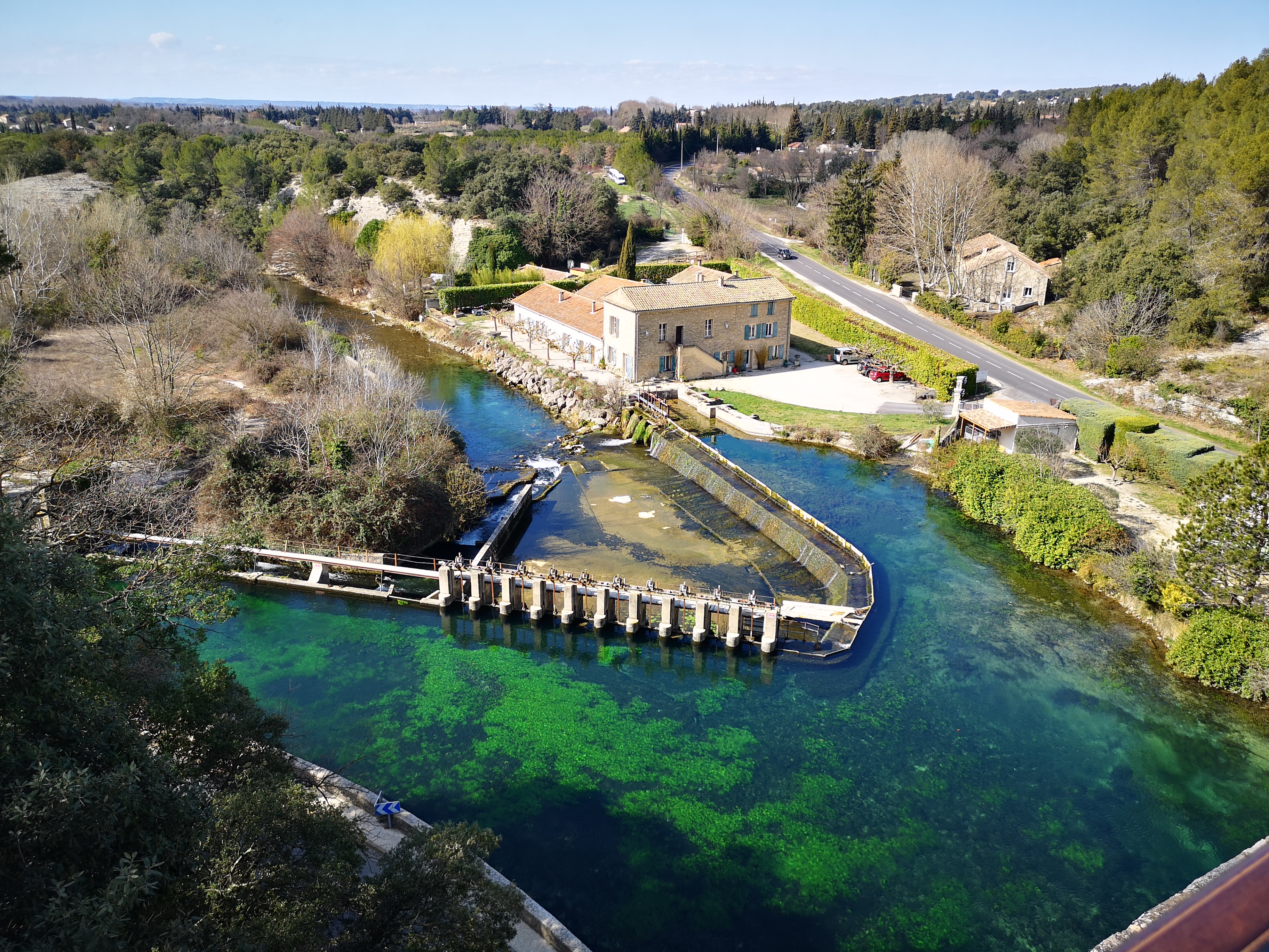Jolie vue sur l’ancien moulin et l’entrée de Fontaine-de-Vaucluse