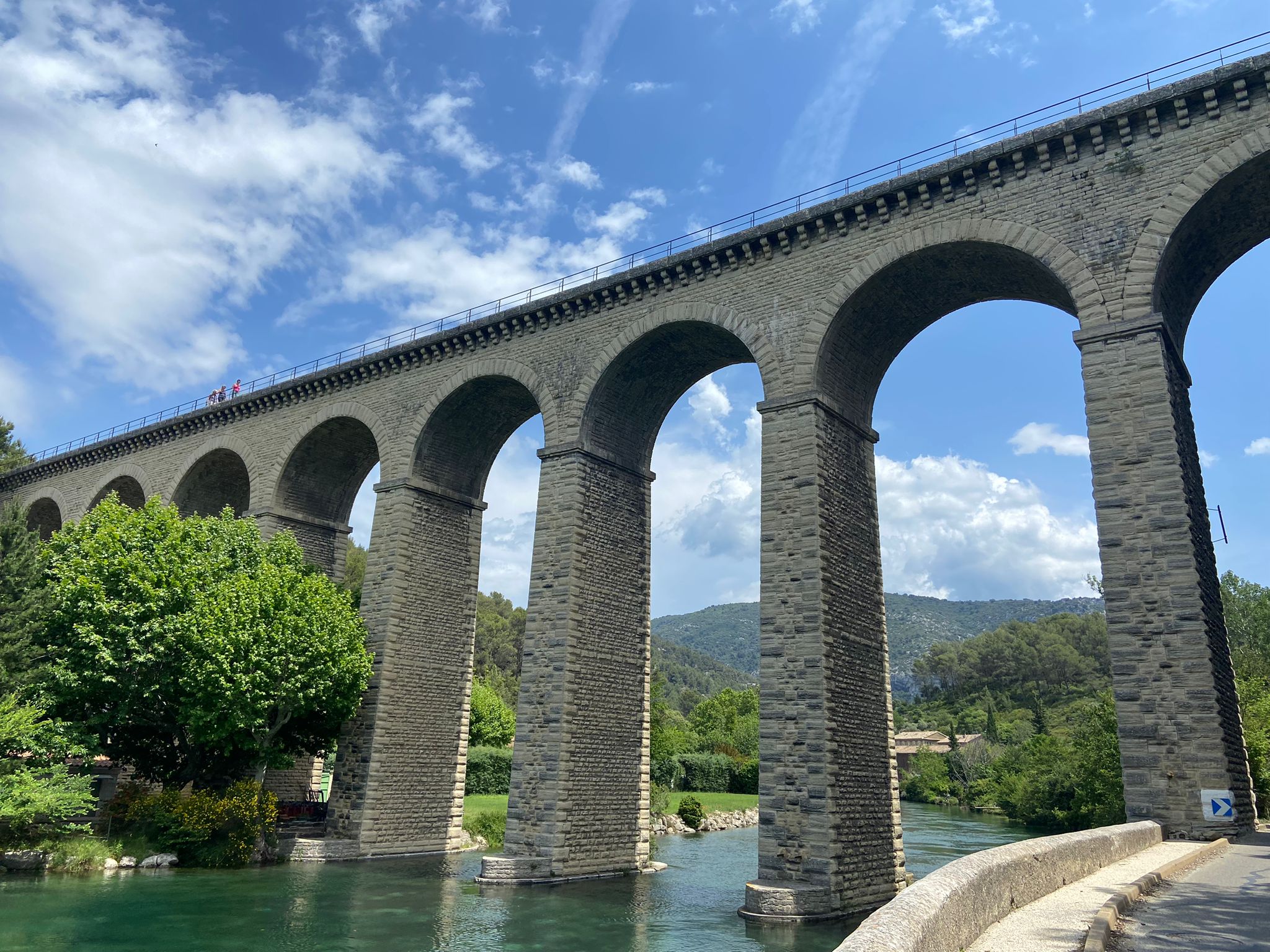 Pas très loin de Saumane de Vaucluse, pas trop de difficulté pour monter dessus et le traverser. Inauguré en 1857, 13 Arches,159 mètres de long, 24 mètres de haut. L'accès se fait par 2 chemins de chaque côté pas du tout indiqué. L'un étant plus escarpé prendre celui qui est côté écluse, l'entrée du chemin se trouve devant le bâtiment qui traverse le cours d'eau. Après avoir traversé l'aqueduc n'hésitez pas à marcher au bord du canal de Carpentras servant à l'irrigation sur un chemin bien plat et large ou courir pour les plus sportifs et par endroits des petits ponts traversent ce canal. De belles sensations rencontrées lors de la traversée ! Éviter de traverser avec de trop jeunes enfants.