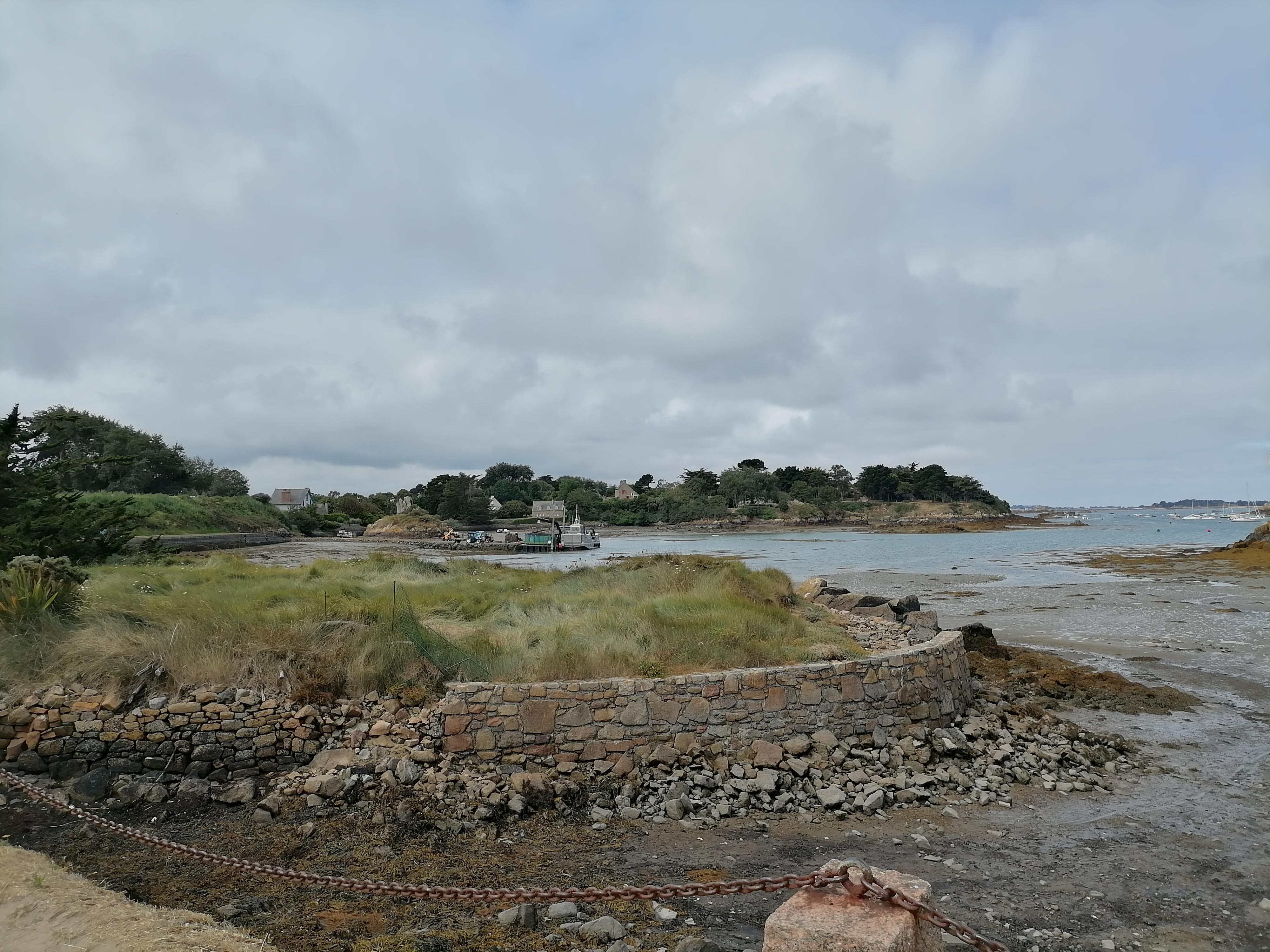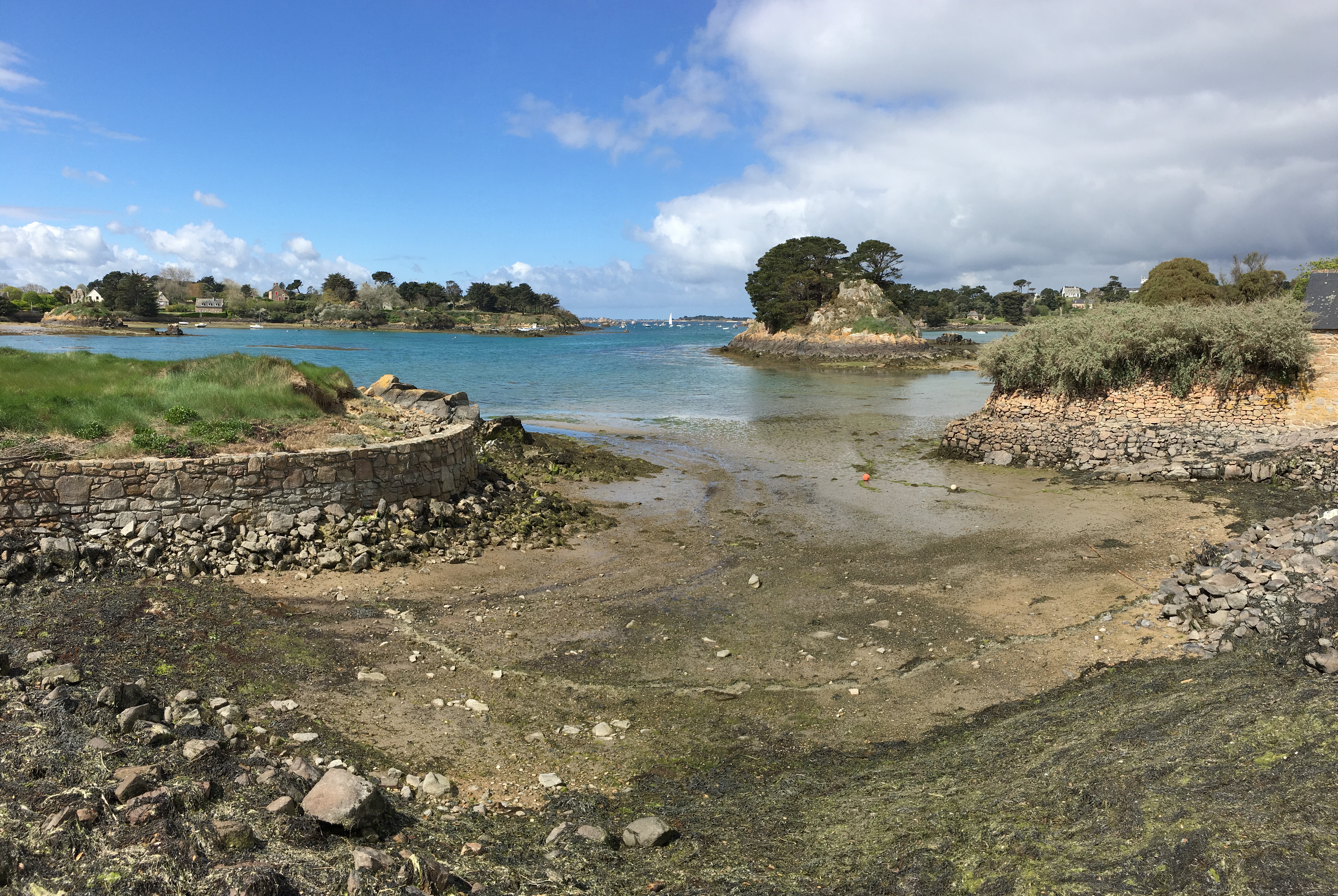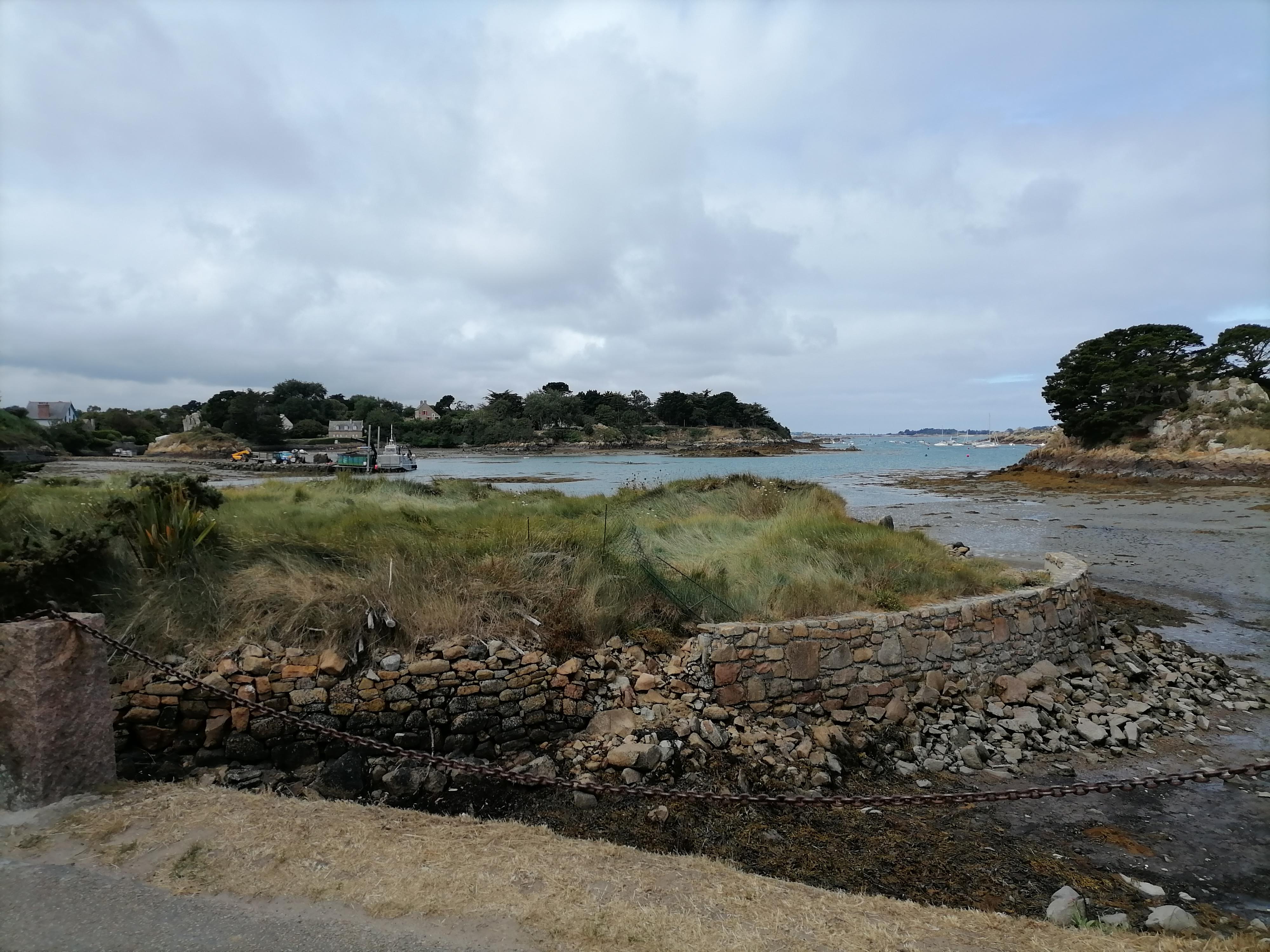 Un peu d'histoire ? 🙂(Fr & En) Le Pont ar Prat (Pont de la Prairie) sépare l'Île Sud de l'île Nord. Par son appellation de Pont ou chaussée Vauban, cet ouvrage est datable au moins du 17ème siècle, lors de la visite de Vauban sur l'île en 1695, mais serait probablement plus ancien (construit sur un tombolo de galets). L'ouvrage fut consolidé en moellons et pierre de taille en 1756. Le Grand pont a été reconstruit entre 1795 et 1800, surélevé et consolidé à plusieurs reprises. Il est équipé d'une cale d'accès à la grève Est de Bréhat, alors que sa partie Ouest donnant sur l'anse de la Corderie en est exempt. Le pont rejoignant l'île Nord, est bordé de murets de défense contre la mer, s'adossant à une maison traditionnelle, datant au moins du 18ème siècle. The Pont ar Prat (Prairie Bridge) separates the South Island from the North Island. By its name of Pont ou chaussée Vauban, this work can be dated at least from the 17th century, during Vauban's visit to the island in 1695, but would probably be older (built on a pebble tombolo). The work was consolidated in rubble and freestone in 1756. The Grand Pont was rebuilt between 1795 and 1800, raised and consolidated several times. It is equipped with an access wedge to the eastern shore of Bréhat, while its western part overlooking the cove of the Corderie is exempt. The bridge joining the North Island is bordered by low walls of defense against the sea, leaning against a traditional house, dating at least from the 18th century.