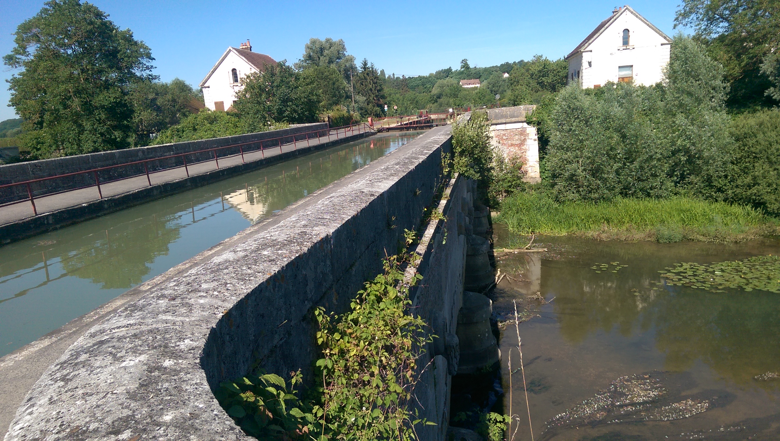 Ils ont fait un pont pour que le canal passe au dessus de l'eau.....Trop fort