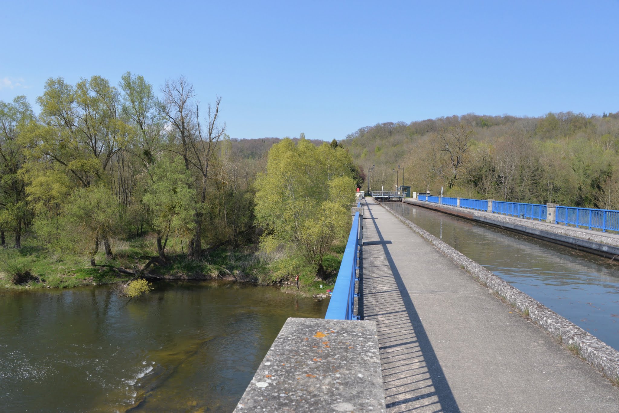 La canal des Vosges enjambe la Moselle par ce pont construit en 1880. Un site pas banal !