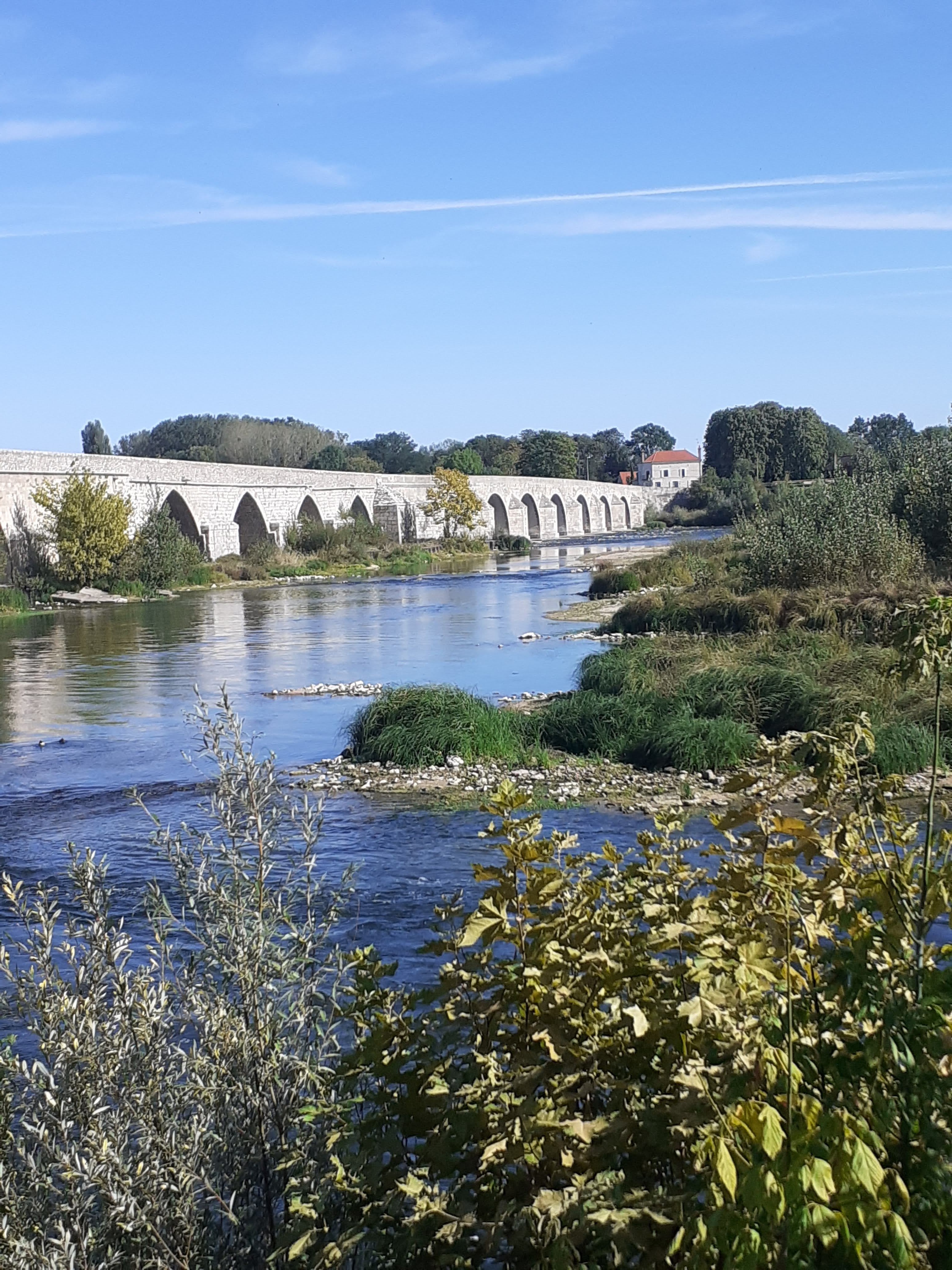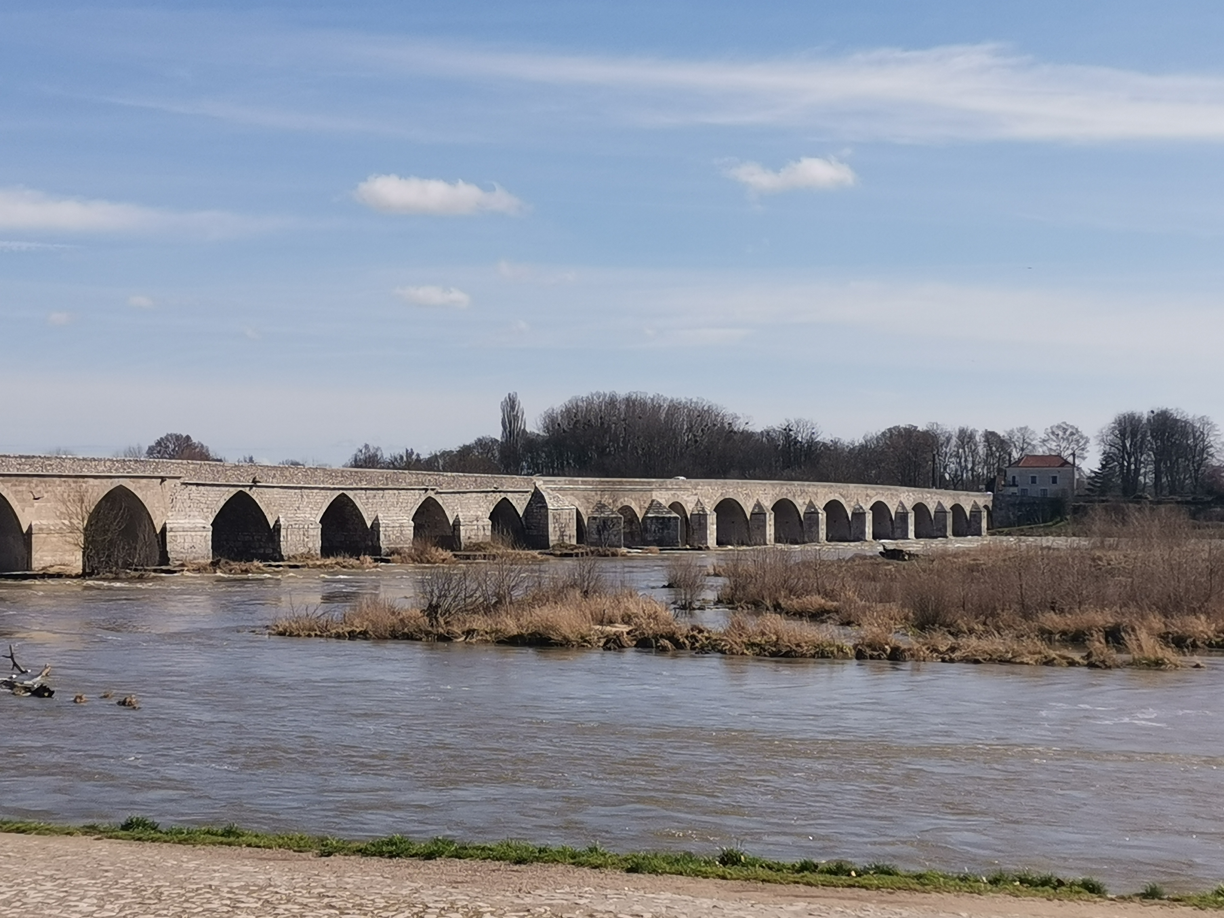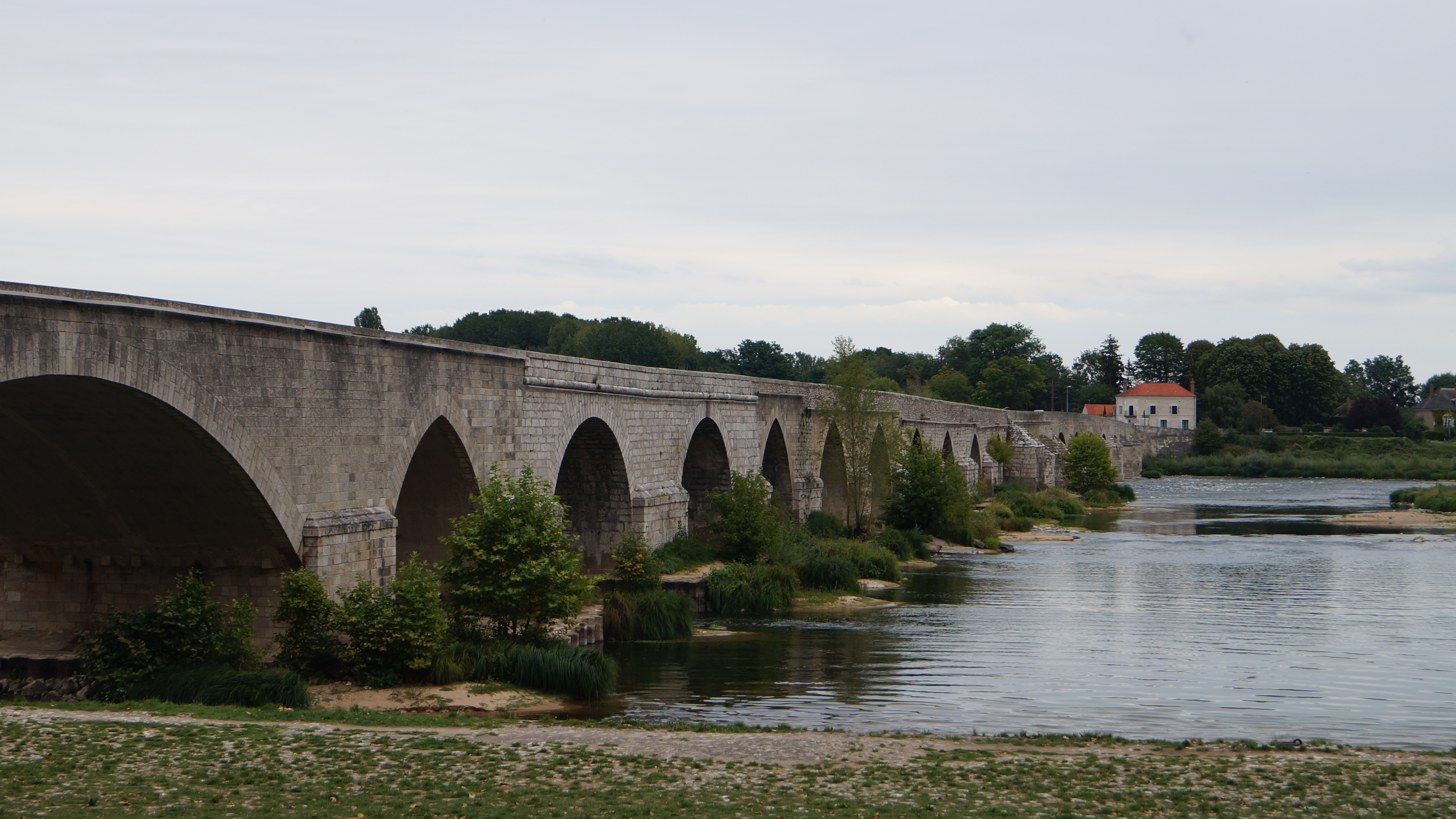 20 arches. Le plus long pont de la Loire. Dans un bel environnement naturel et aux îles envahies par les oiseaux. Un joli petit détour.