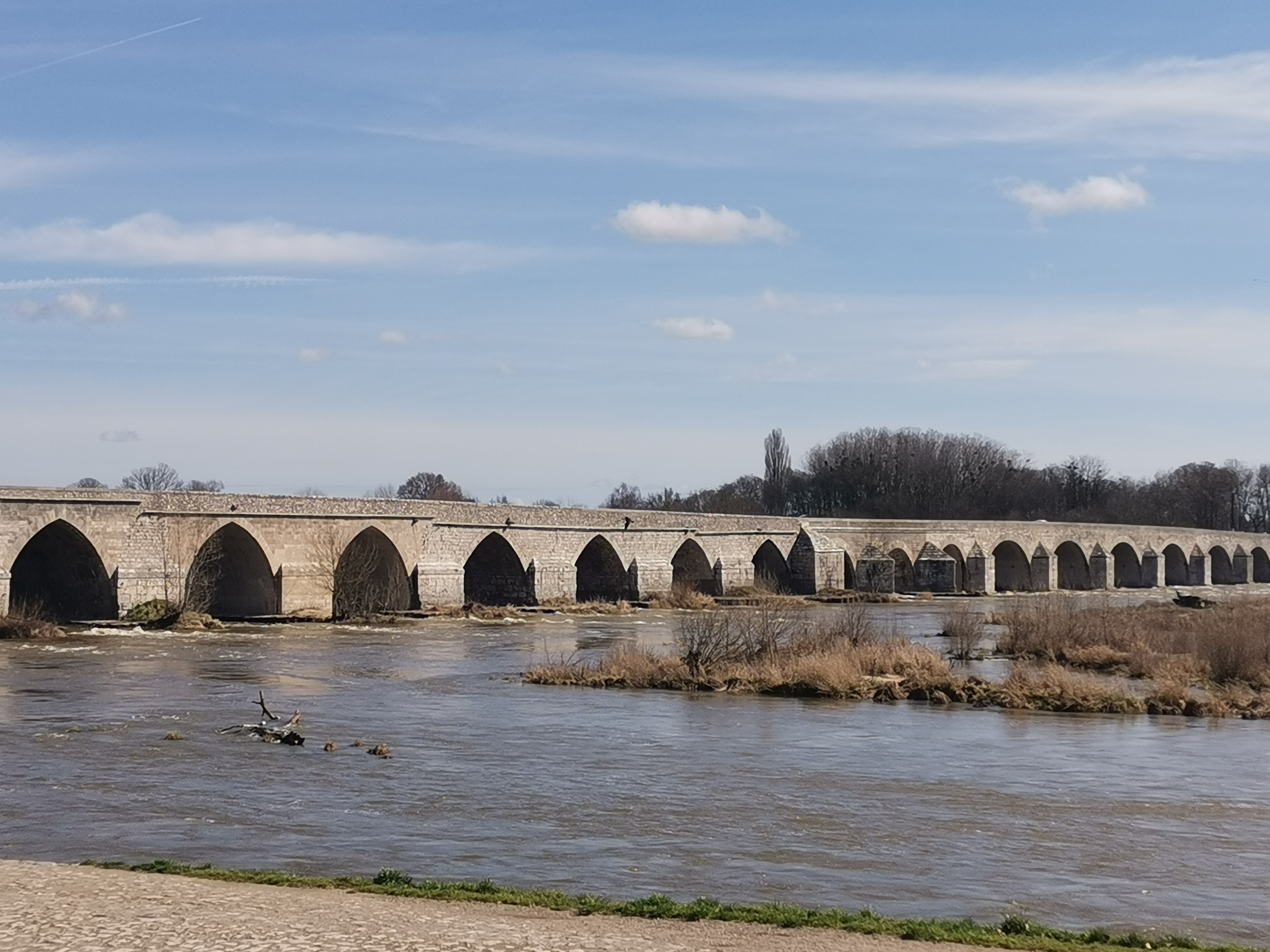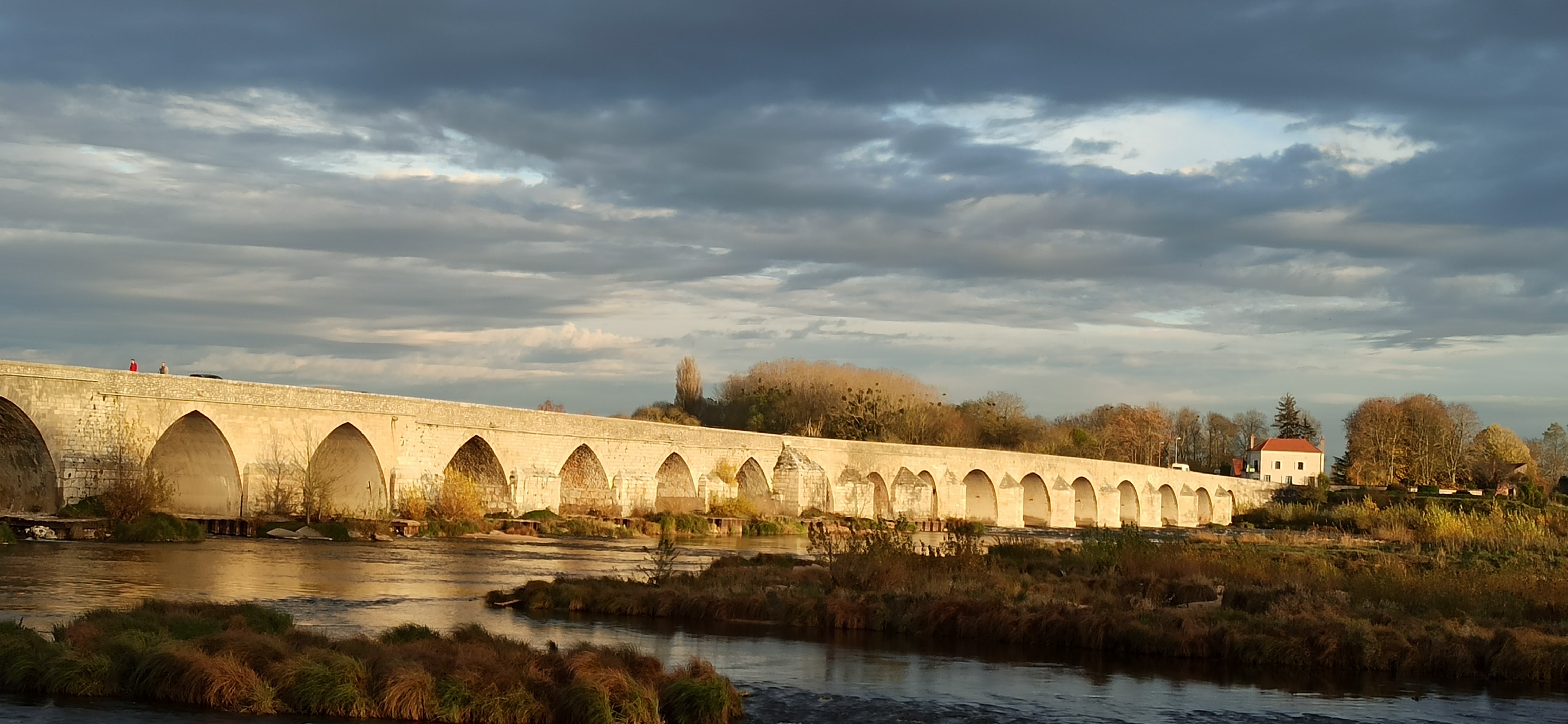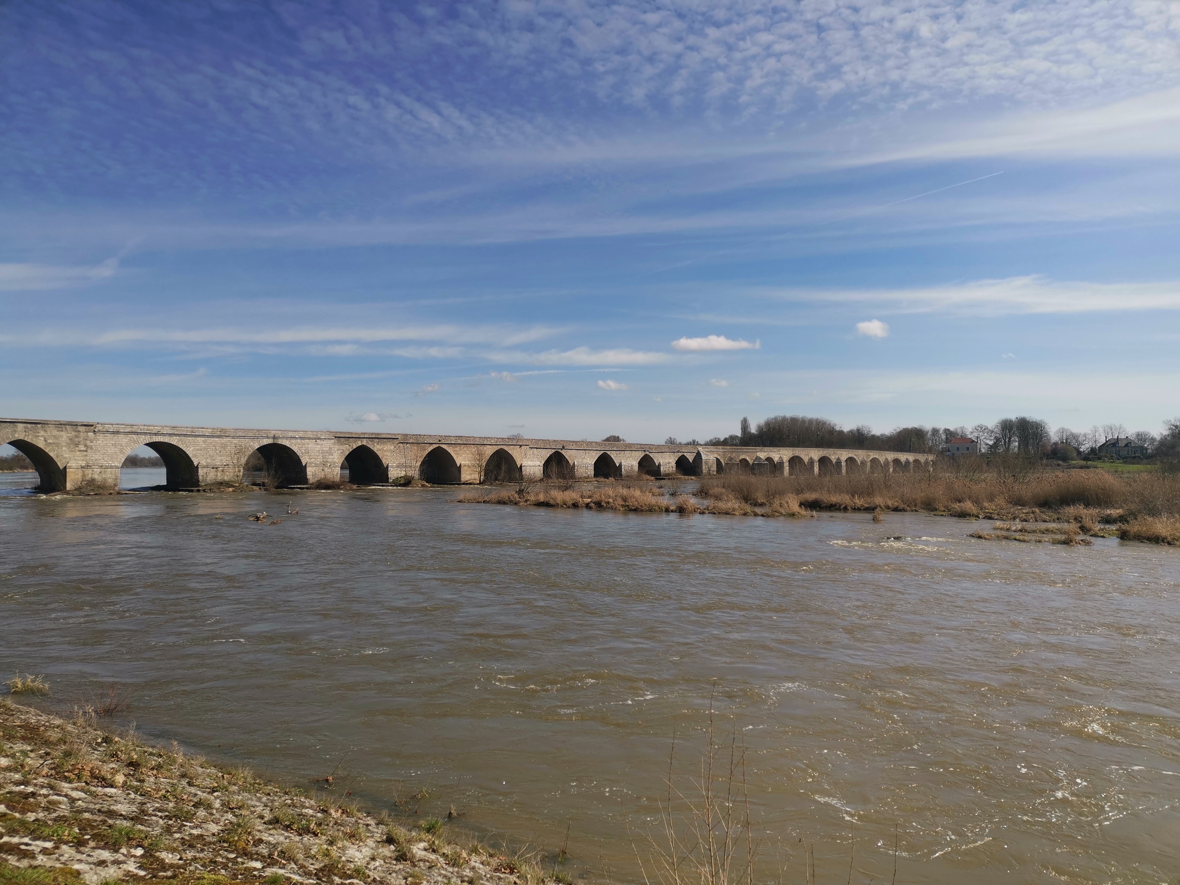 20 arches. Le plus long pont de la Loire. Dans un bel environnement naturel et aux îles envahies par les oiseaux. Un joli petit détour.