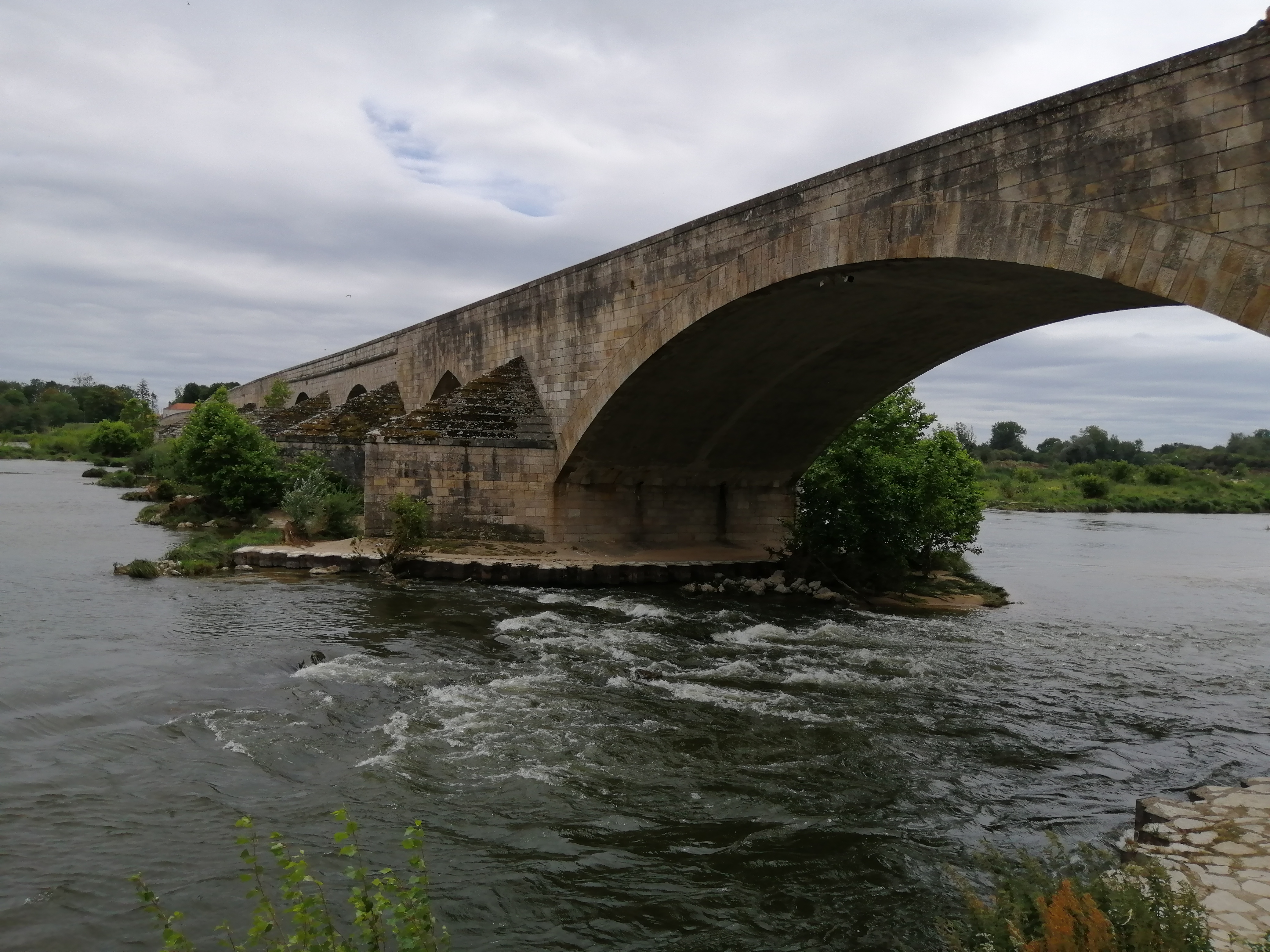Beau pont mais pas entretenu....arbres qui poussent , arbres déposés par la Loire lors dernière crue de printemps entre les piles du pont et toujours là...pourquoi ne pas profiter du niveau actuellement bas de la Loire pour faire un peu de ménage...