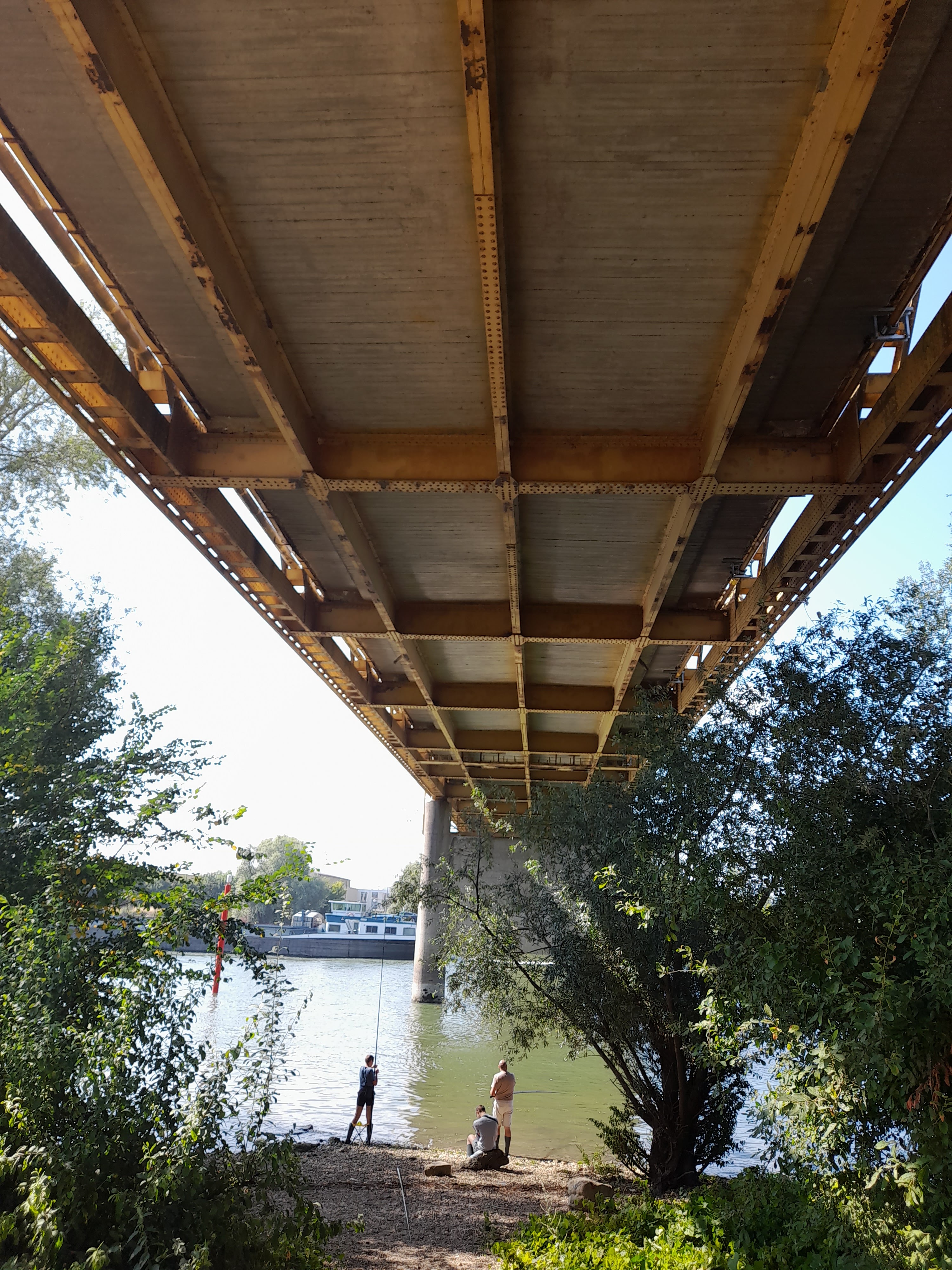 Pont reliant aubevoye a courcelle sur seine. Je m'arrête au pied de ce pont pour quelque partie de pêche en Seine.