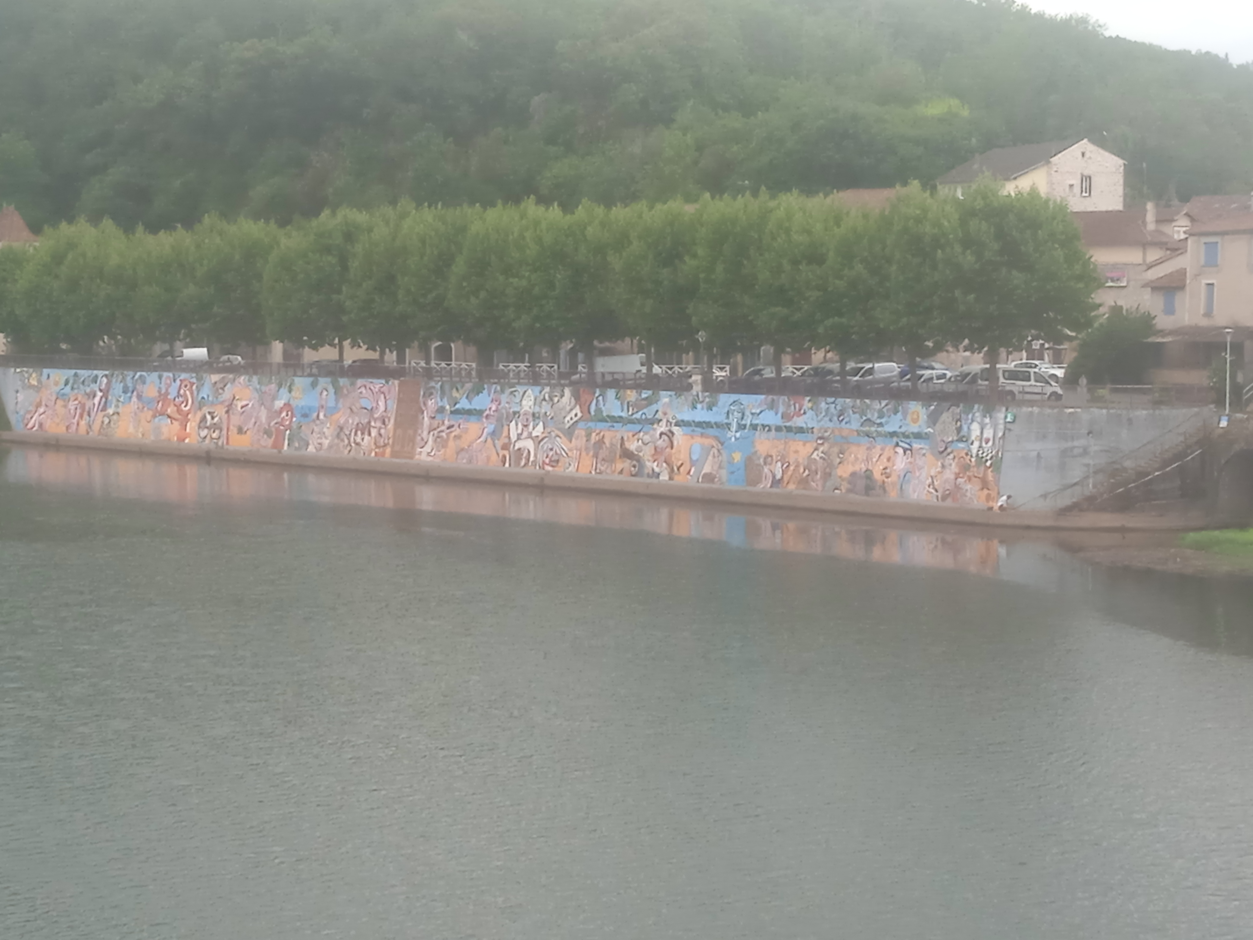 La fresque est consacrée à l'histoire et la mythologie du vin de Cahors, sympa