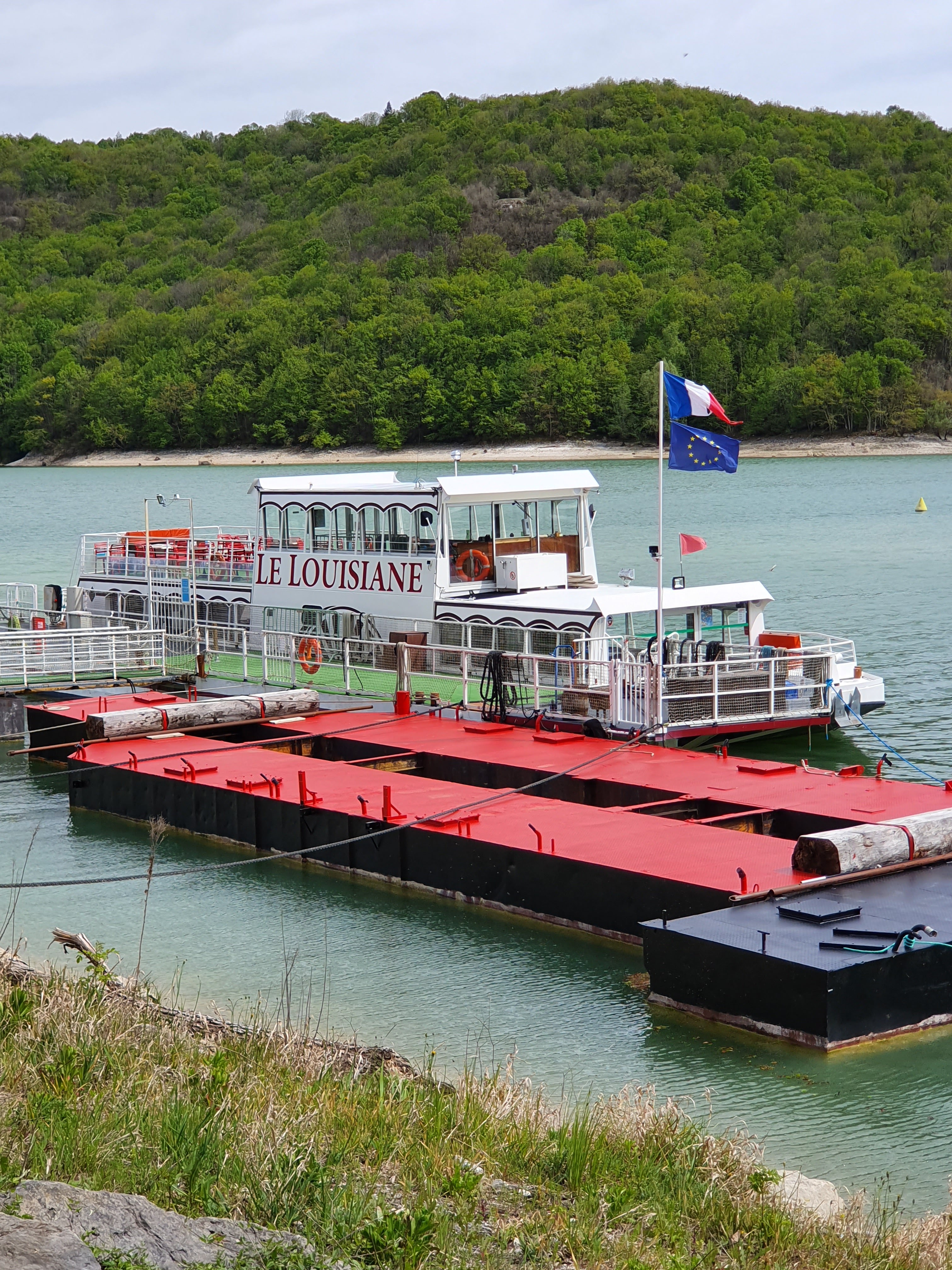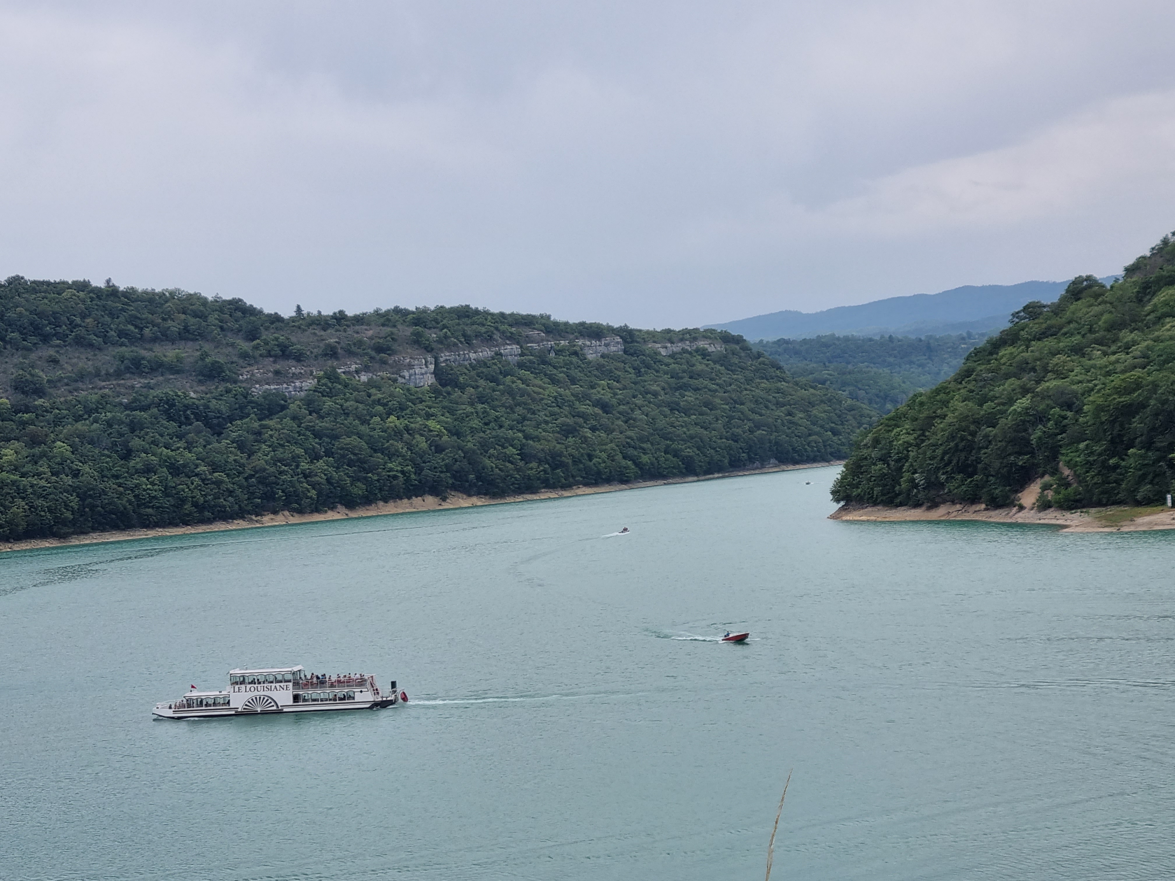 Un point de vue magnifique sur le lac de Vouglans et son fameux bateau : le Louisiane. Arrêt obligatoire !