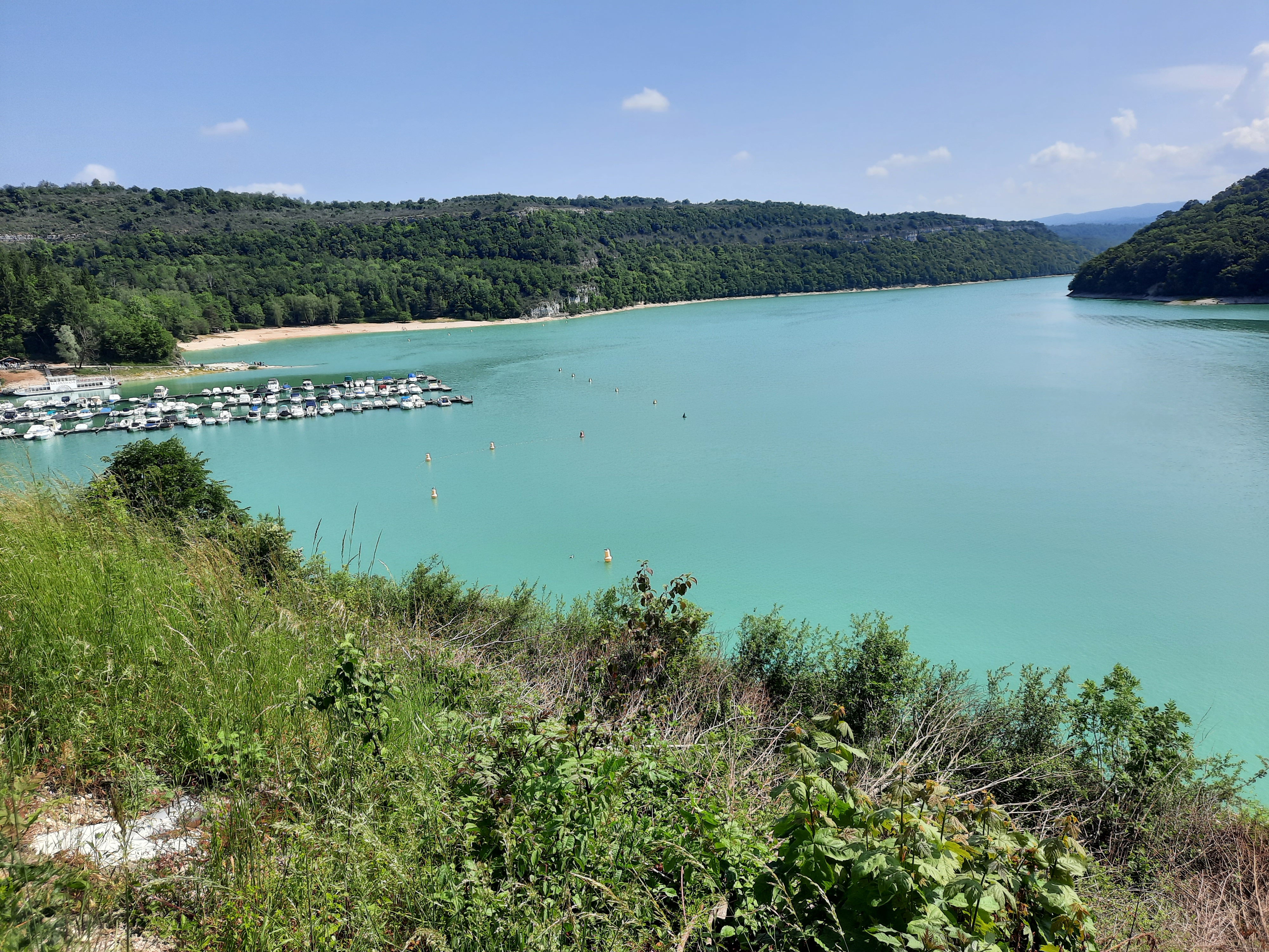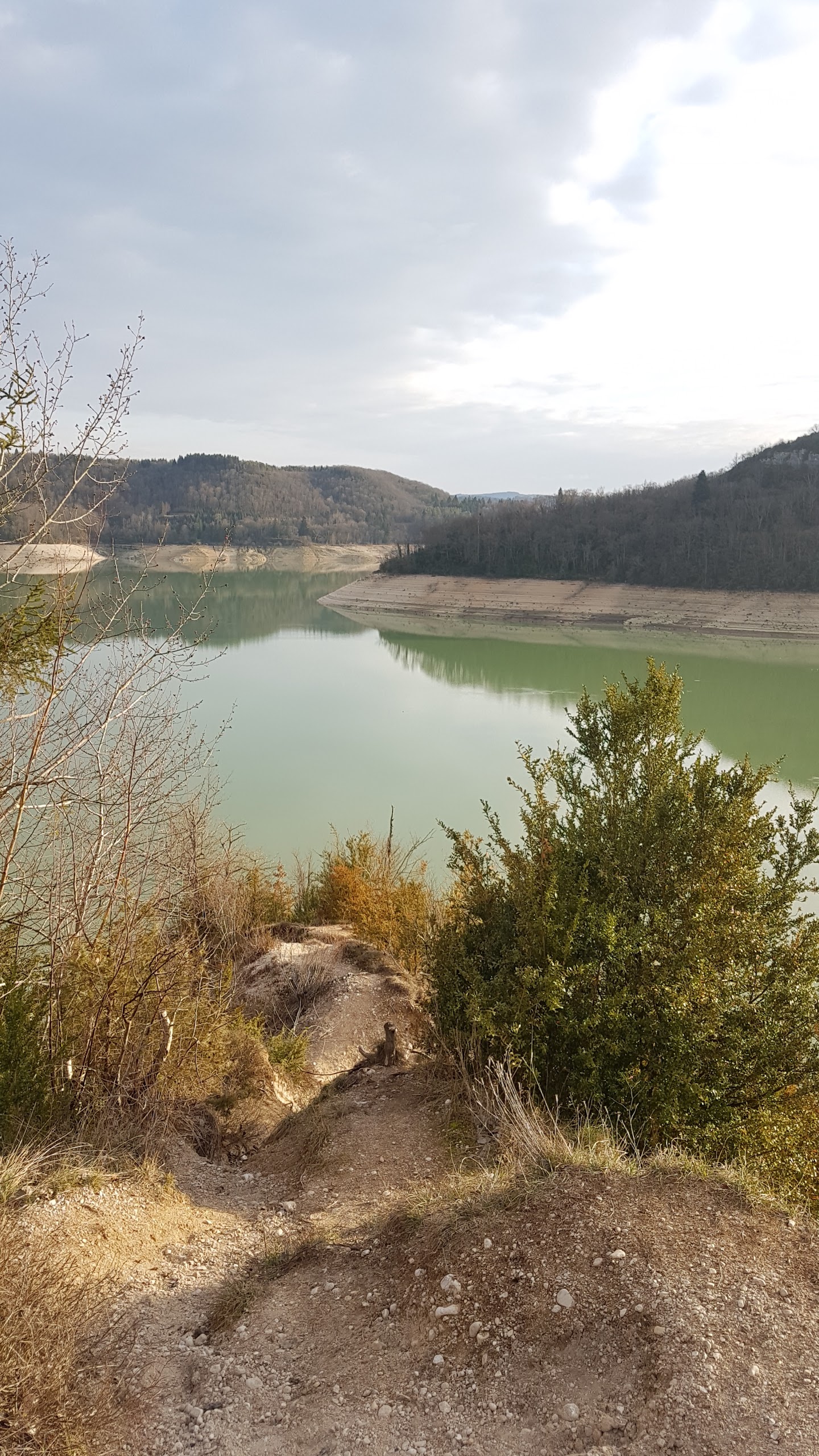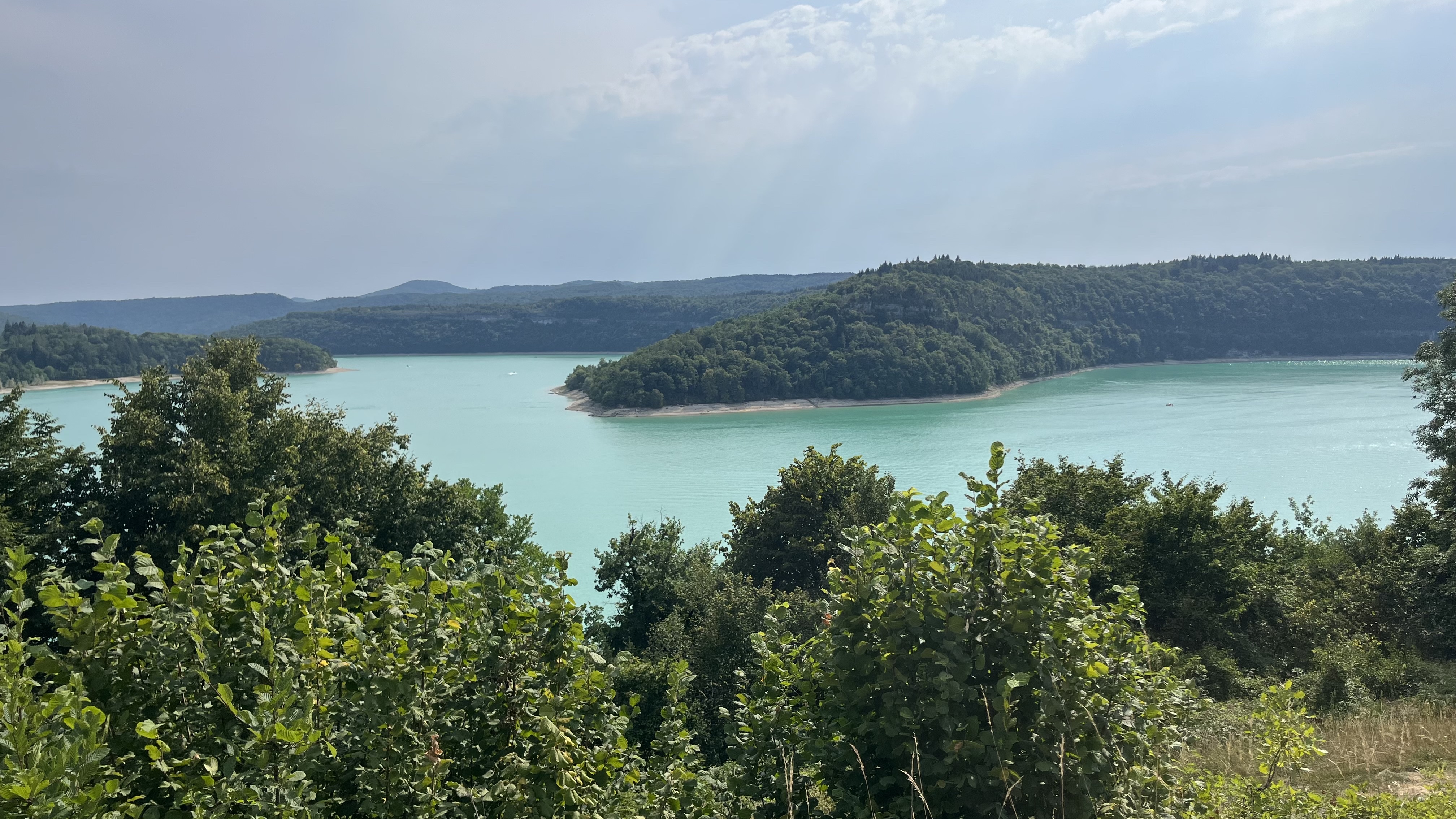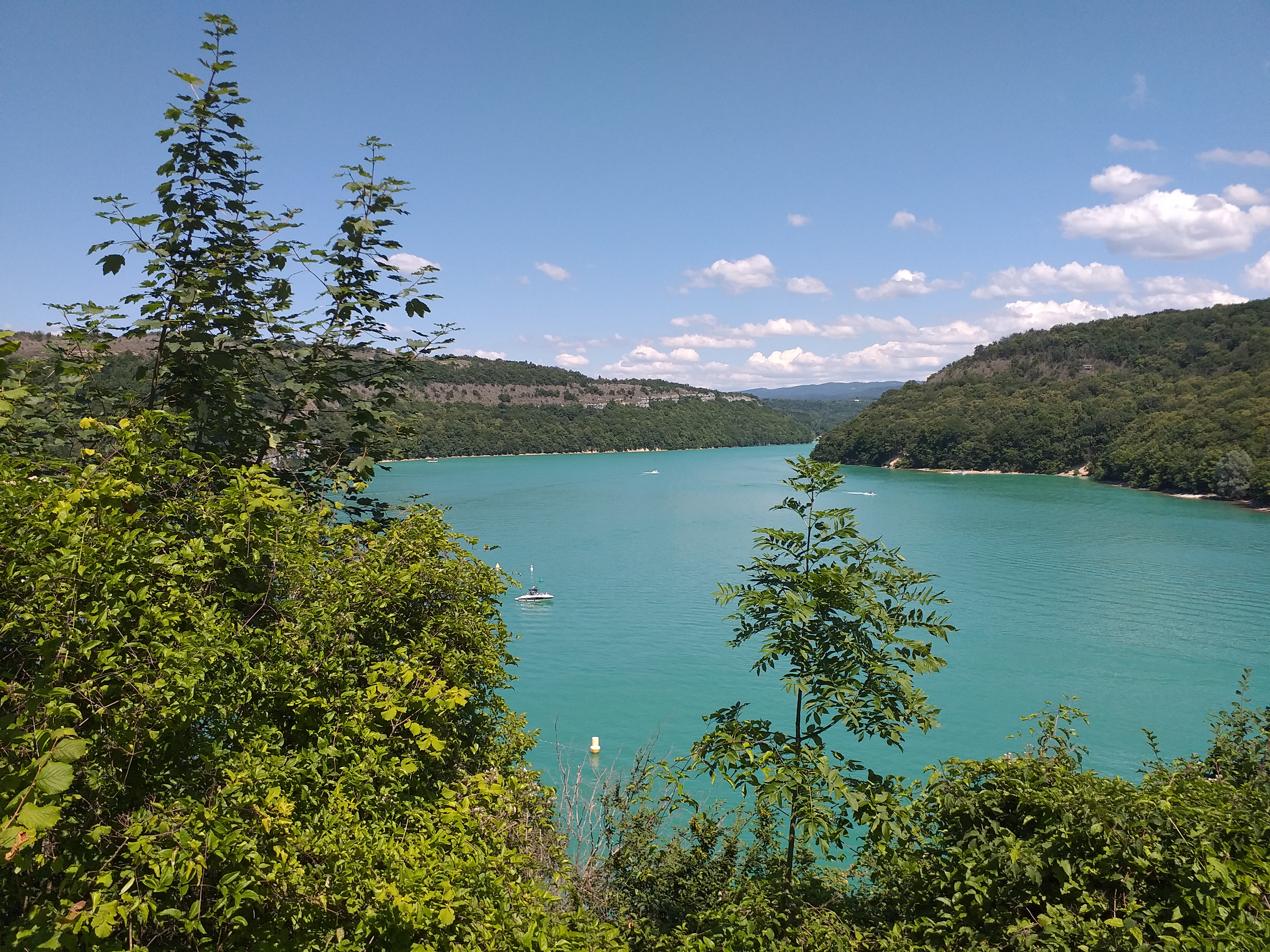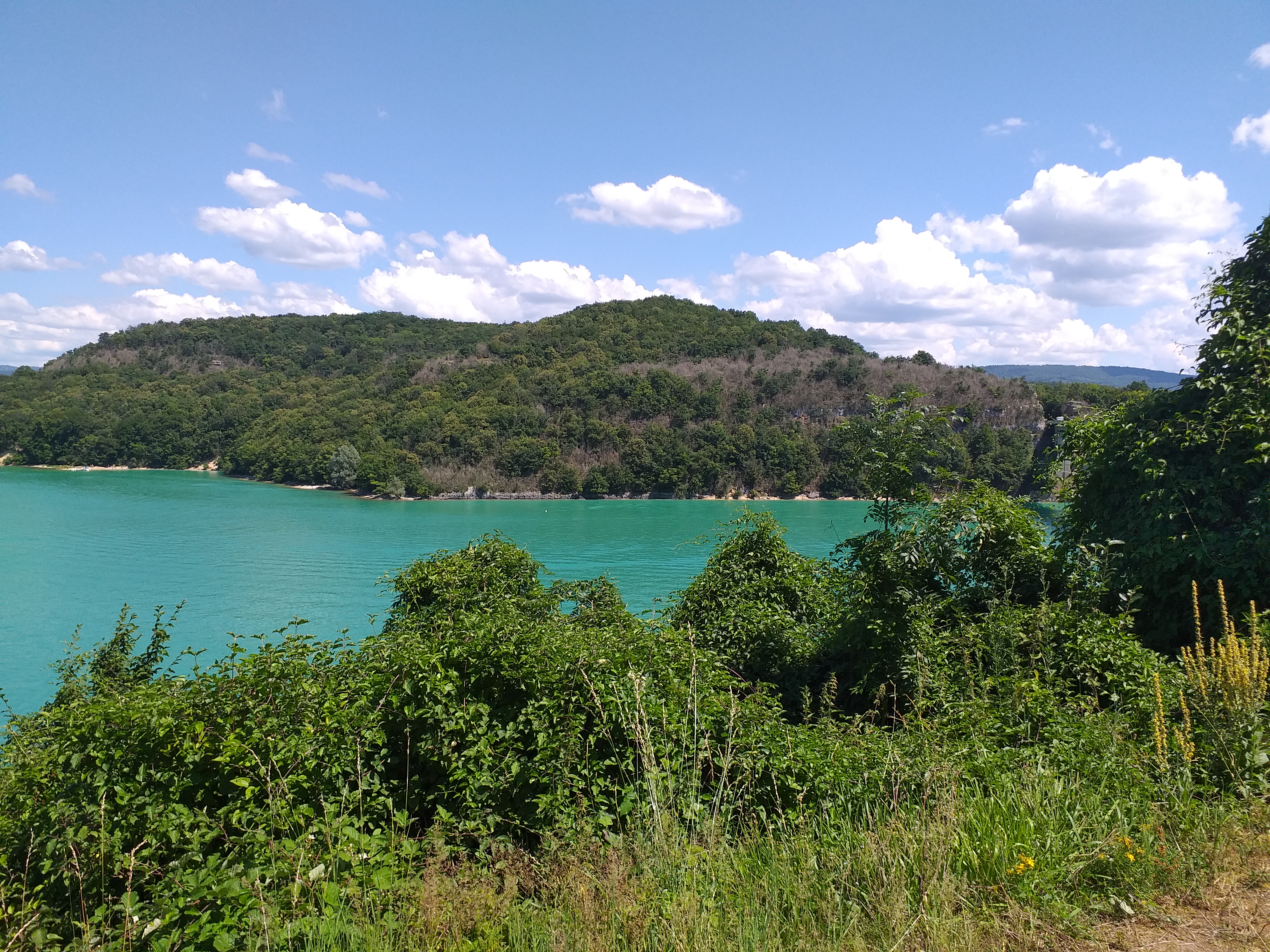 Balade faite par temps orageux et pourtant très belle vue sur une partie du lac du Vouglans. Sous le soleil cela doit être splendide!