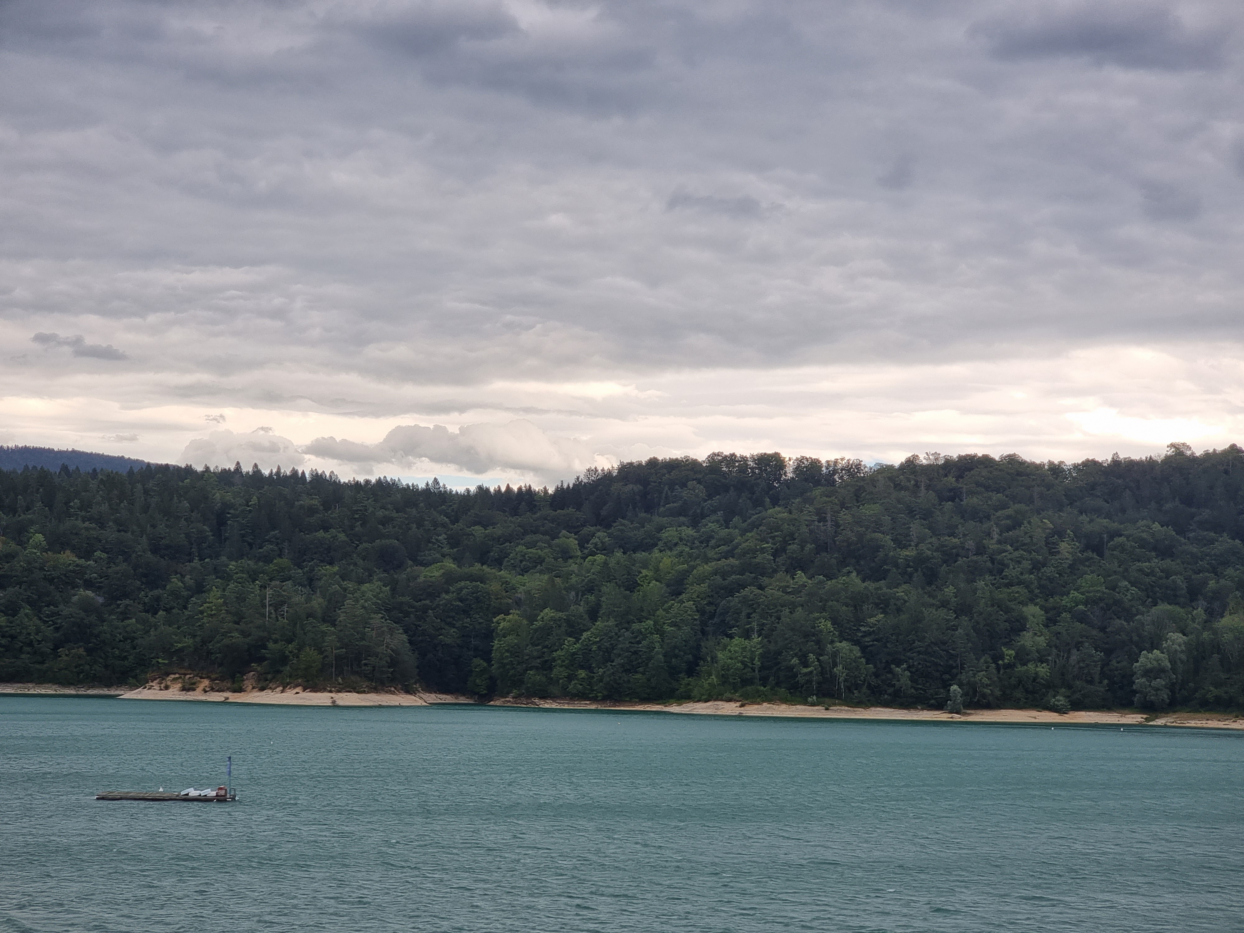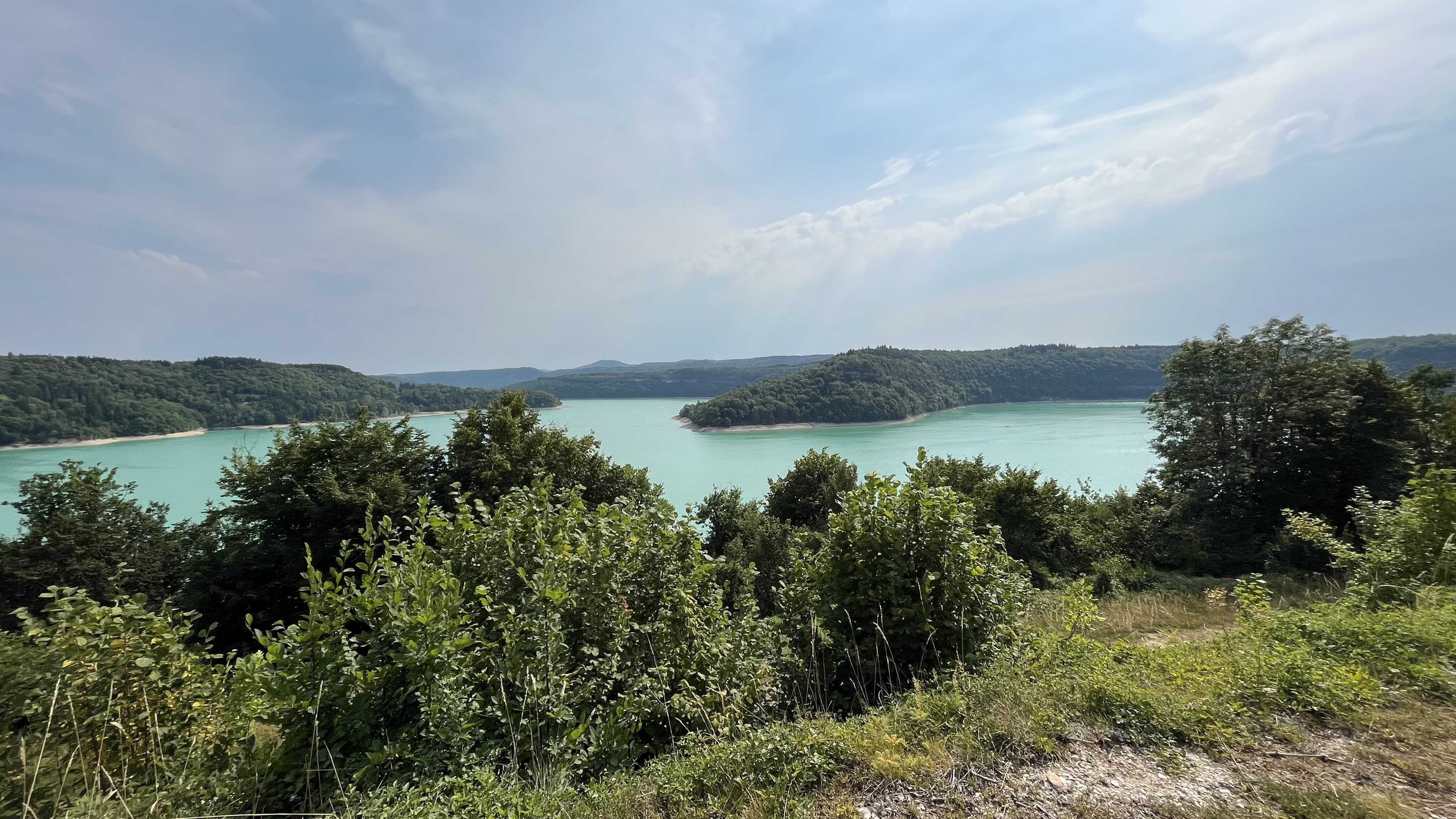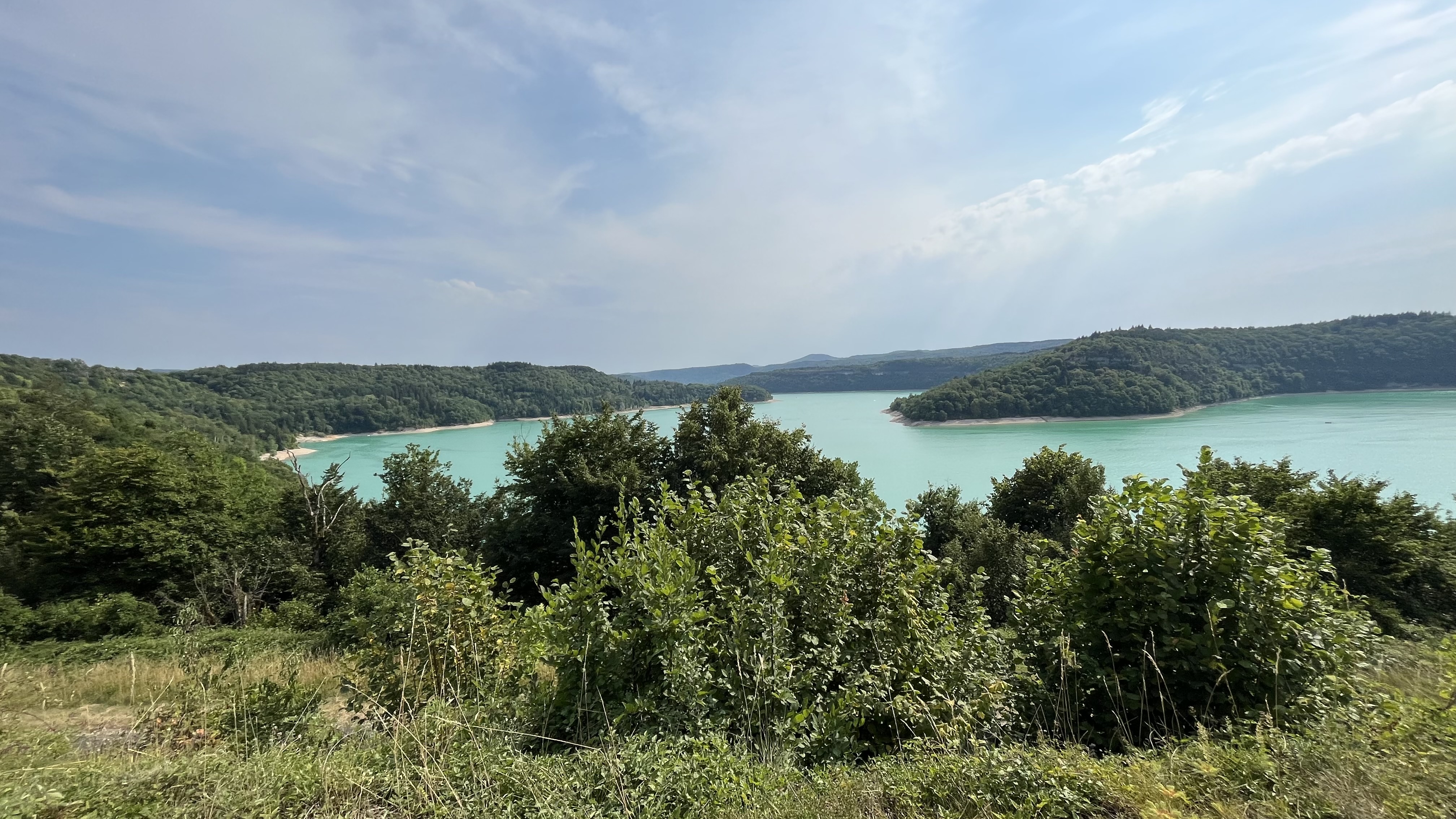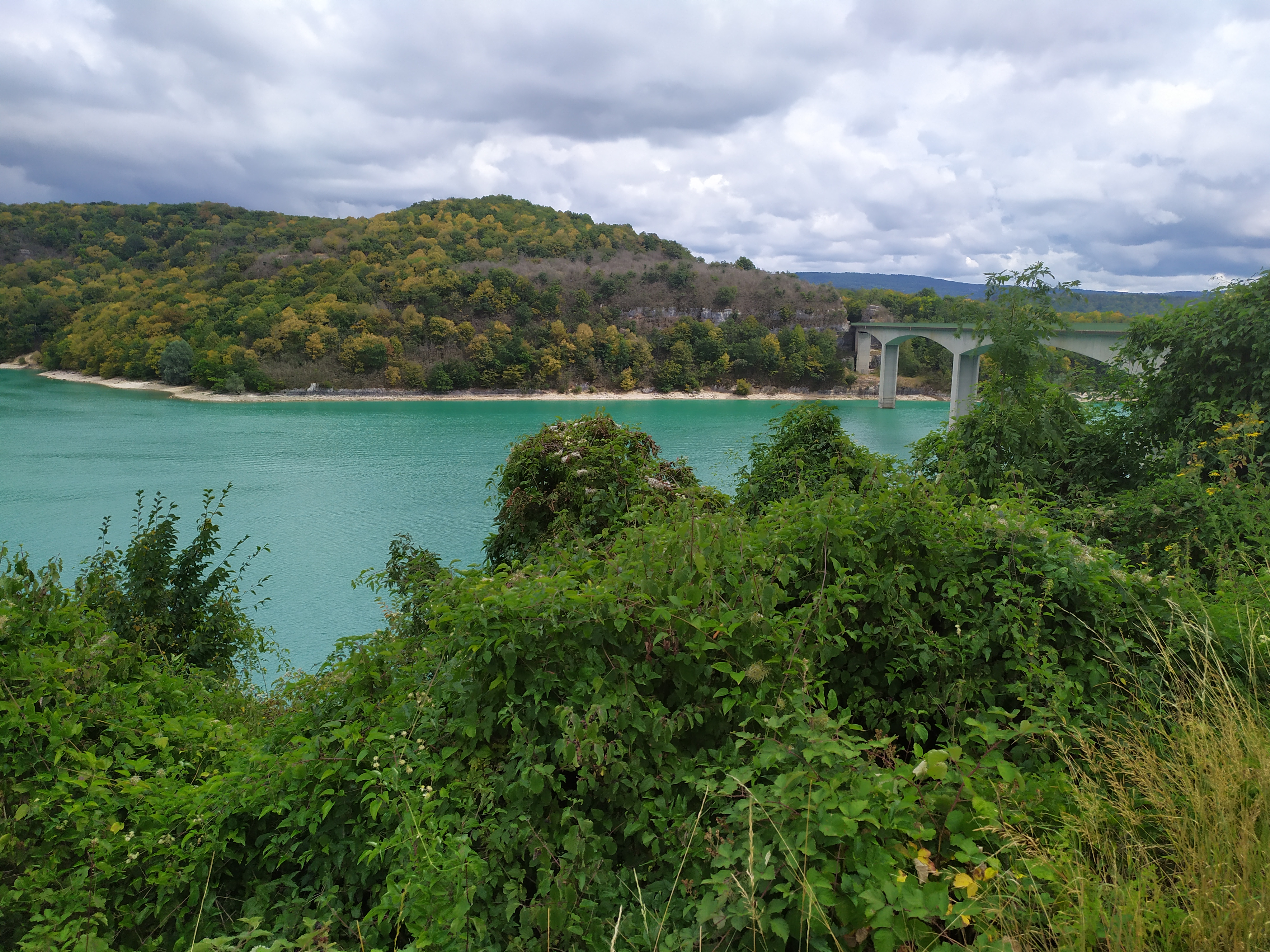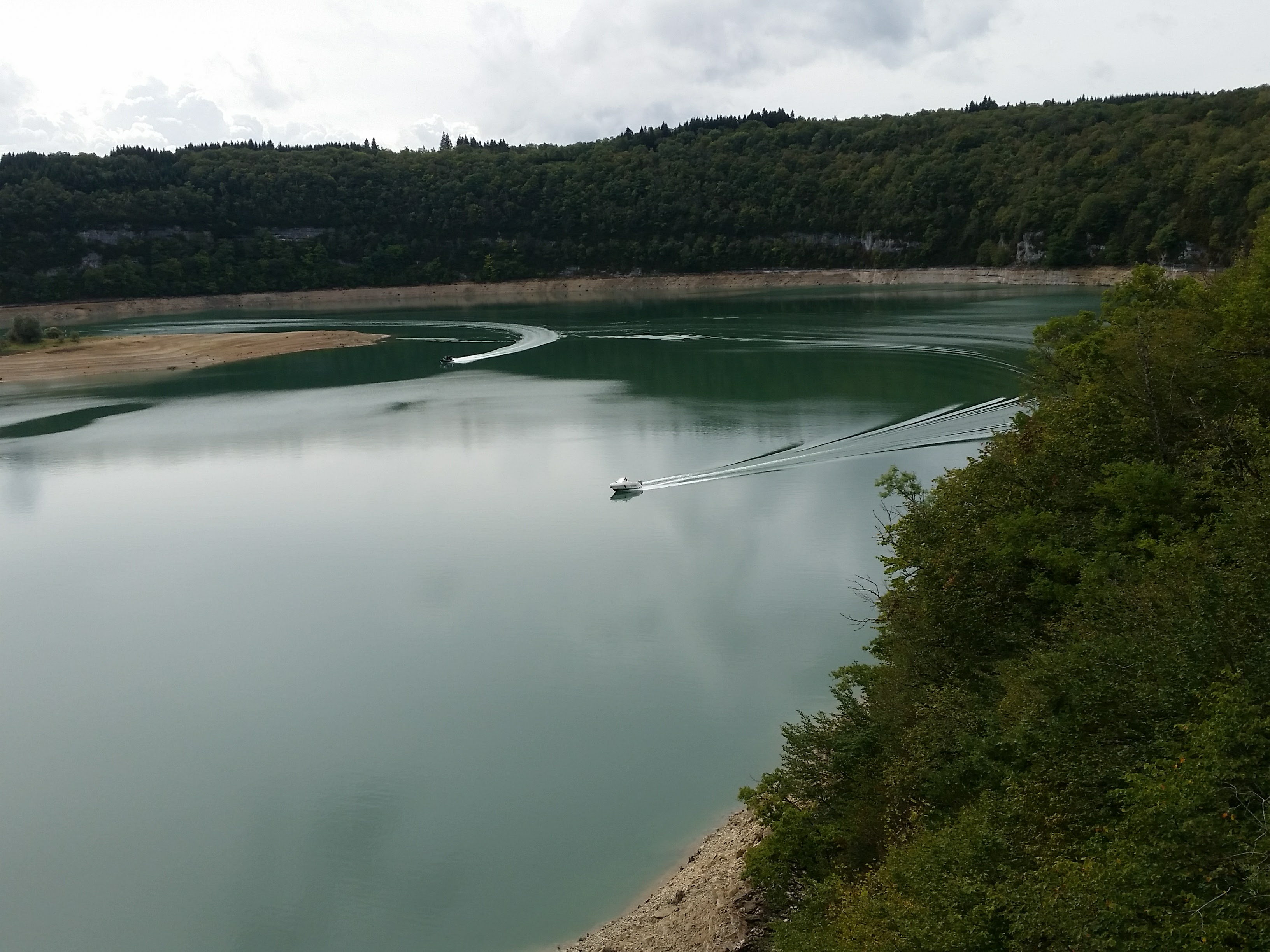 Balade faite par temps orageux et pourtant très belle vue sur une partie du lac du Vouglans. Sous le soleil cela doit être splendide!