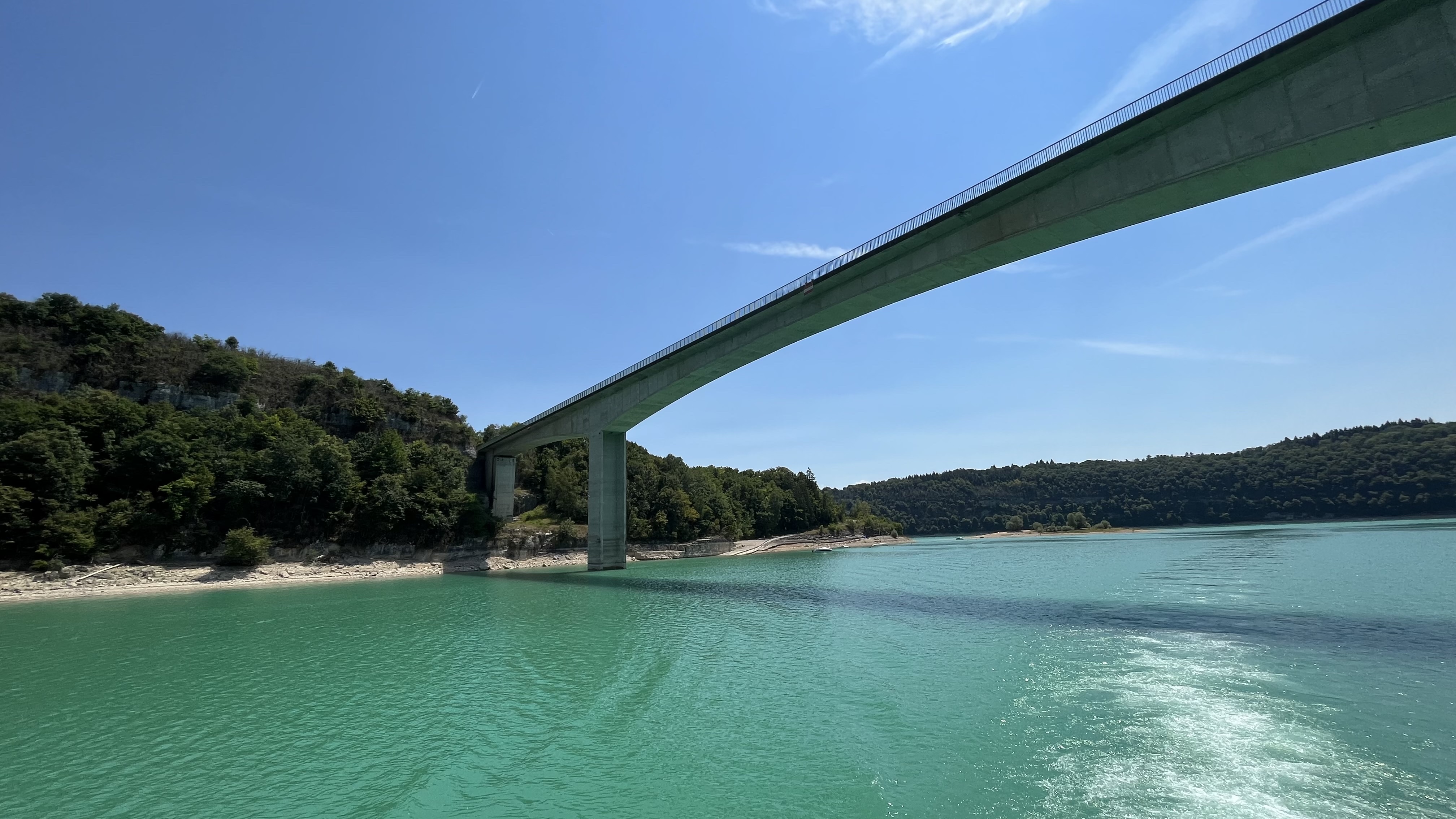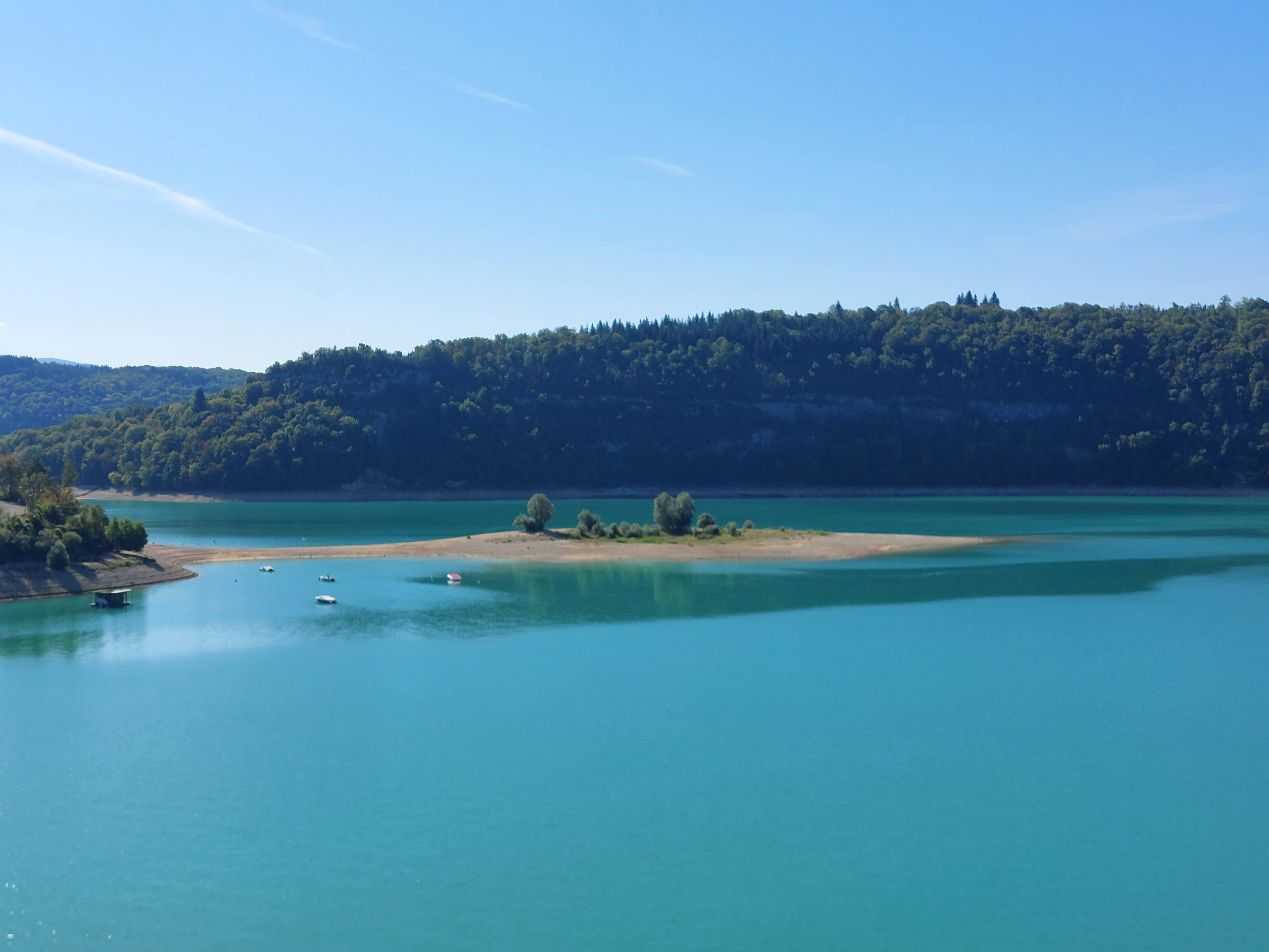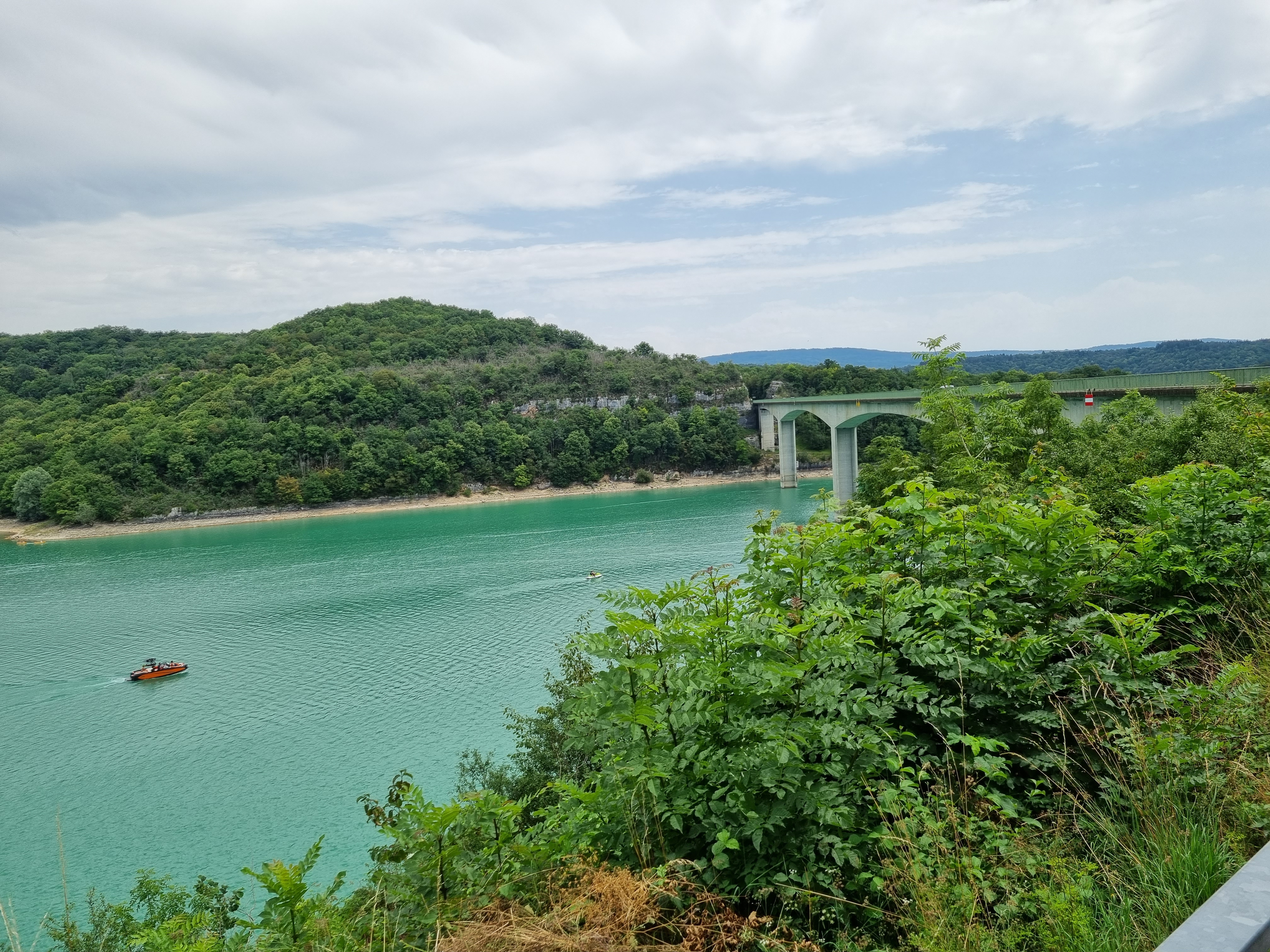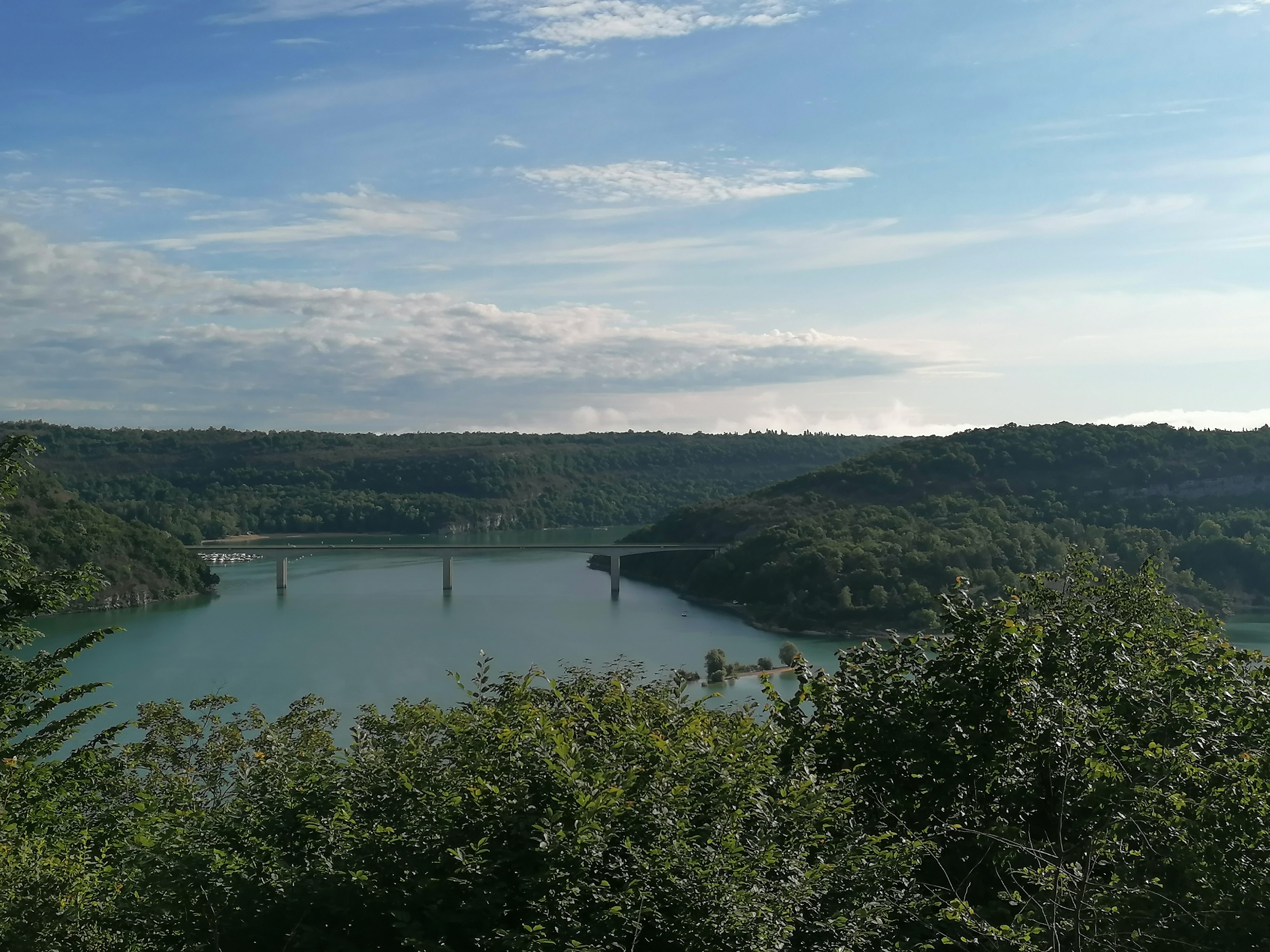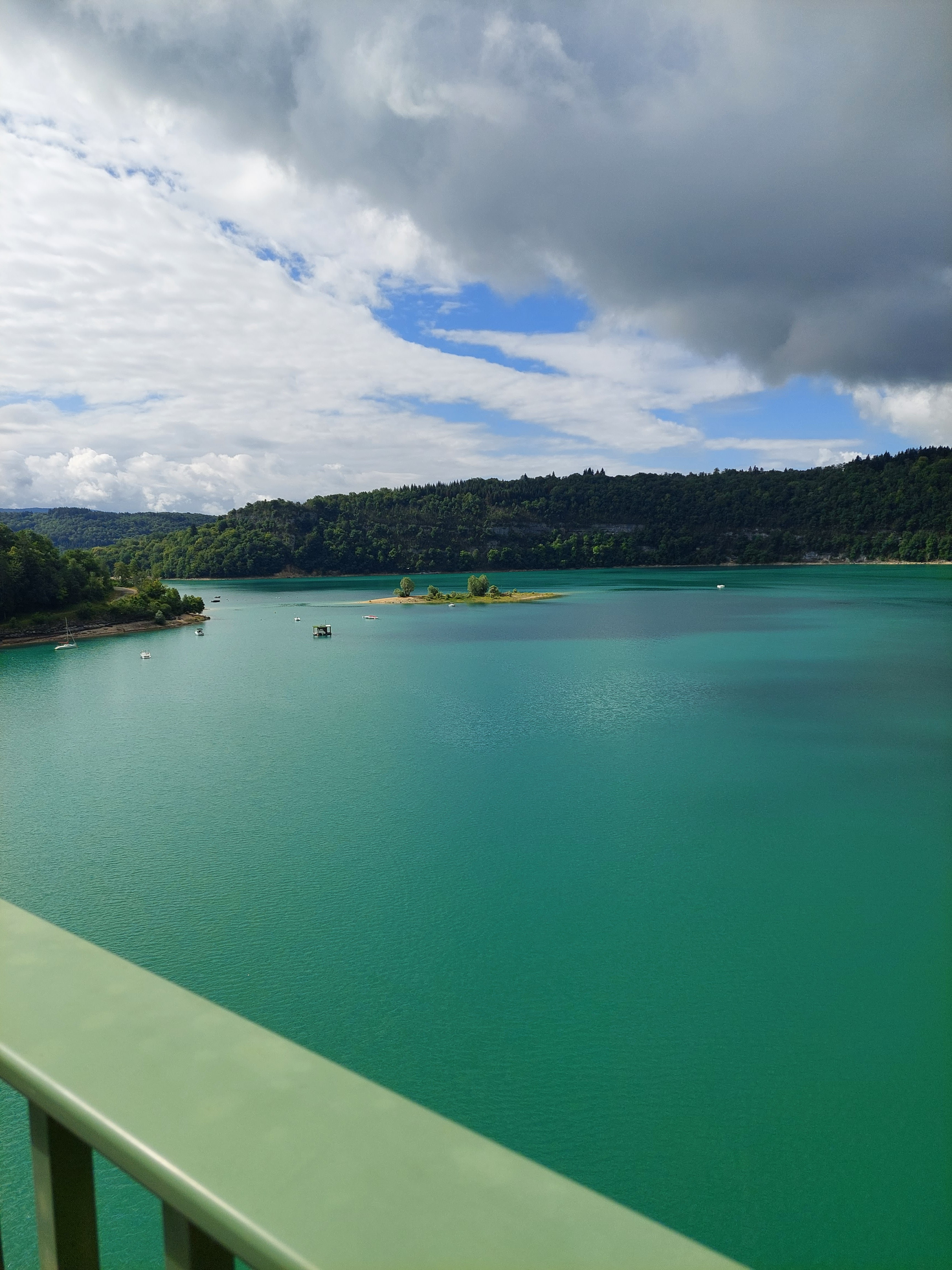 Pont où nous traversons le superbe lac de vouglans avec une belle vue sur l'île