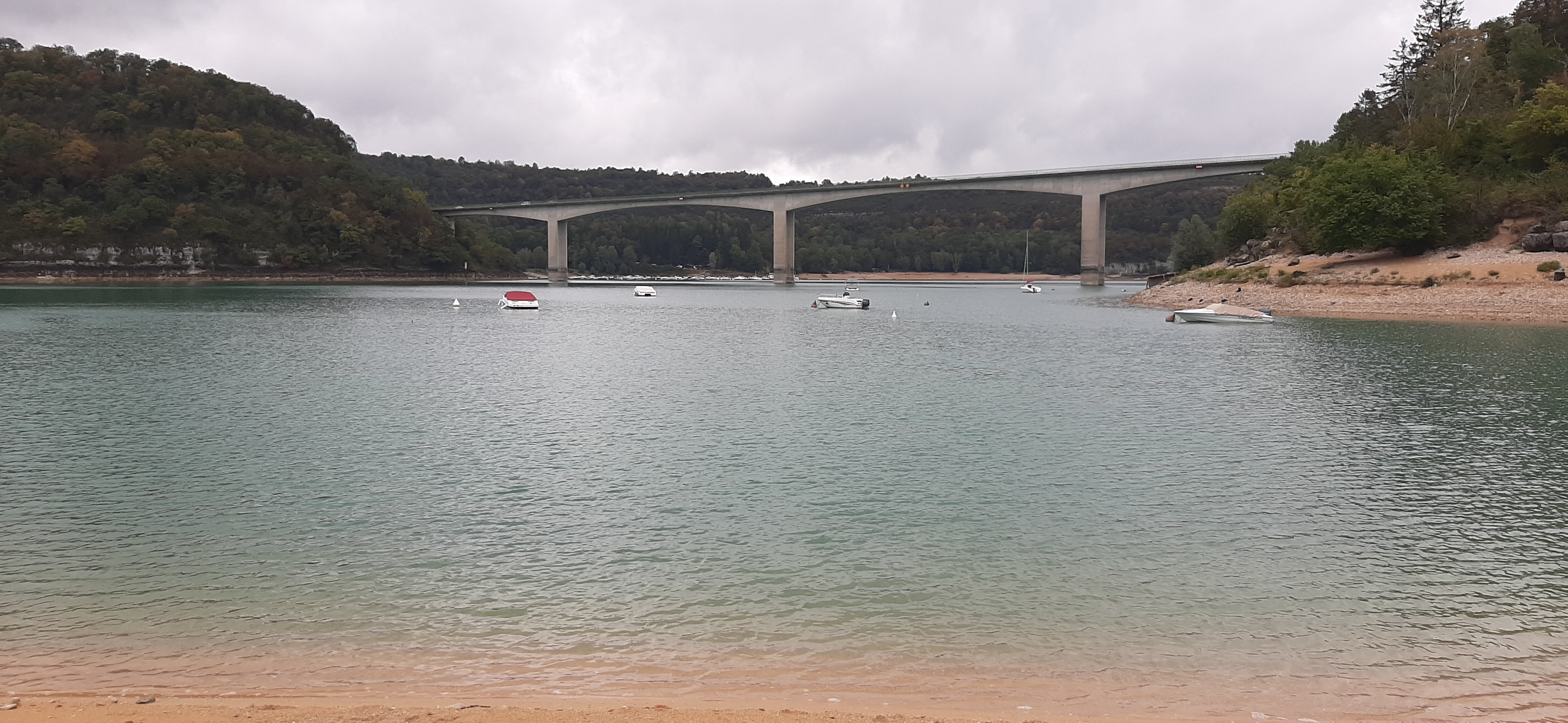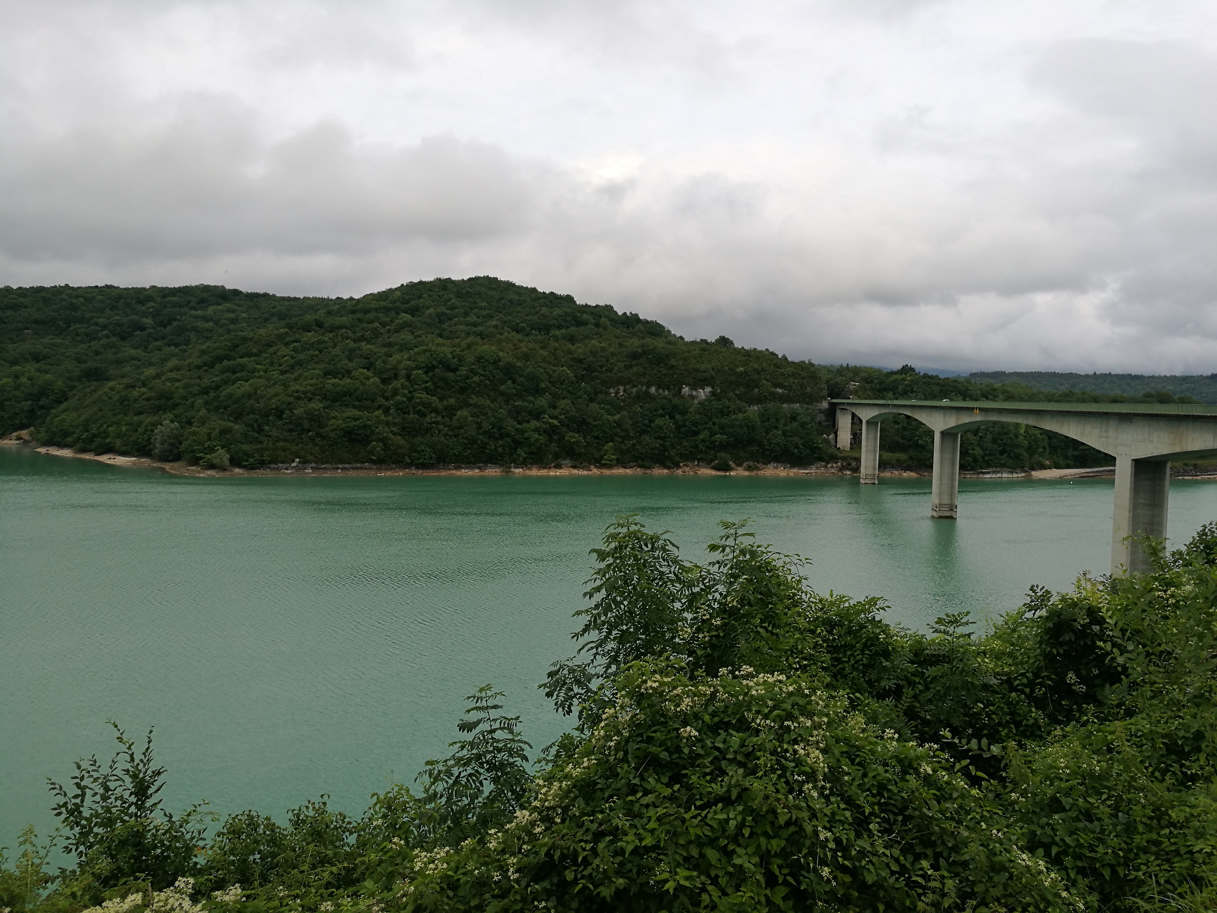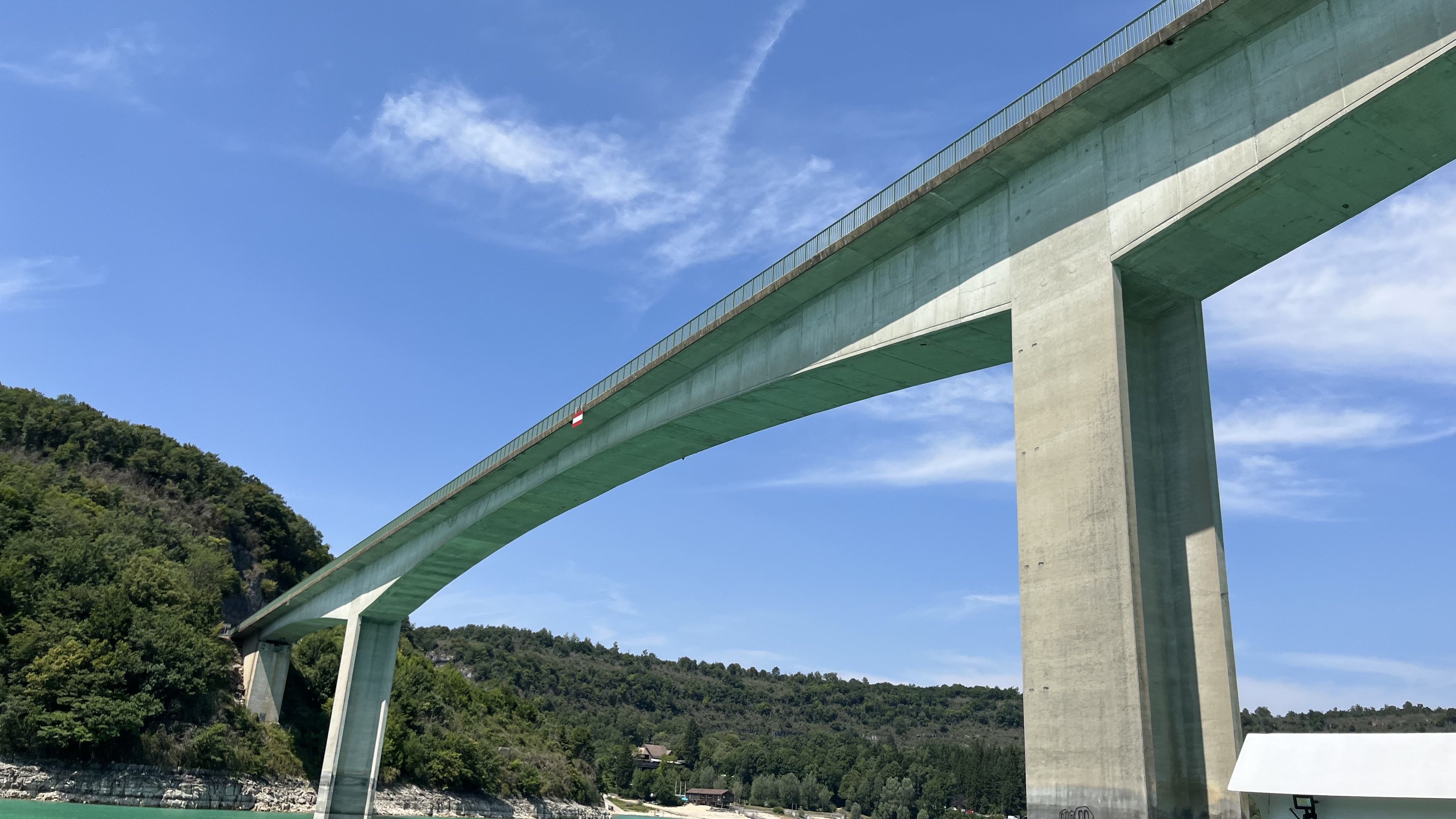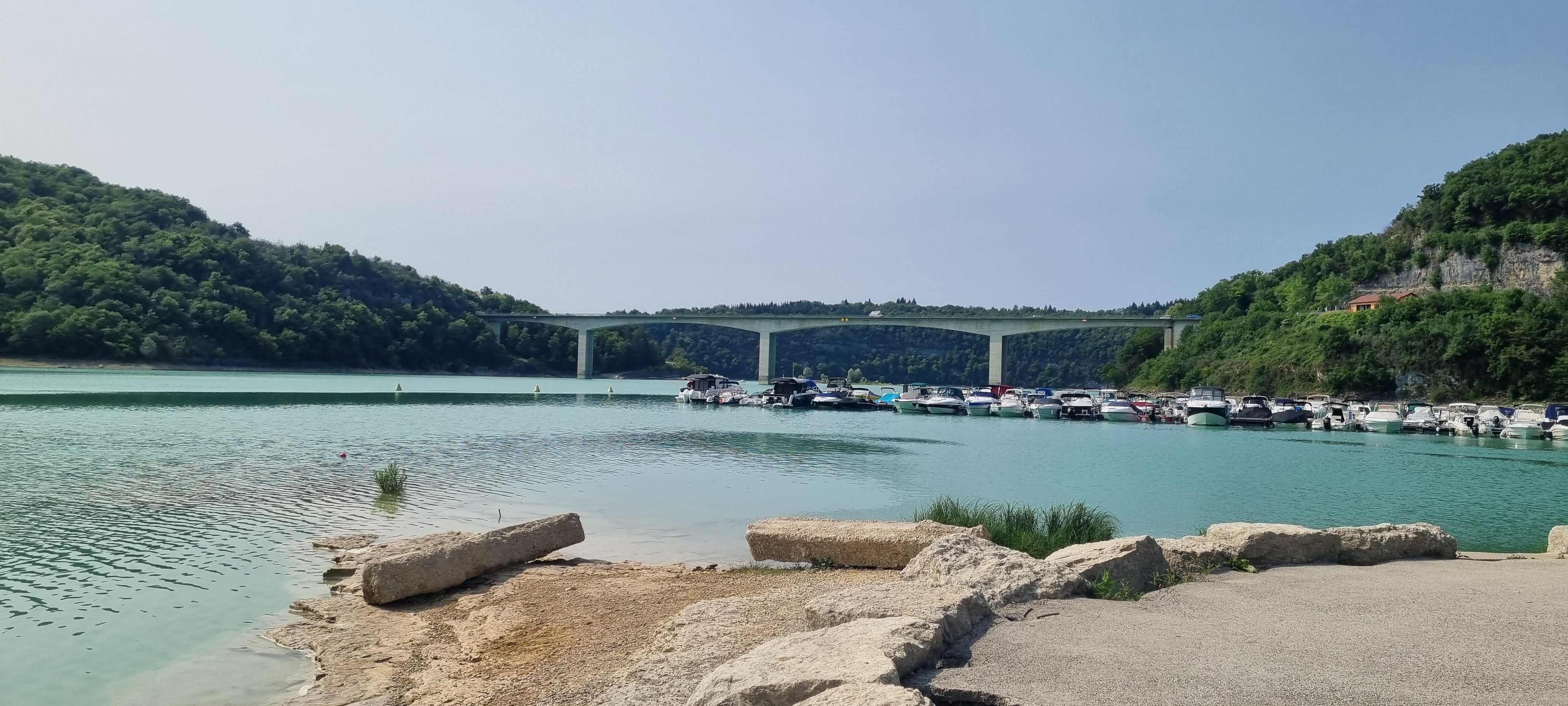 Pont où nous traversons le superbe lac de vouglans avec une belle vue sur l'île