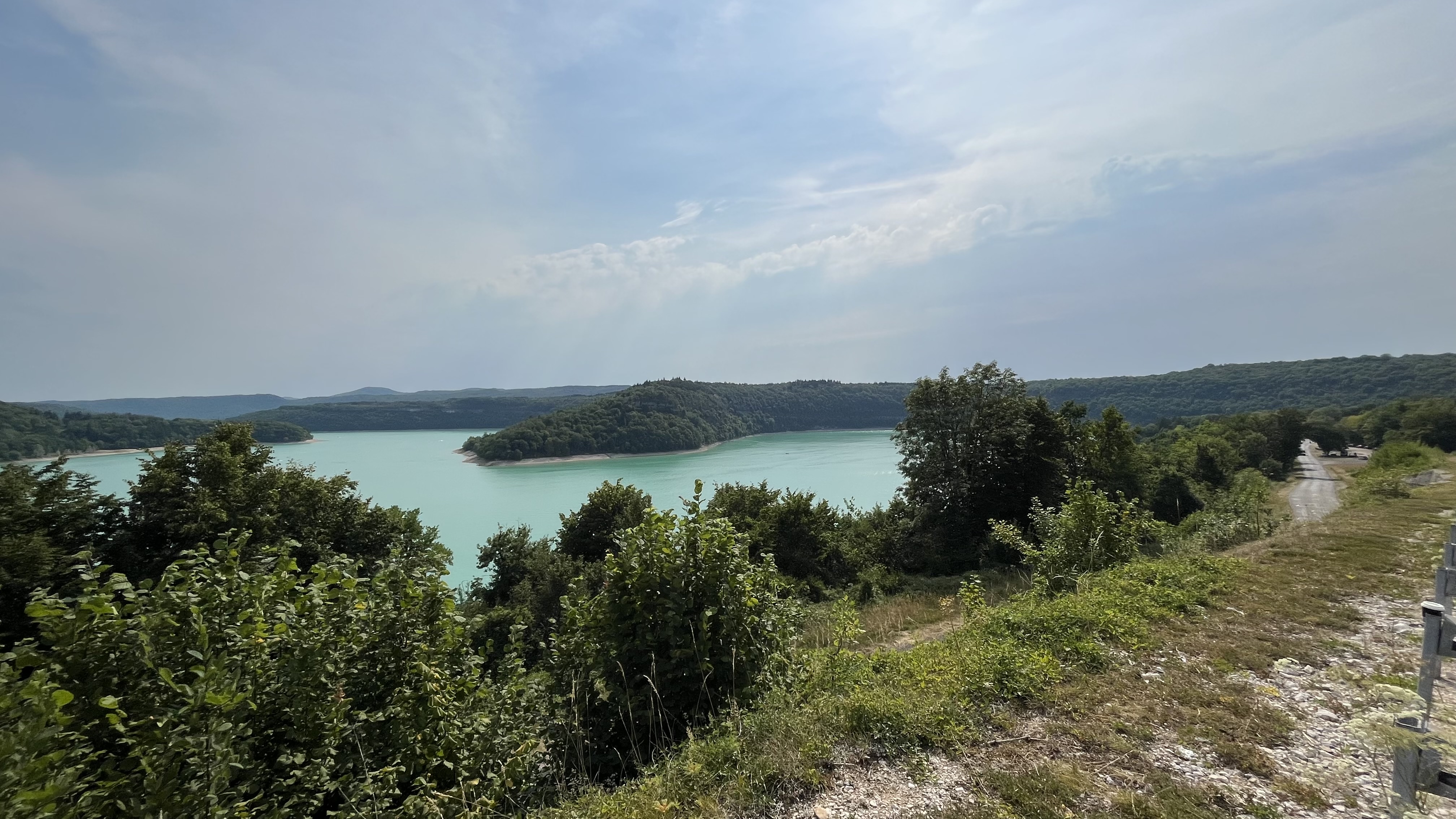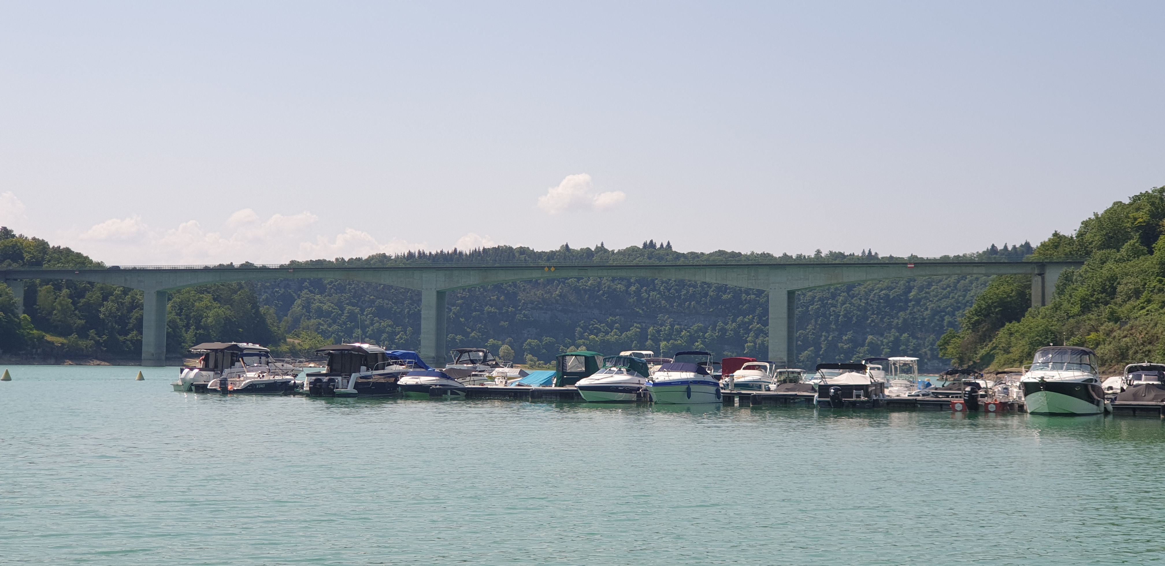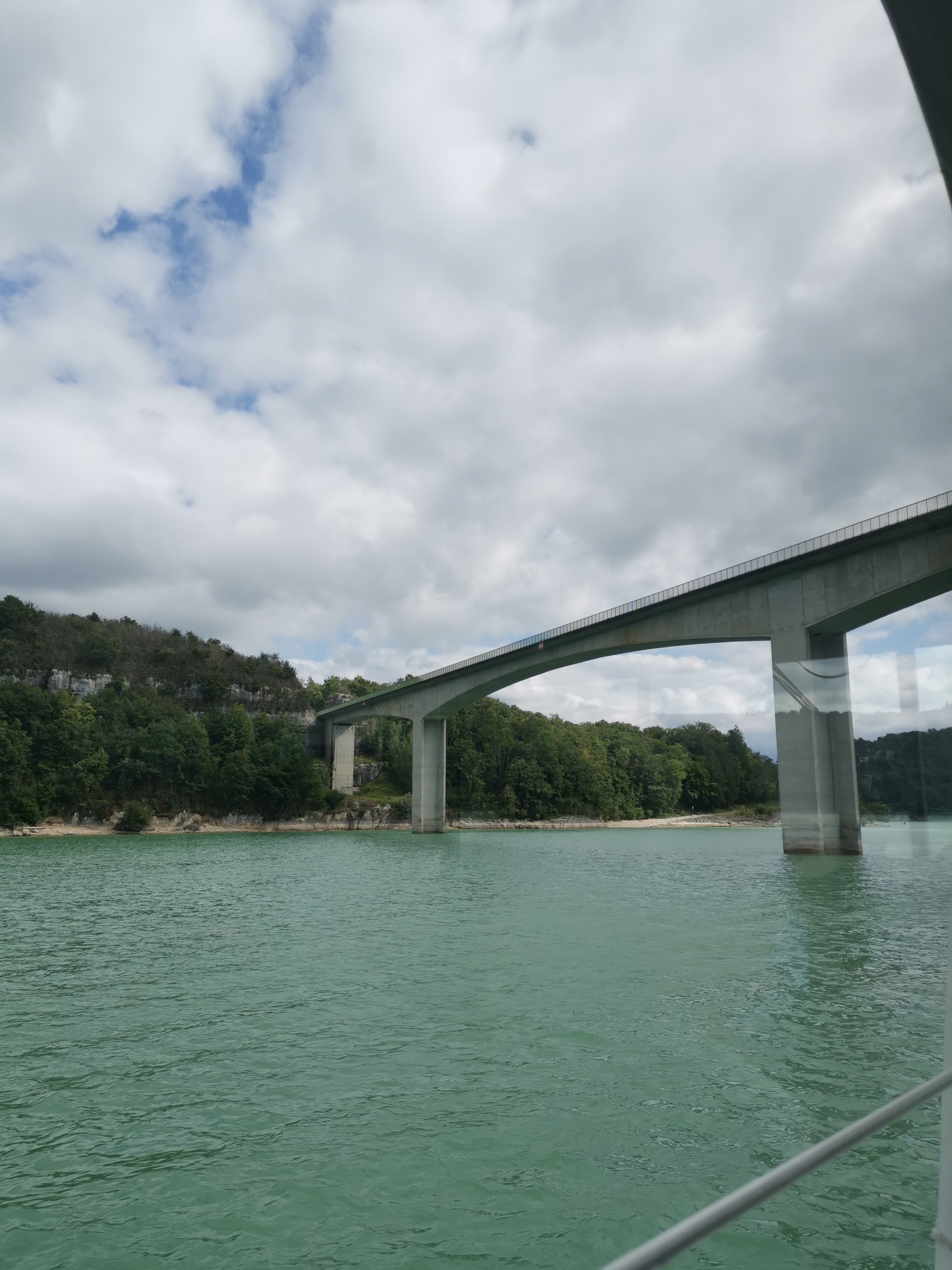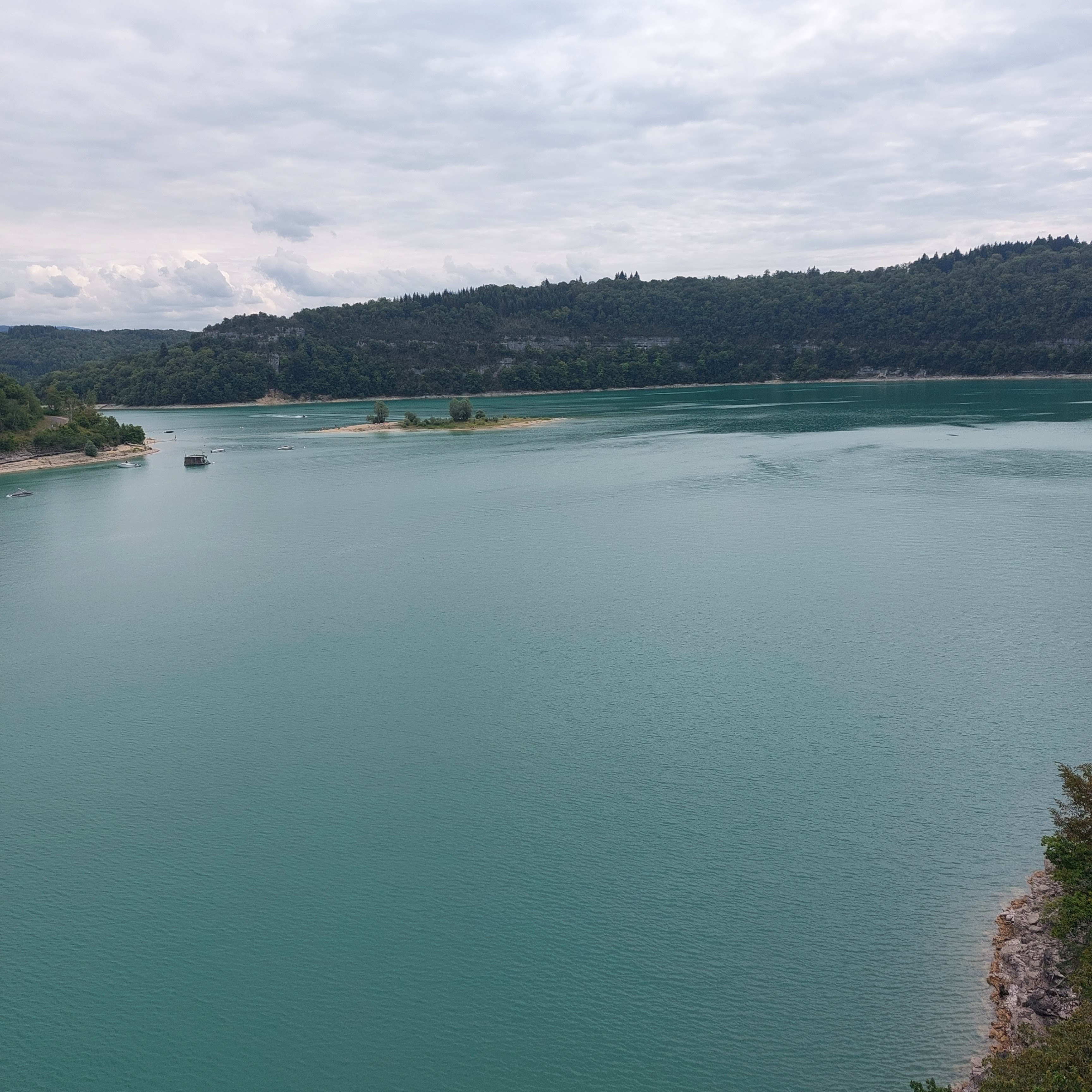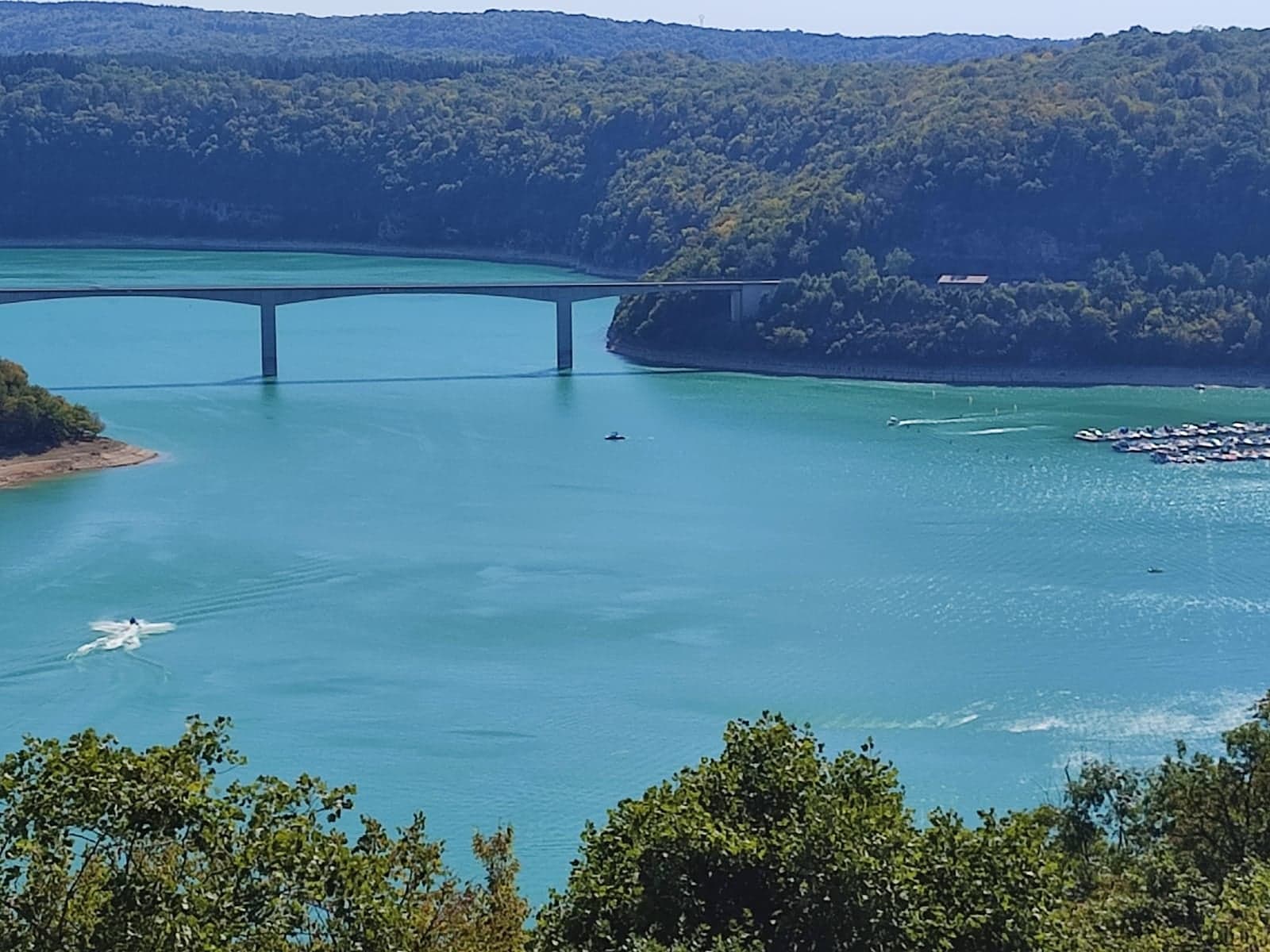 Pont où nous traversons le superbe lac de vouglans avec une belle vue sur l'île