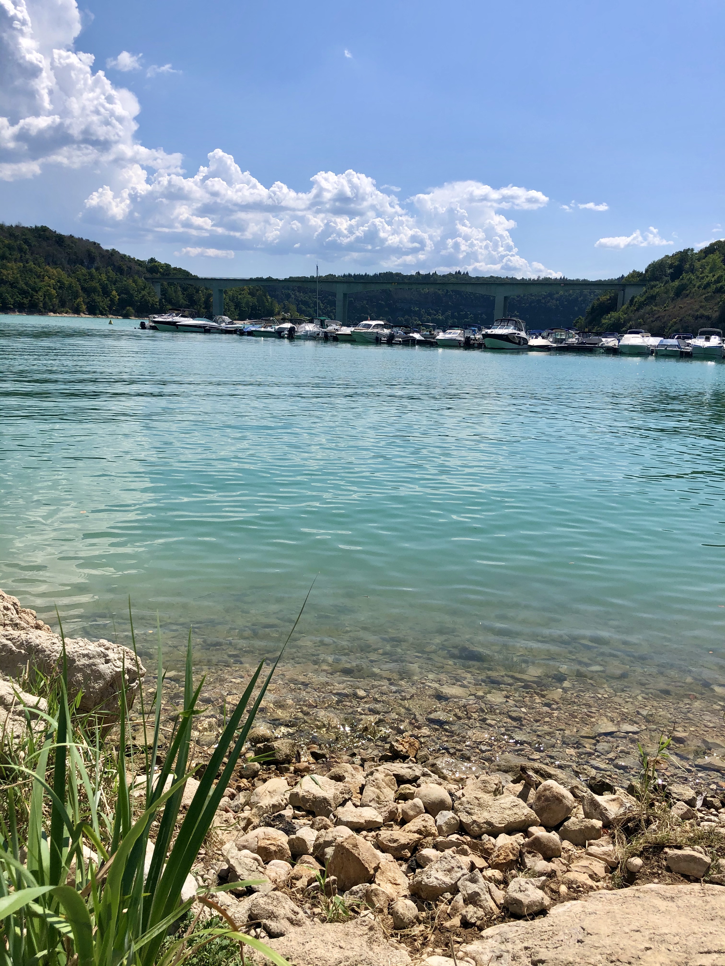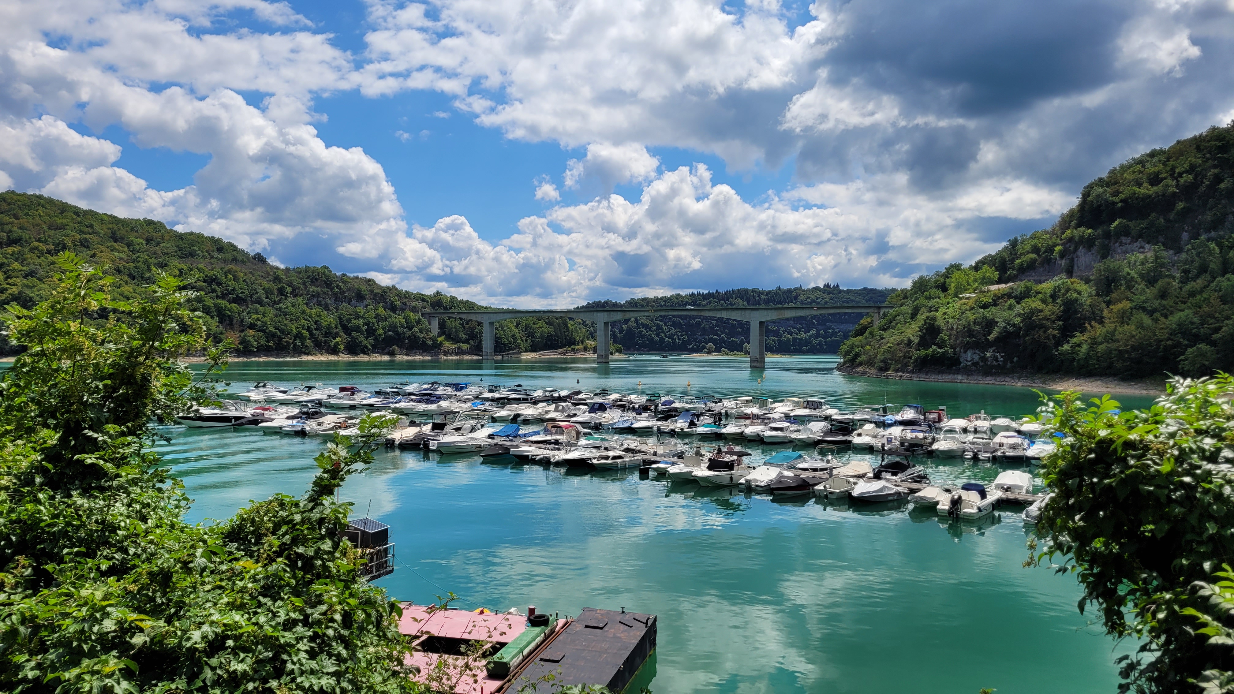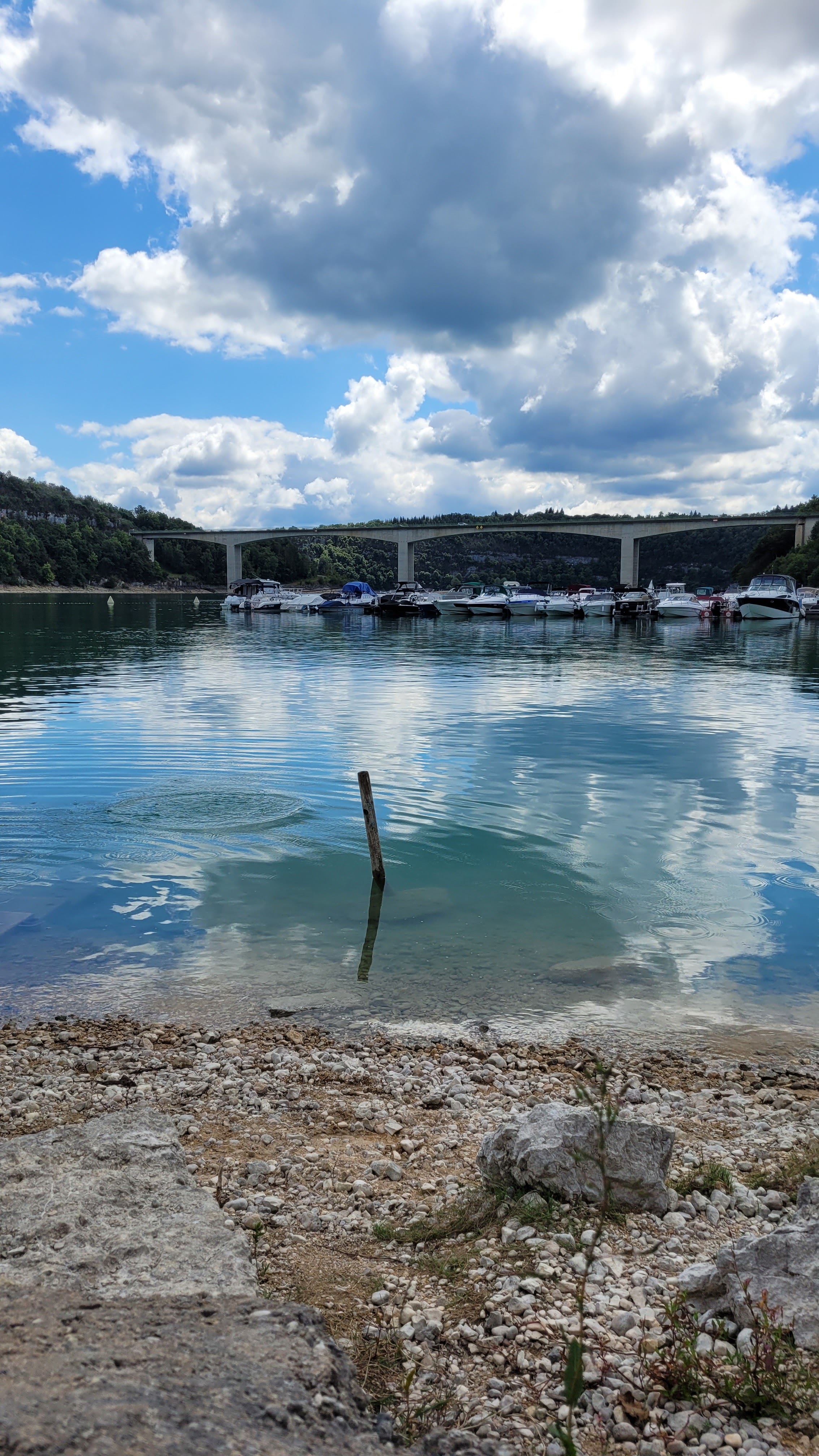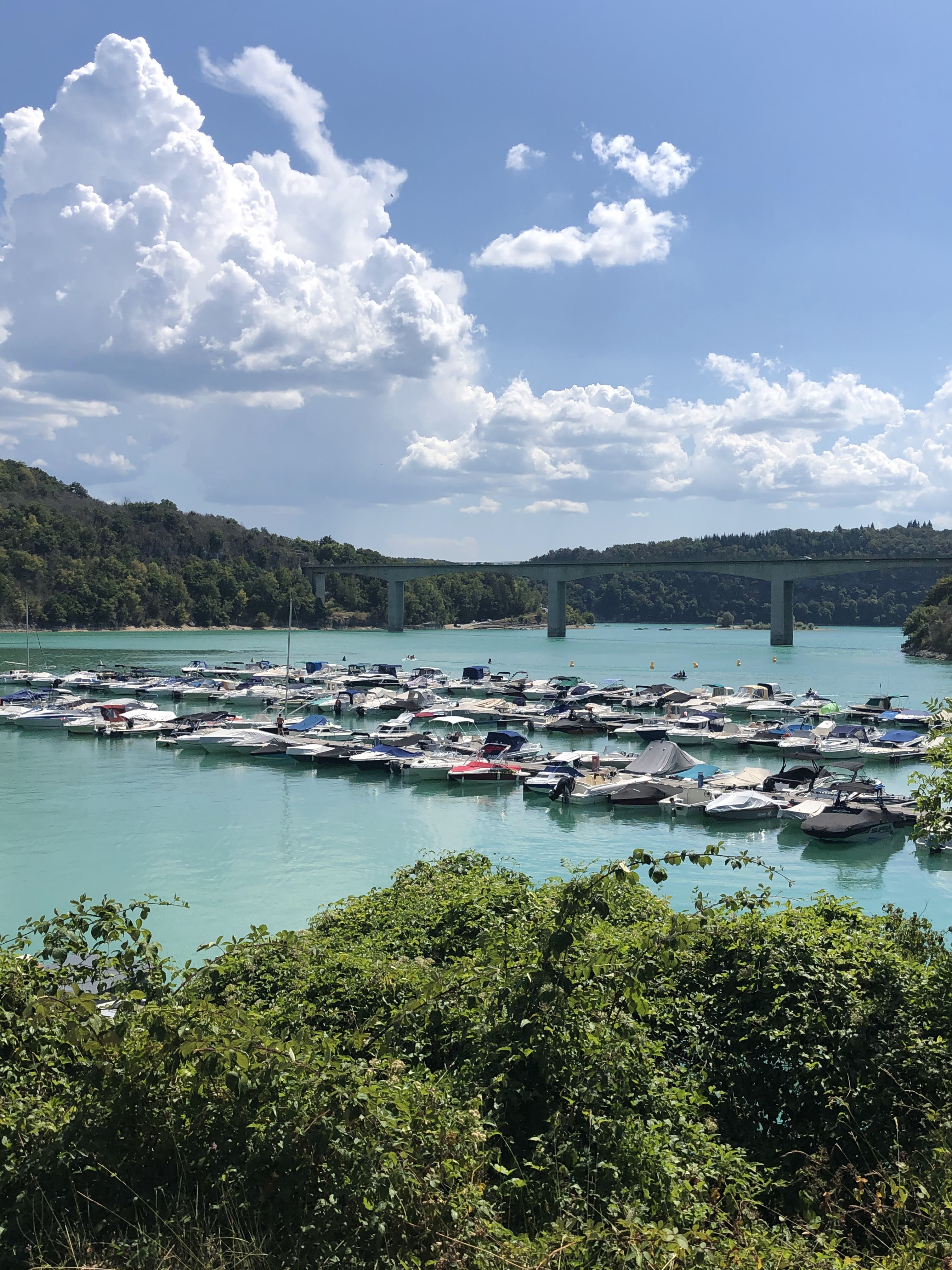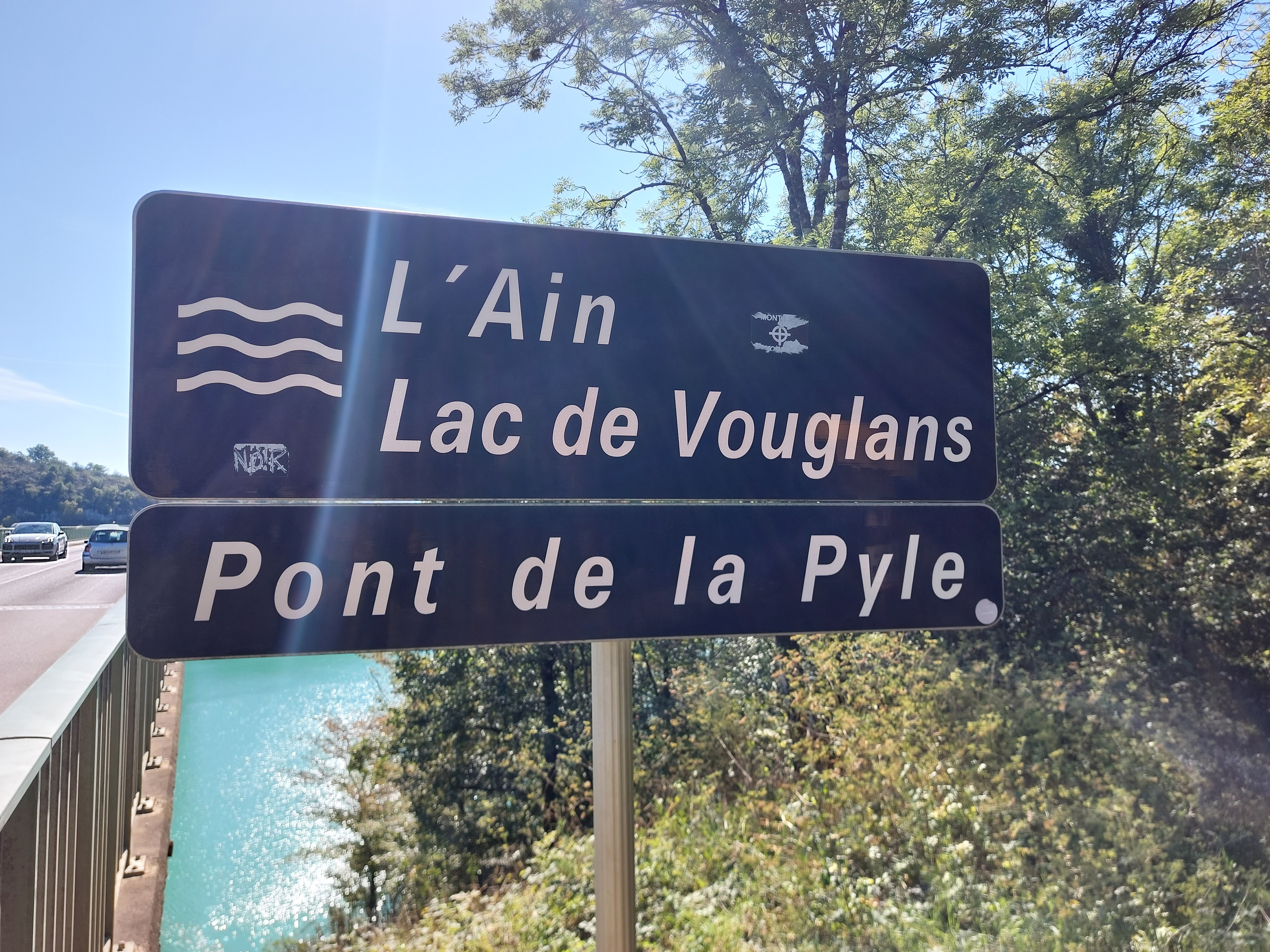 Pont où nous traversons le superbe lac de vouglans avec une belle vue sur l'île