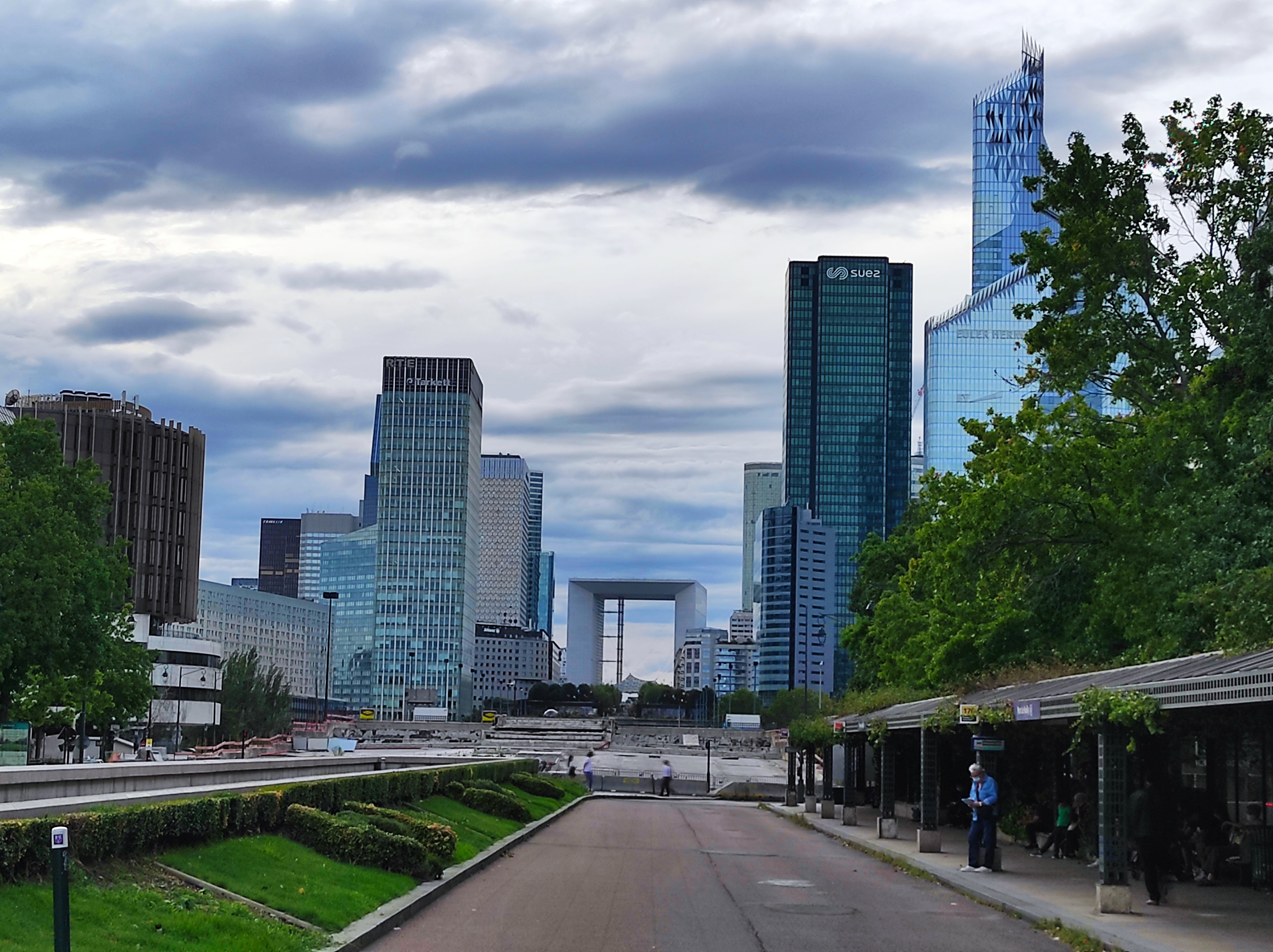 Parc avec vue sur la défense.