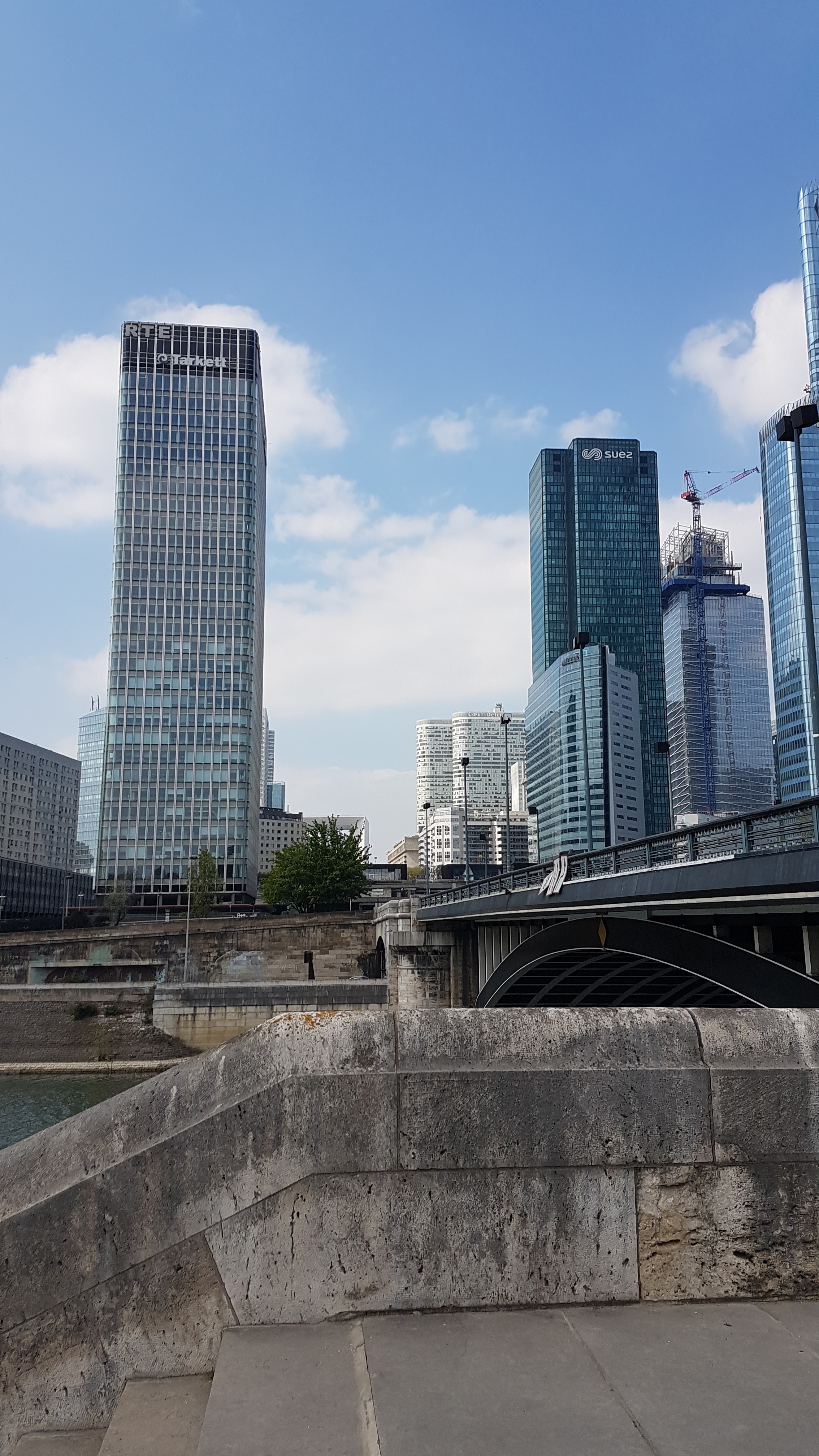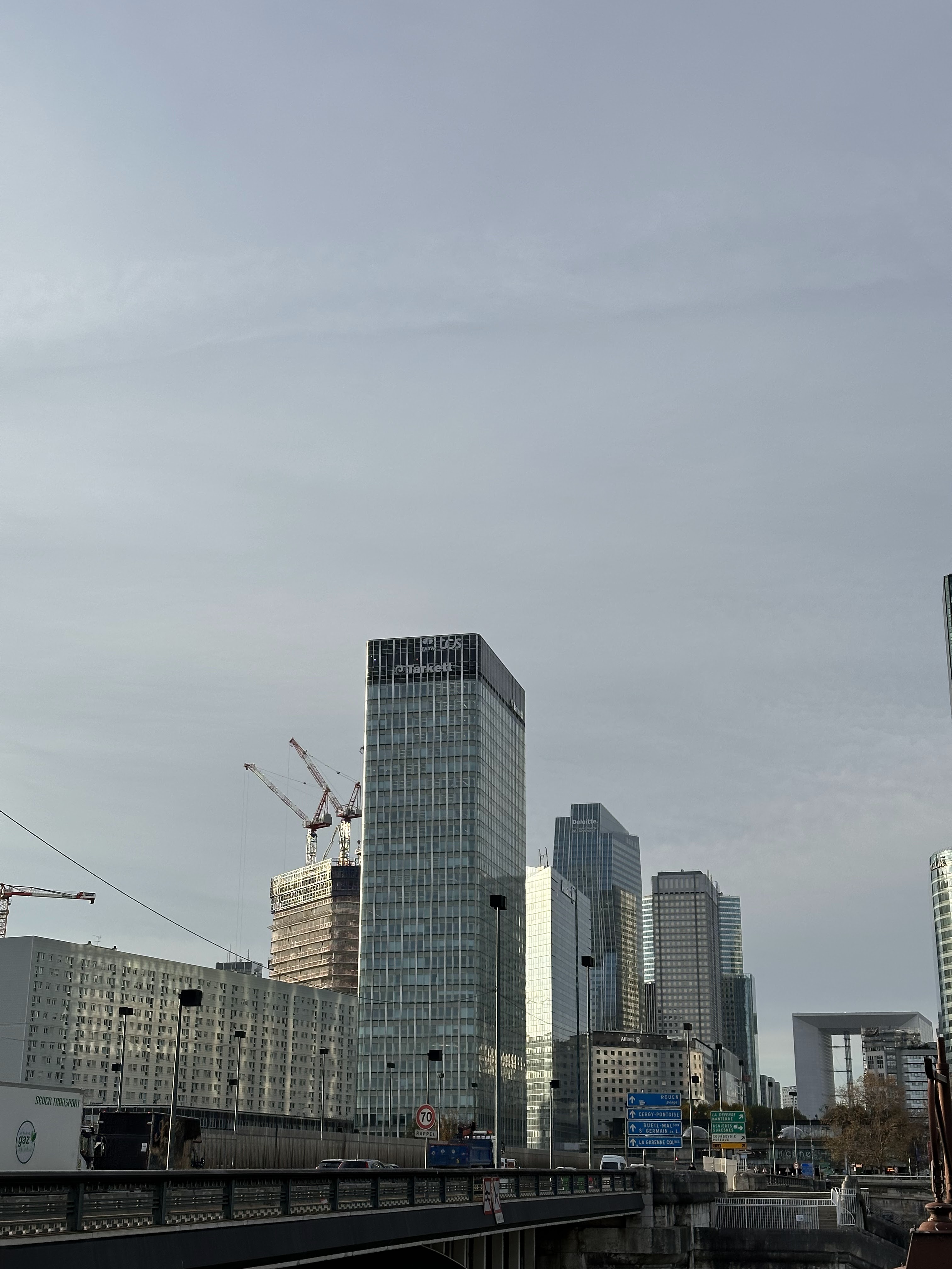 Un pont très très fréquenté quoi ! pas vraiment idéal pour les piétons… mais avec belle vue en direction de l’esplanade de La Défense et sur les bords de Seine de Puteaux et Courbevoie depuis le côté Neuilly (de l’autre côté interdit aux piétons lol. Rien à voir de spécial)