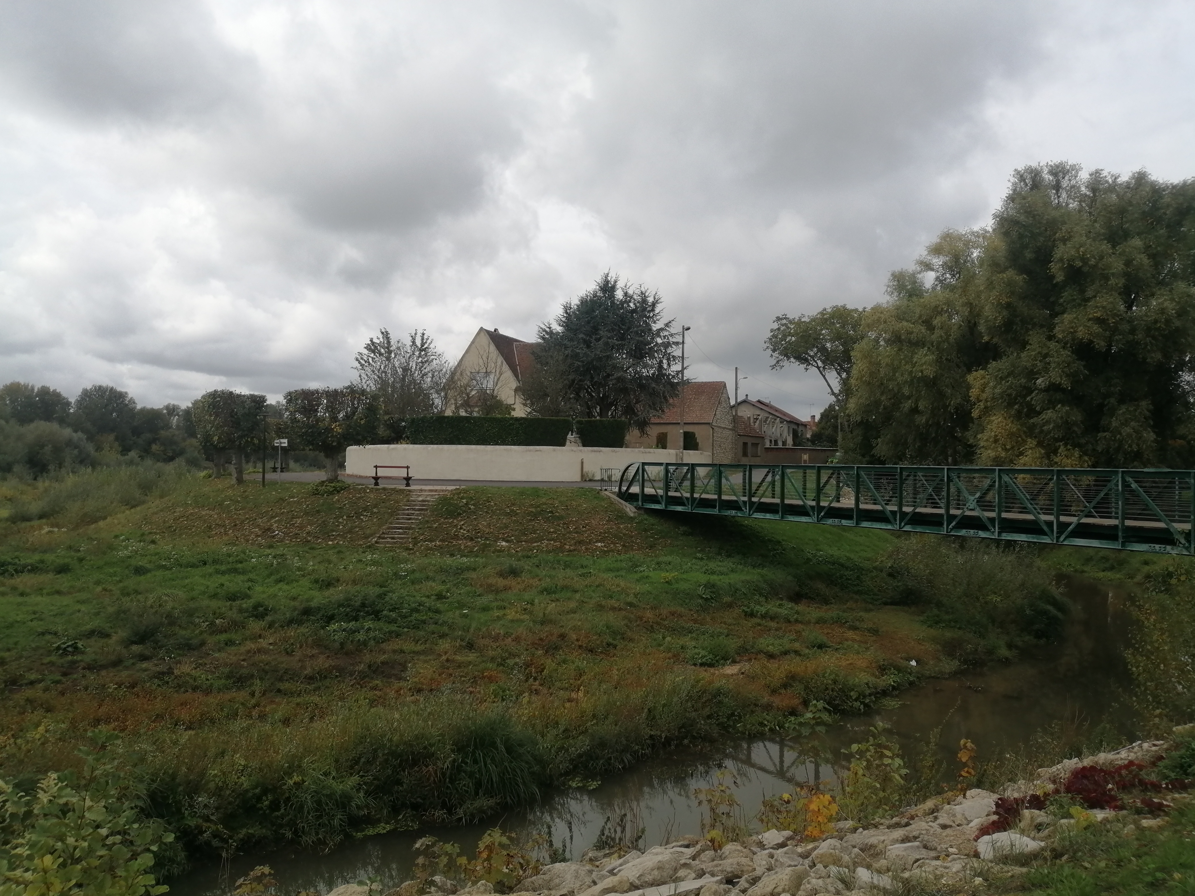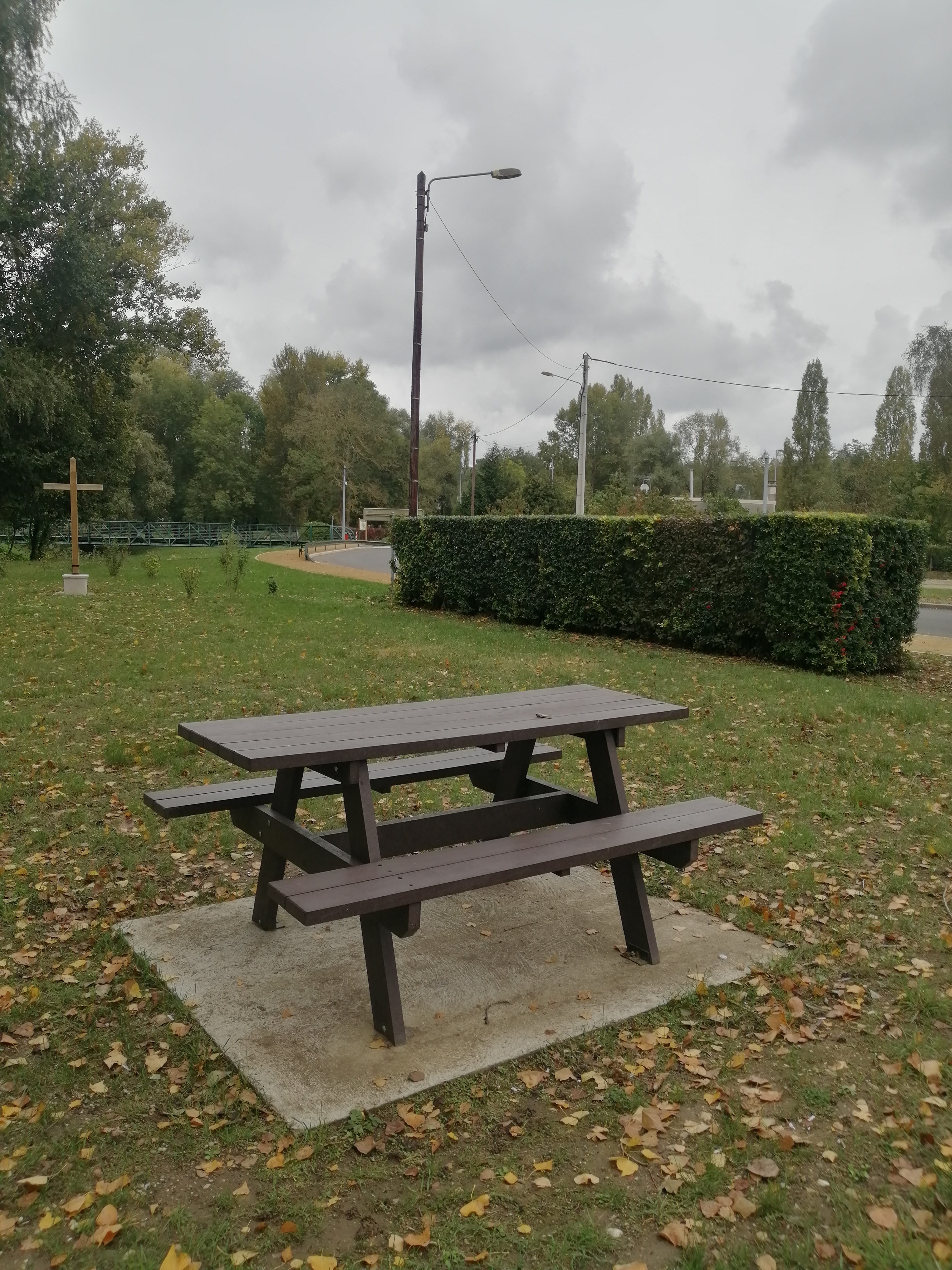 Petit endroit agréable pour déjeuner au bord de la Loire table bancs