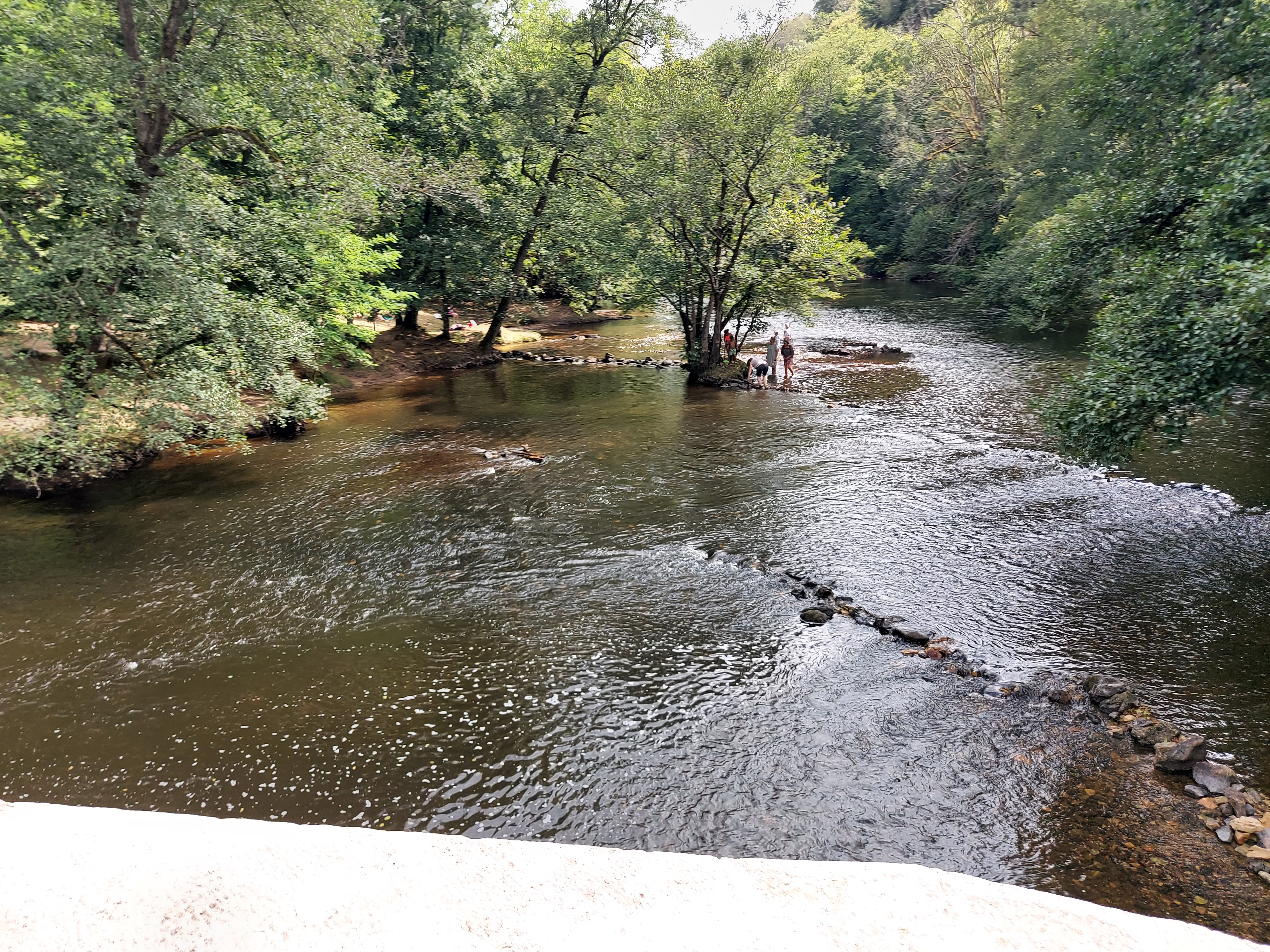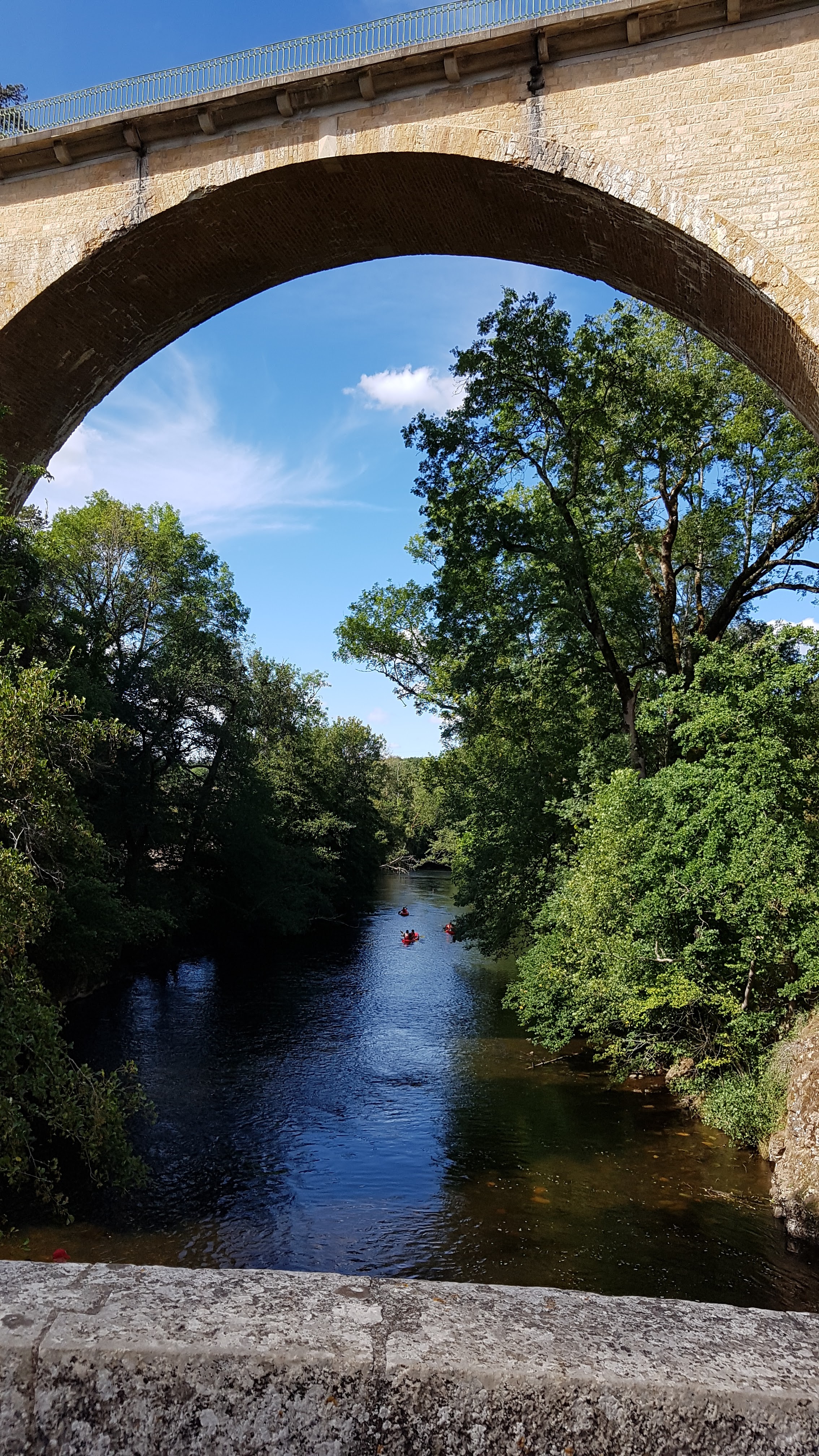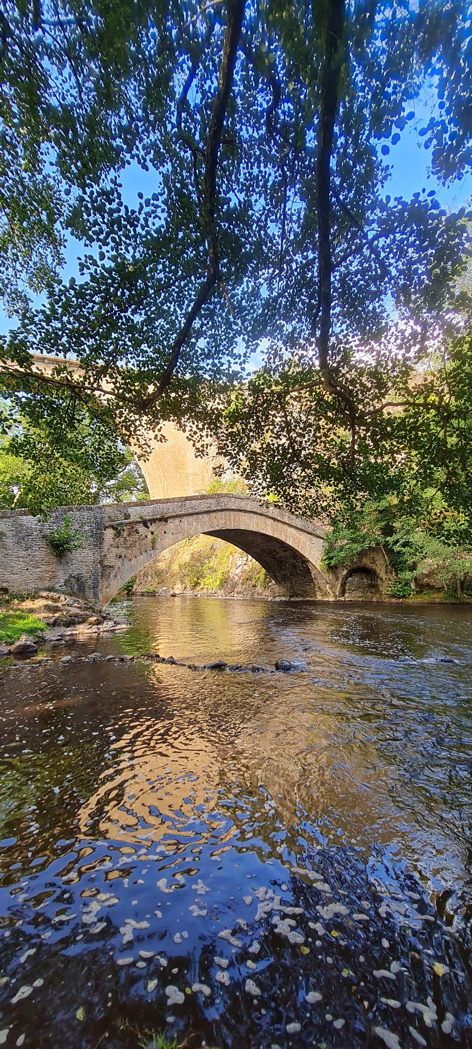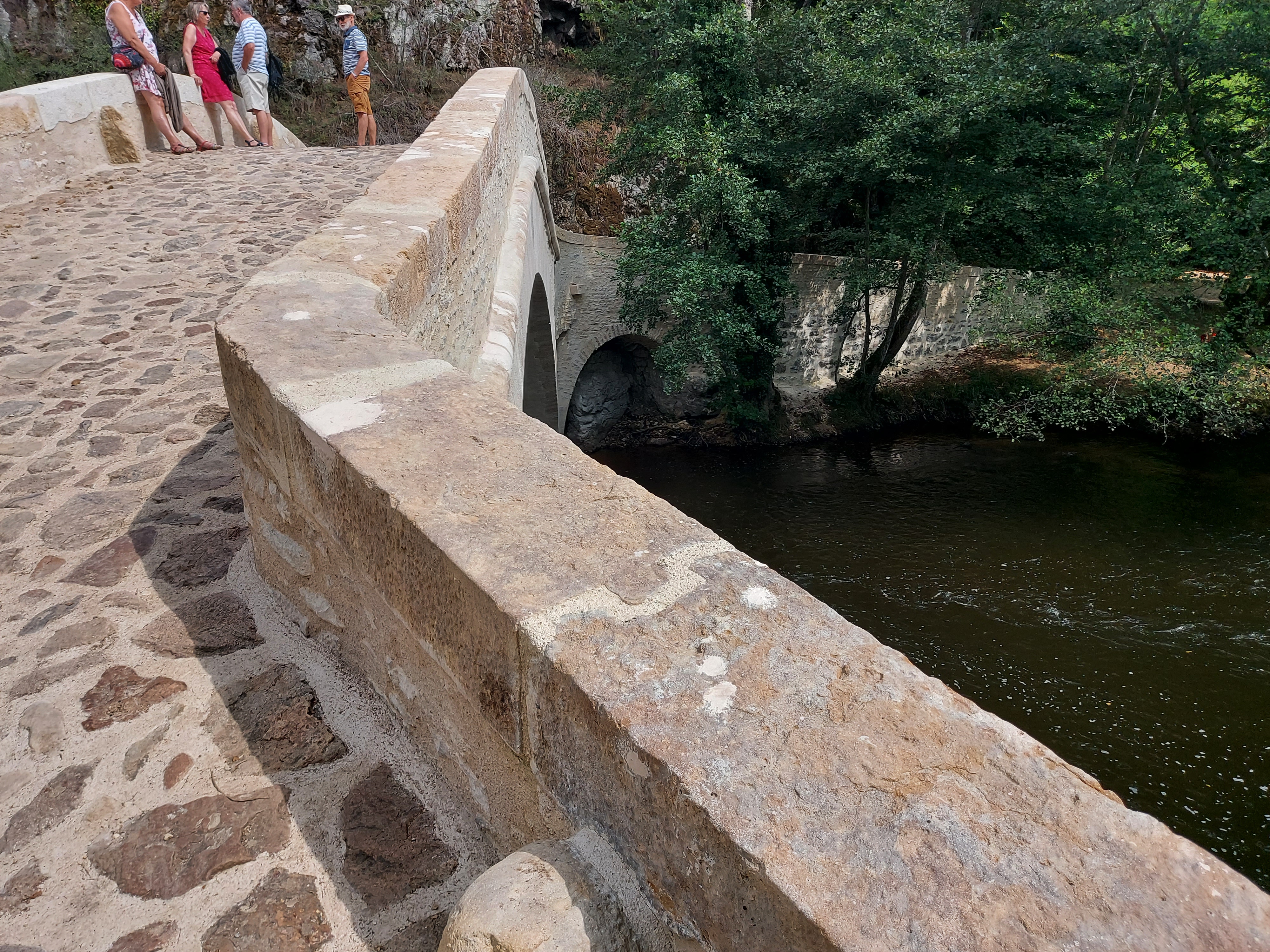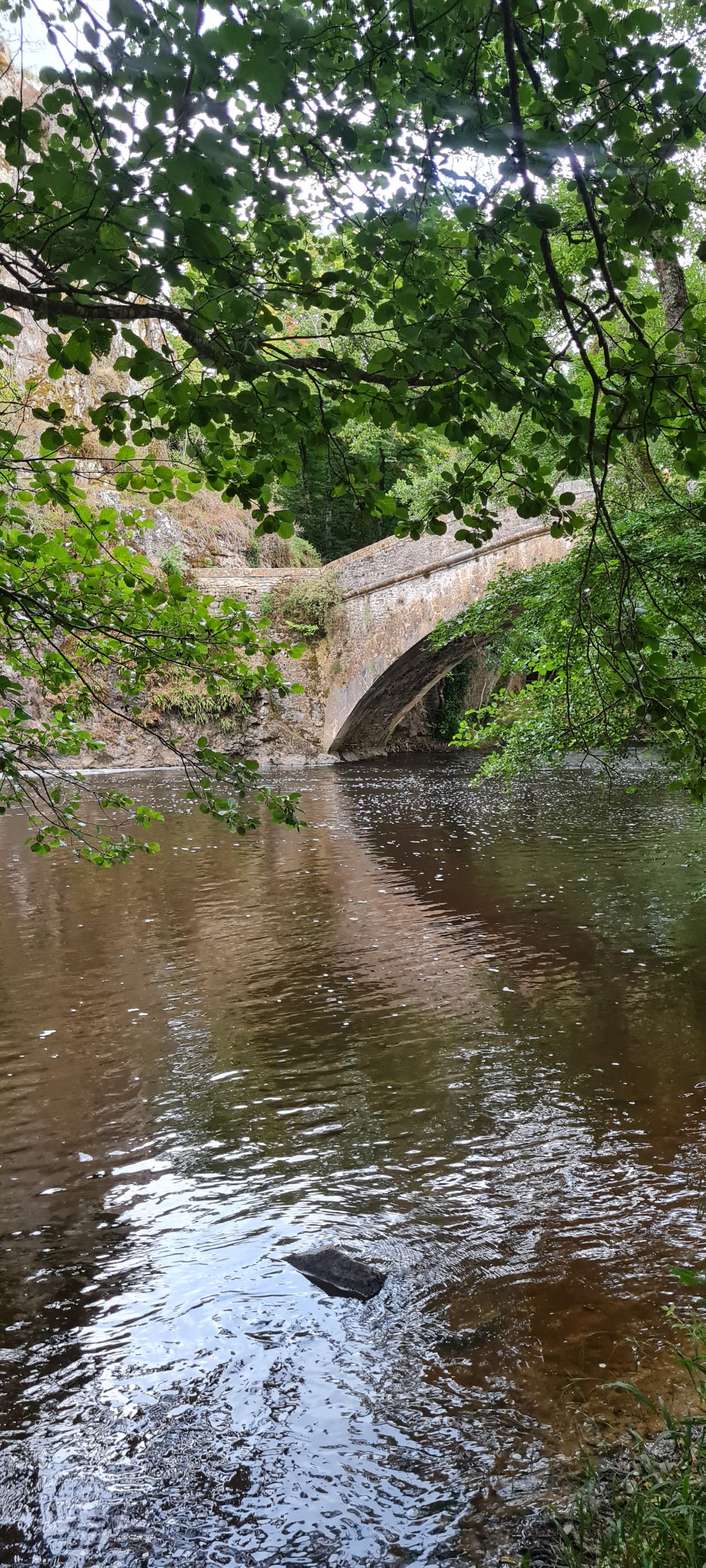 La route pour aller au parking est étroite, on se gare à quelques dizaines de mètres de la rivière, arrivée de nombreux canoës. Jolie vue, à la fois sur le vieux pont (superbement rénové) et sur le nouveau plus haut. Nombreux spots pour se poser pour quelques instants ou la journée, à l'ombre des arbres. Plusieurs tables de pique nique. Petite promenade de 45 minutes à faire le long de la rivière à droite après avoir traversé le pont. Facile d'aller dans l'eau, peu profonde en août 2022. Nombreuses écrevisses, surtout le long de la berge après avoir traversé le vieux pont, dans le renfoncement juste avant l'arbre tombé au sol sur le chemin qui est à 1 mètre de l'eau. Gare à vos doigts 😉
