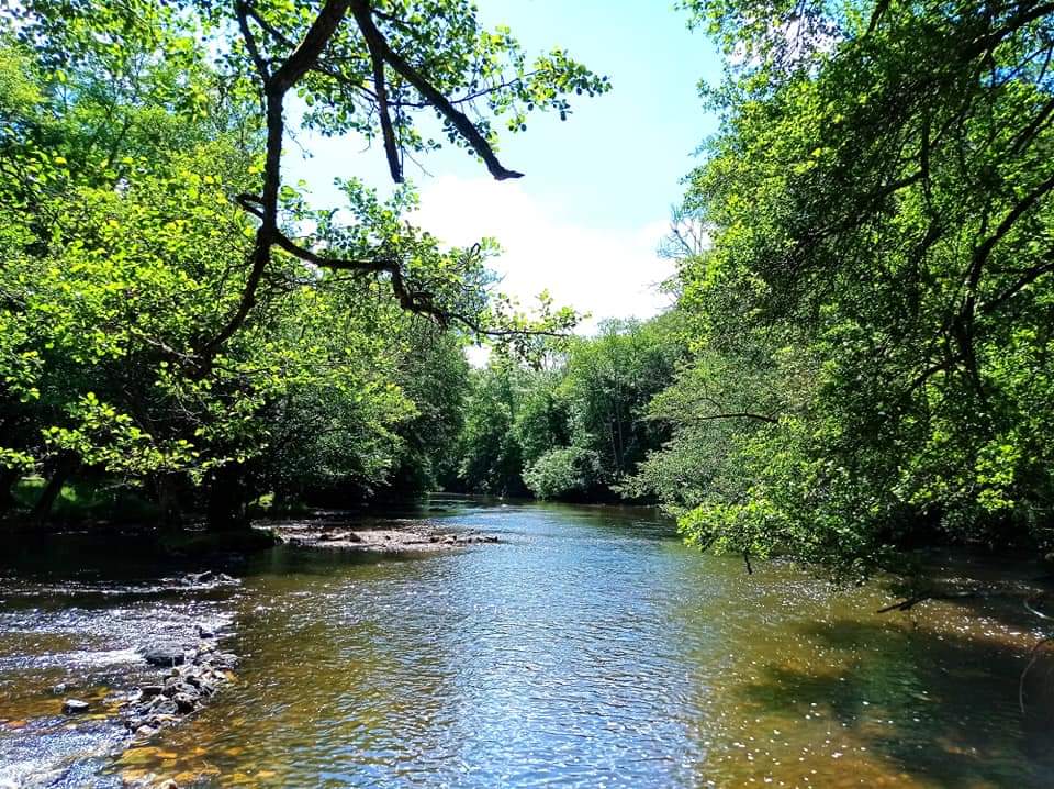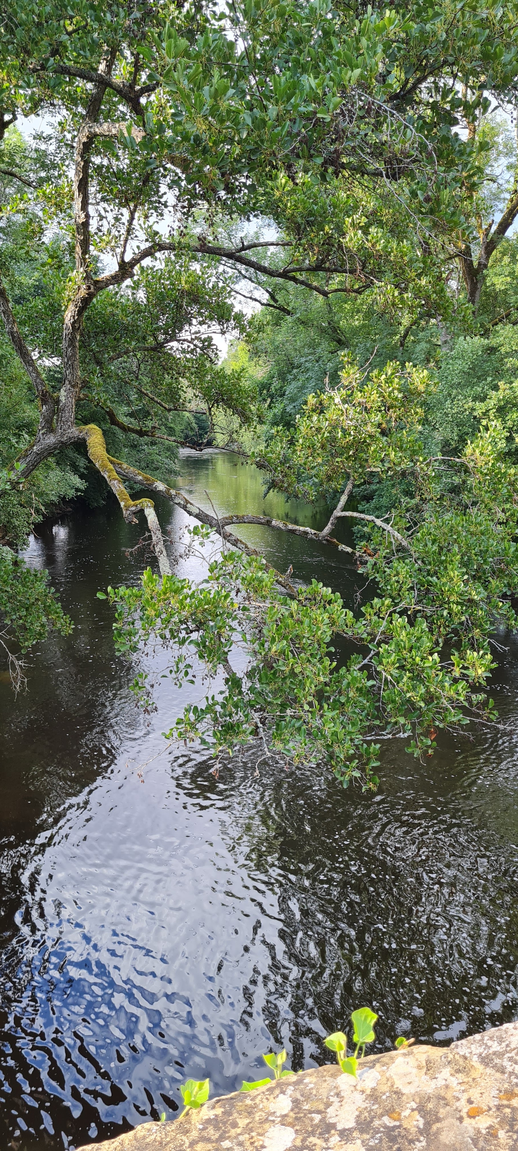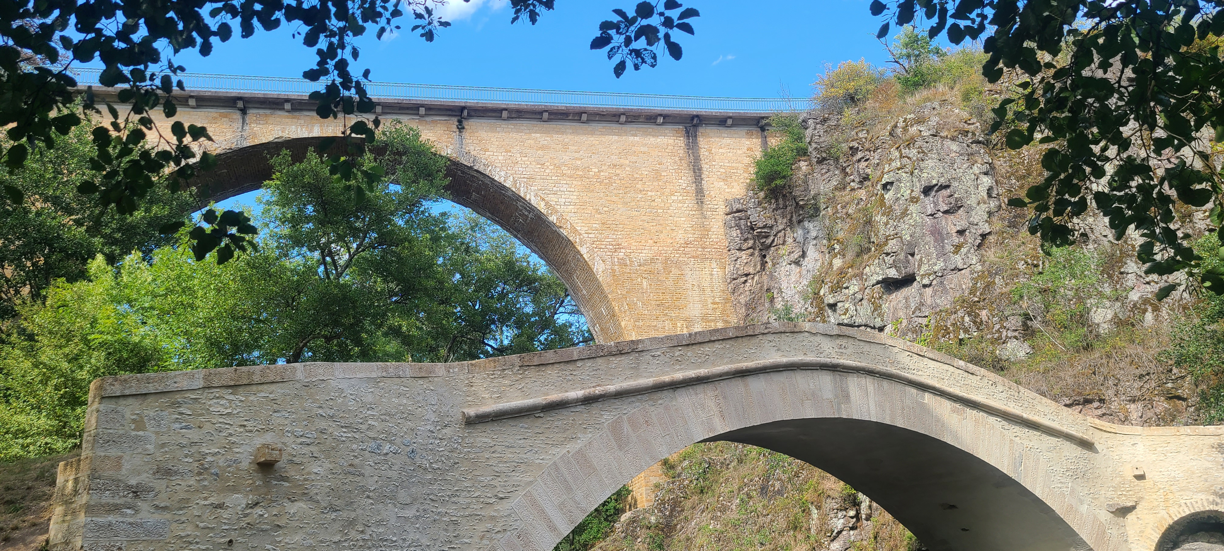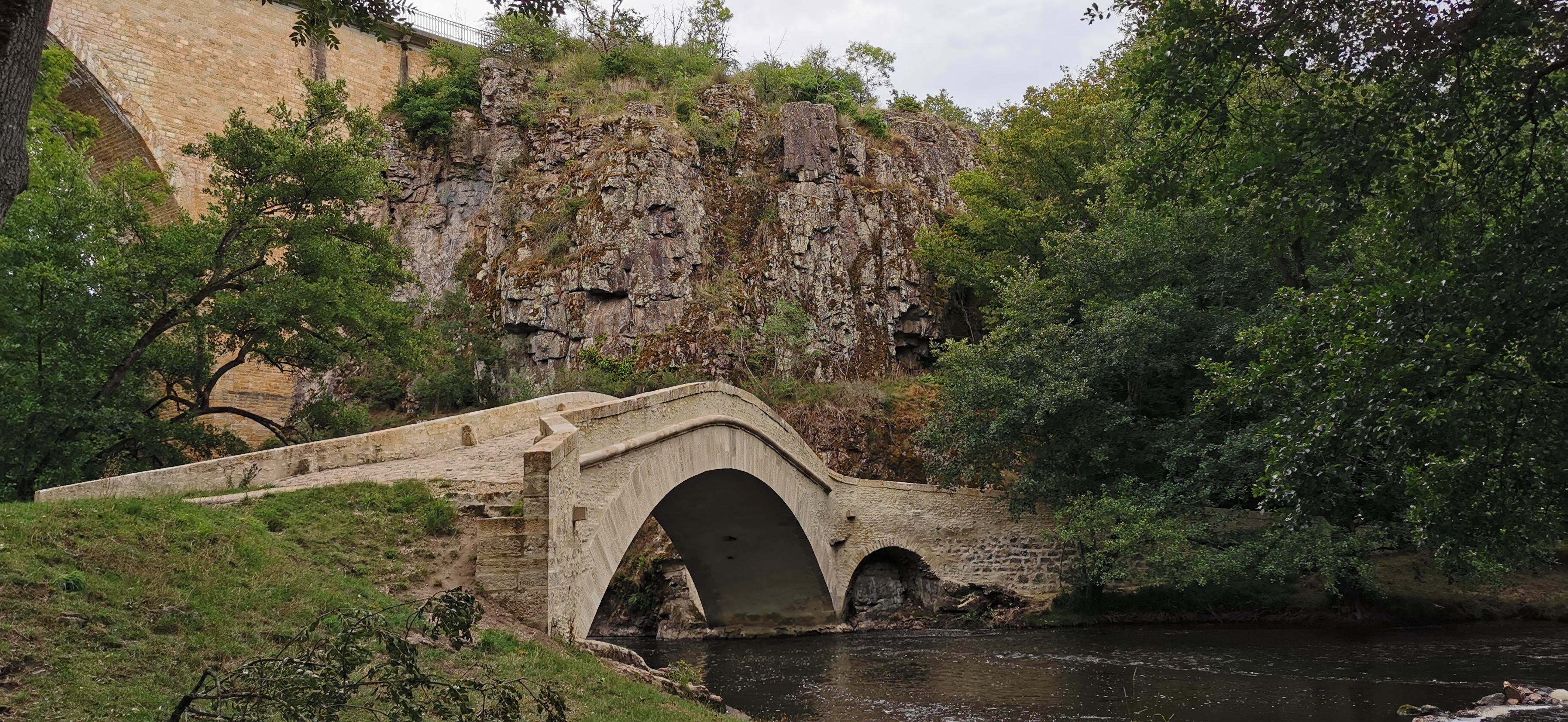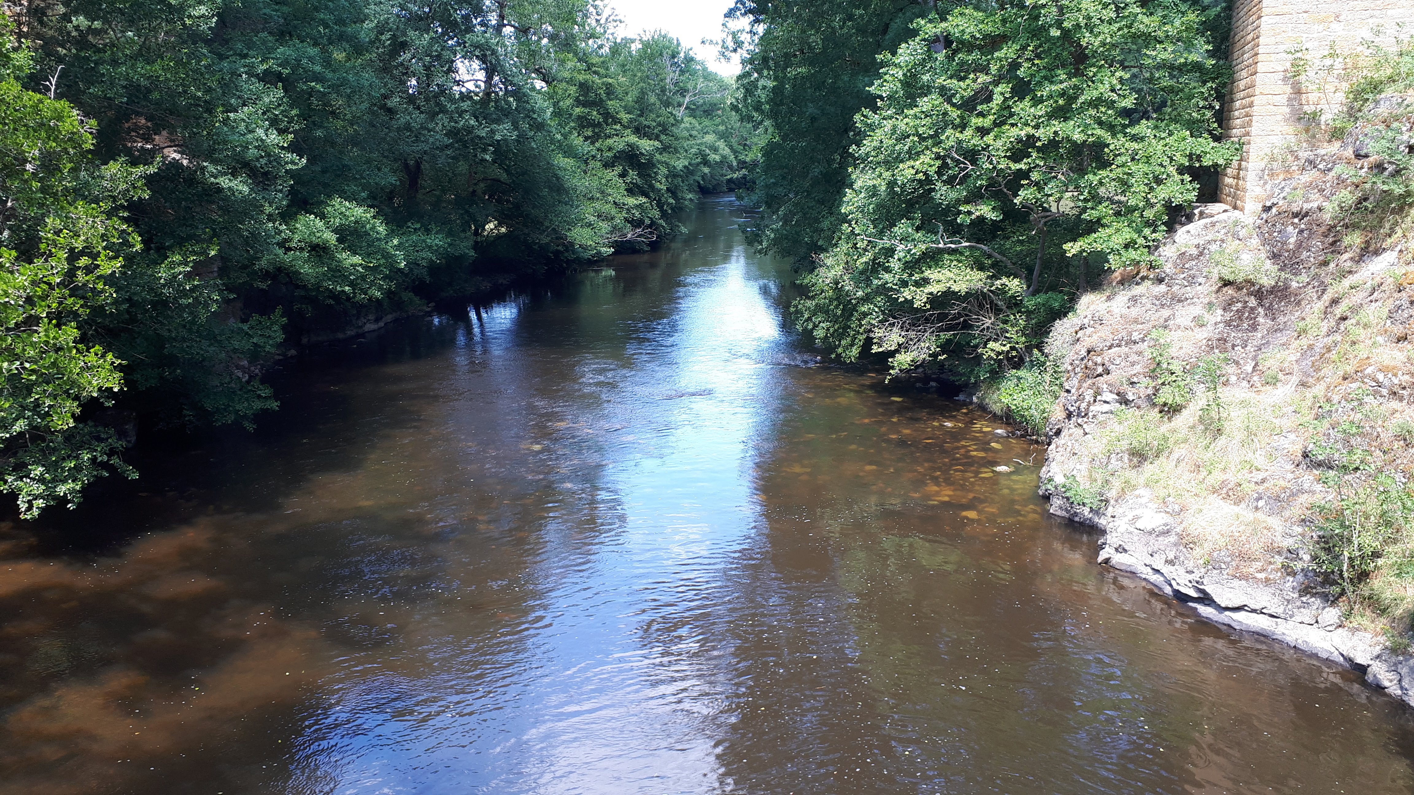 La route pour aller au parking est étroite, on se gare à quelques dizaines de mètres de la rivière, arrivée de nombreux canoës. Jolie vue, à la fois sur le vieux pont (superbement rénové) et sur le nouveau plus haut. Nombreux spots pour se poser pour quelques instants ou la journée, à l'ombre des arbres. Plusieurs tables de pique nique. Petite promenade de 45 minutes à faire le long de la rivière à droite après avoir traversé le pont. Facile d'aller dans l'eau, peu profonde en août 2022. Nombreuses écrevisses, surtout le long de la berge après avoir traversé le vieux pont, dans le renfoncement juste avant l'arbre tombé au sol sur le chemin qui est à 1 mètre de l'eau. Gare à vos doigts 😉