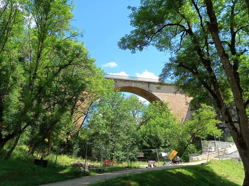 le pont de la grande vadrouille ... en travaux lors de mon passage, il y a une table pour picniquer, une rivière ... a deux pas de la roche percée.
