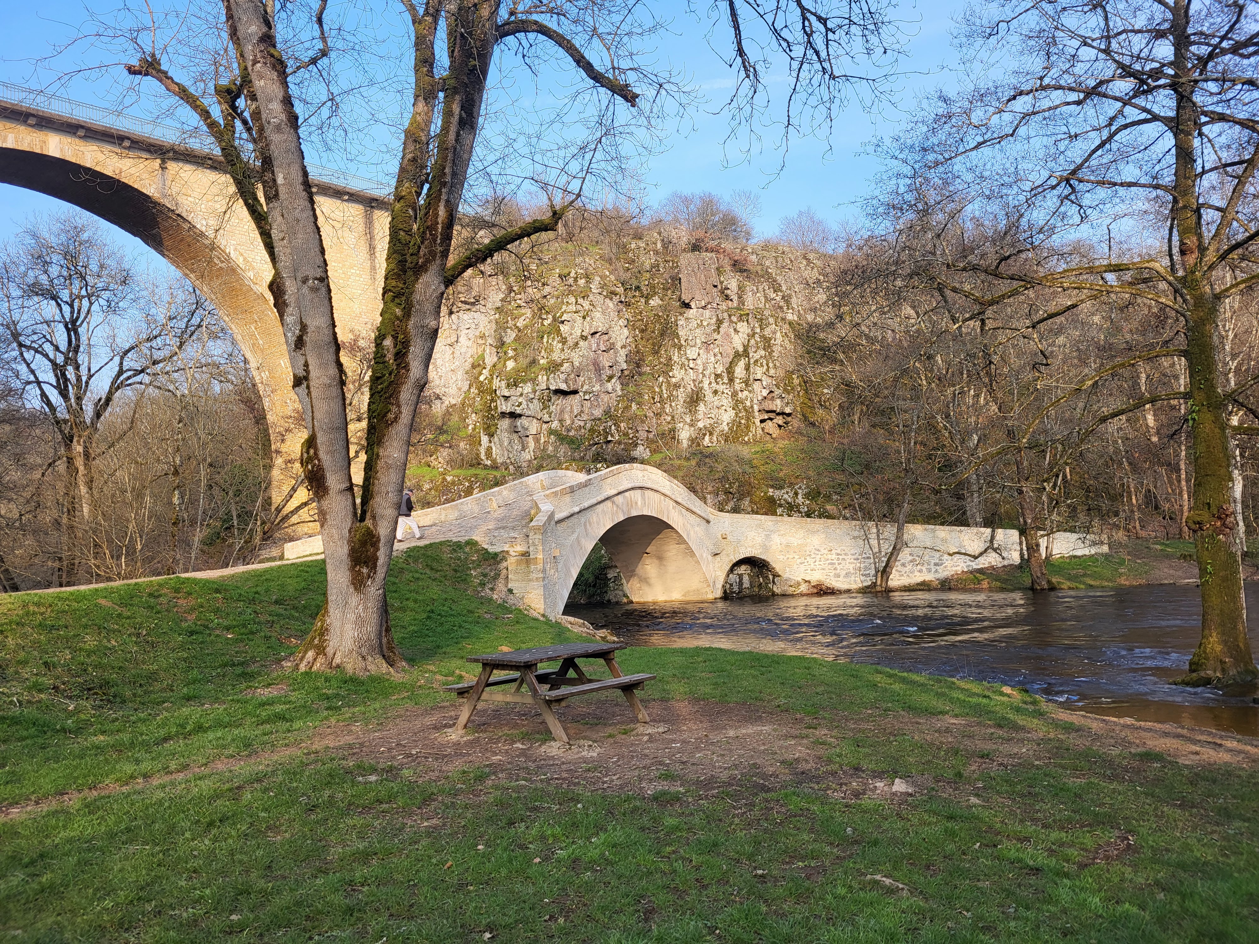 Un pont que je ne connaissait pas et pourtant ! Un magnifique lieu bien entretenu, avec de la place pour se garer, des endroits pour manger, Vous pouvez également aller dans la rivière, bref il endroit parfait pour se reposer :).