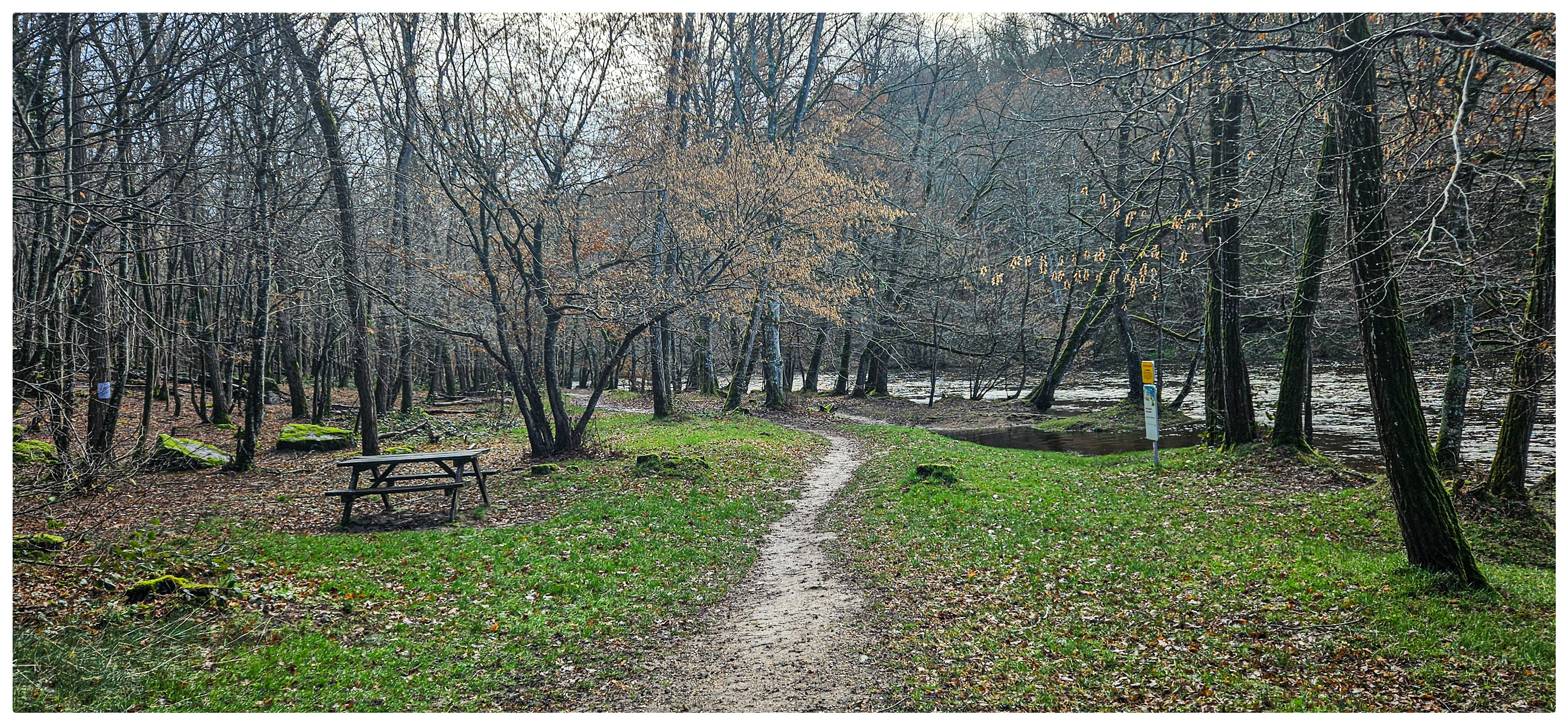 Belle forêt pour se promener et les 2 ponts sont magnifiques ensemble. Sur les chemins secs, on pouvait se promener, mais c'était trop humide pour nous
