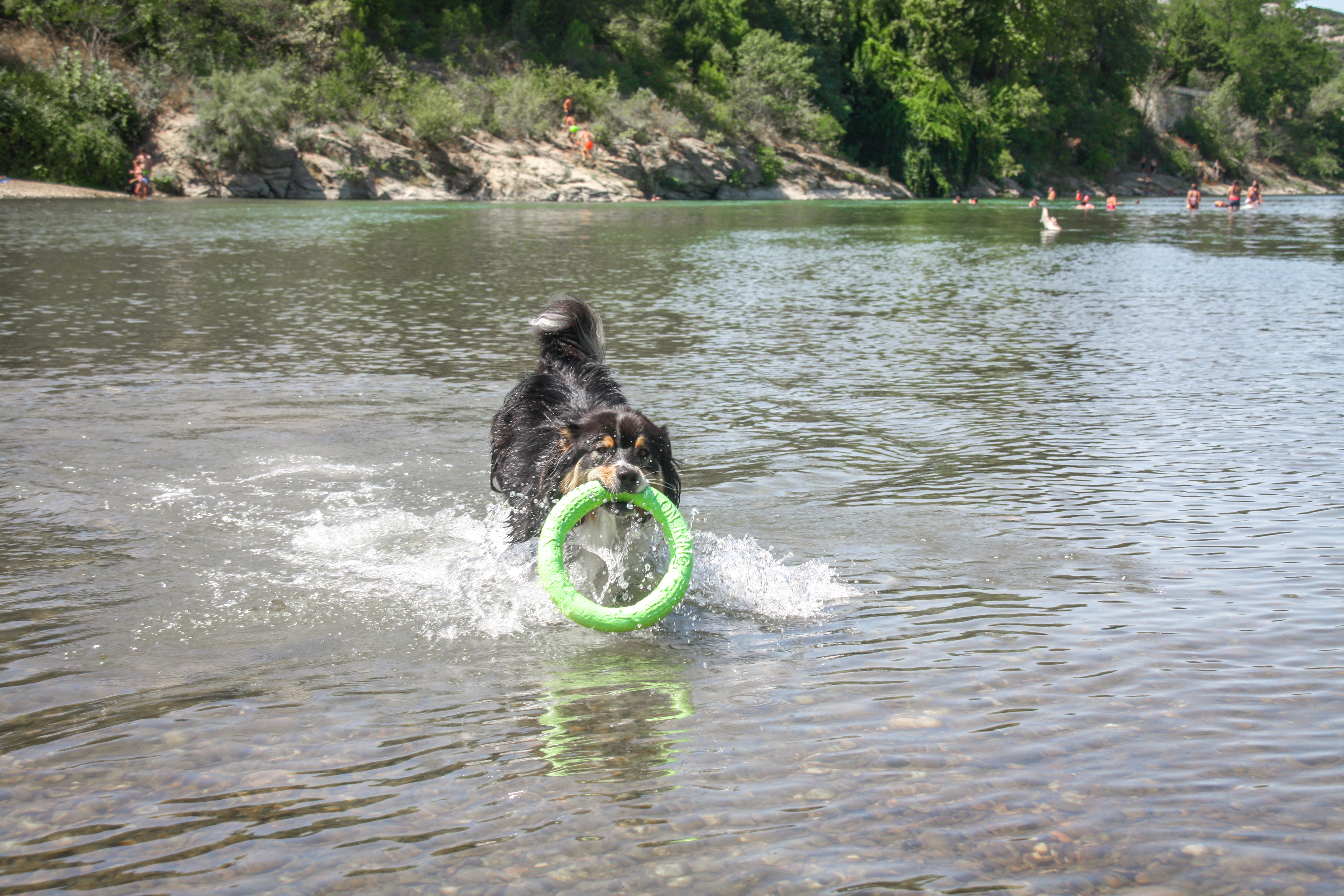 Super endroit pour se rafraîchir.... Et pour les toutous aussi, mais attention aux galets, a force ça leurs irrites les coussinets