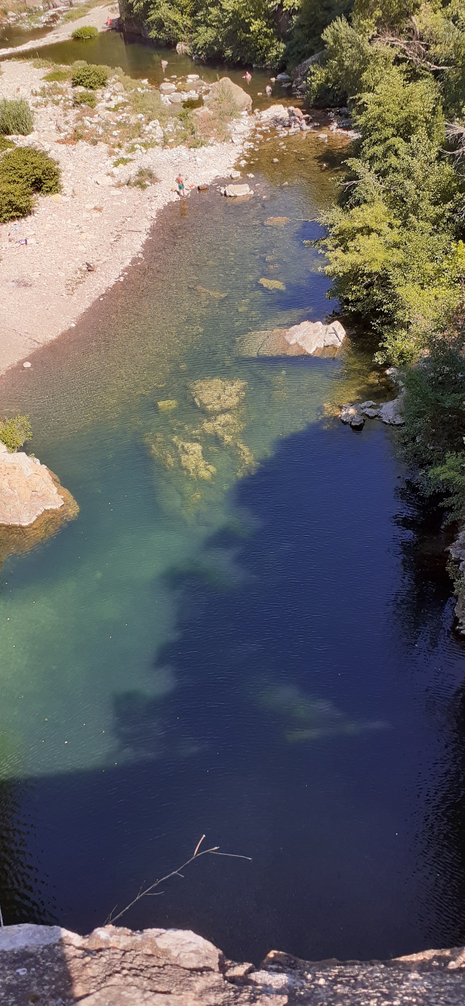 Eau très propre et rafraîchissante par forte chaleur estivale Pour les plus courageux saut depuis le pont = sensations fortes garanties mais port de chaussures obligatoires pour pénétration dans l’eau en « sécurité »