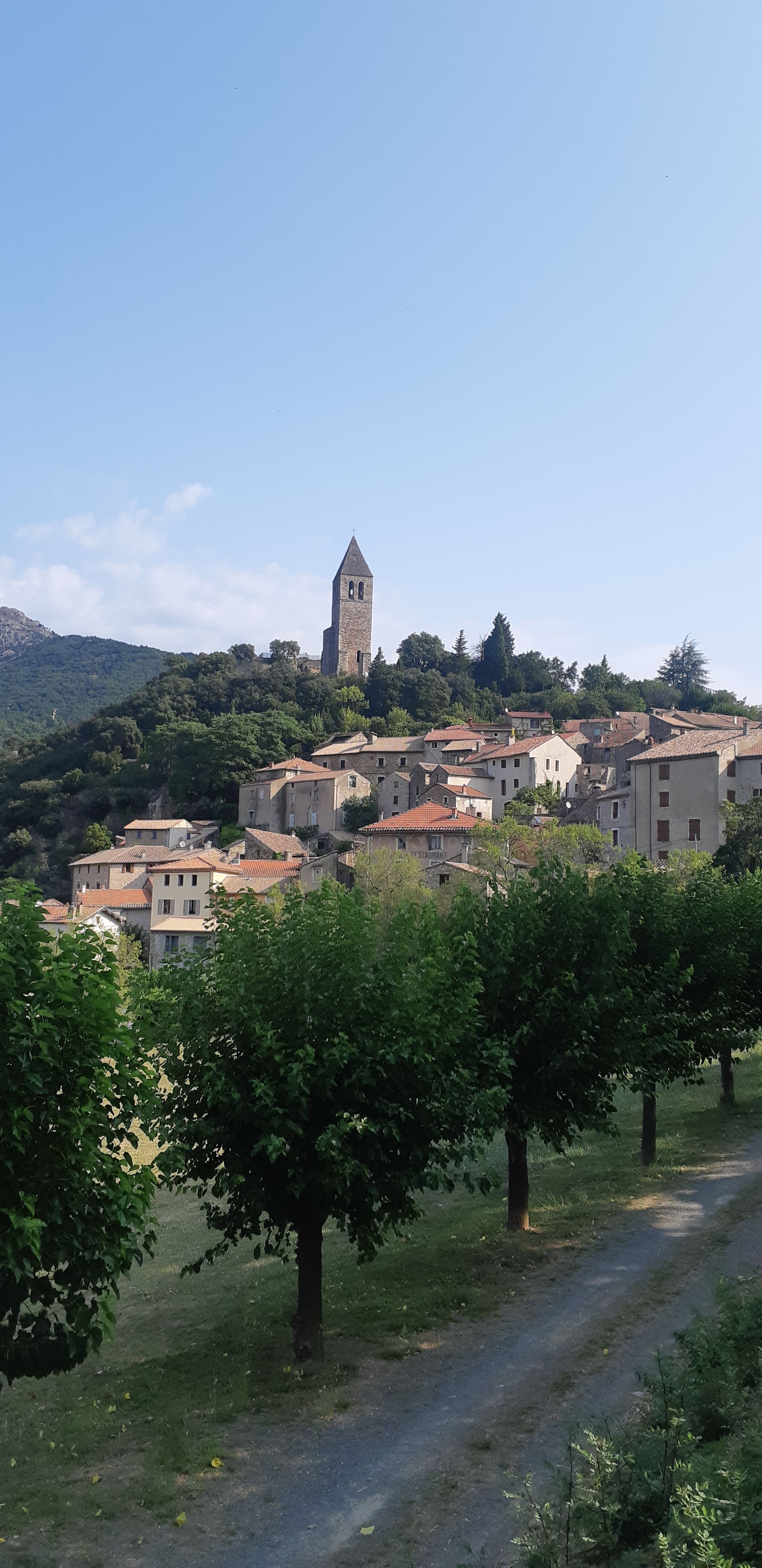 Très beau paysage avec vue sur le Caroux. Jeu des pistes en téléchargement gratuit pour les enfants que les motive à parcourir le village d'olargues.