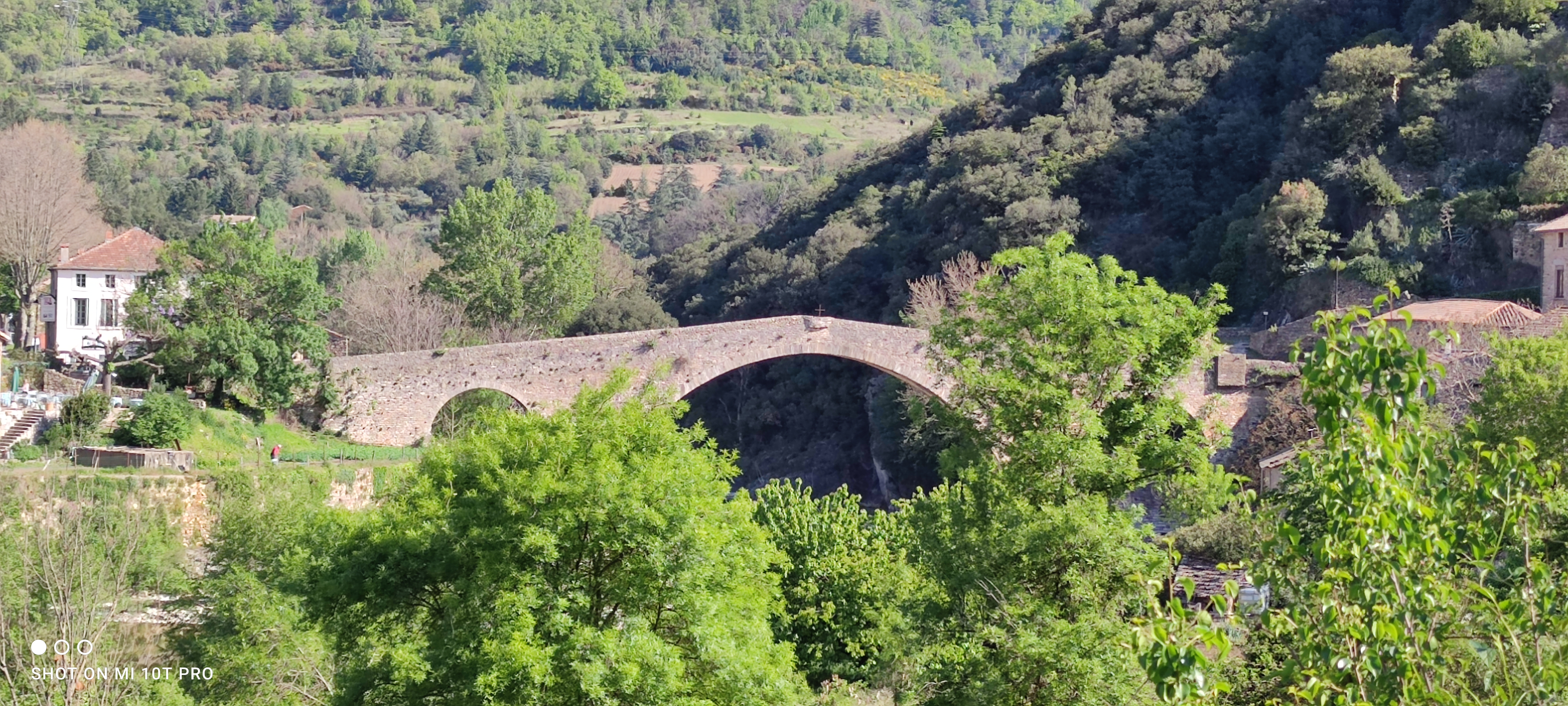 En sortie d'Olargues, ce vieux pont en pierres confère une ambiance paisible à ce beau decor !