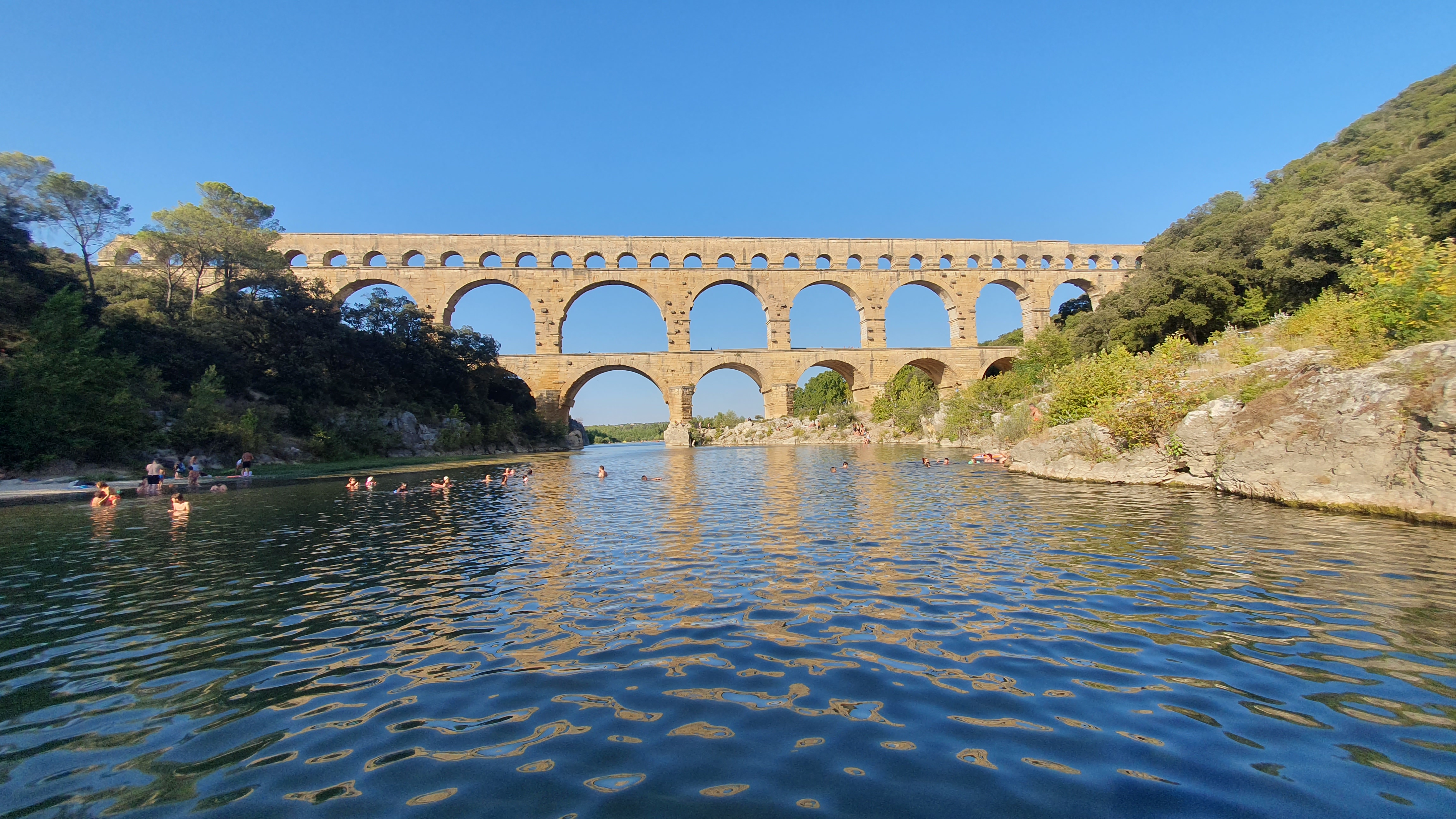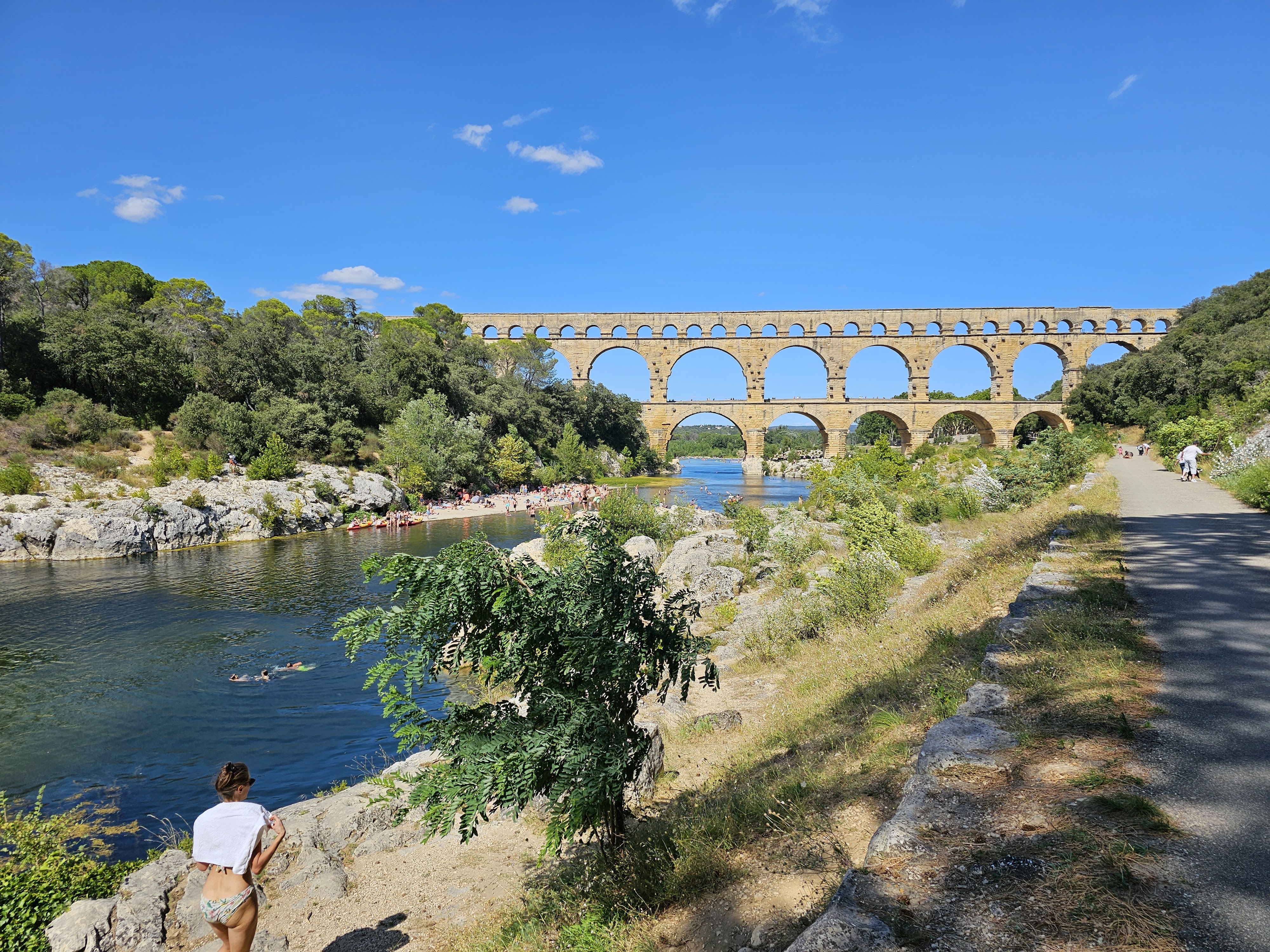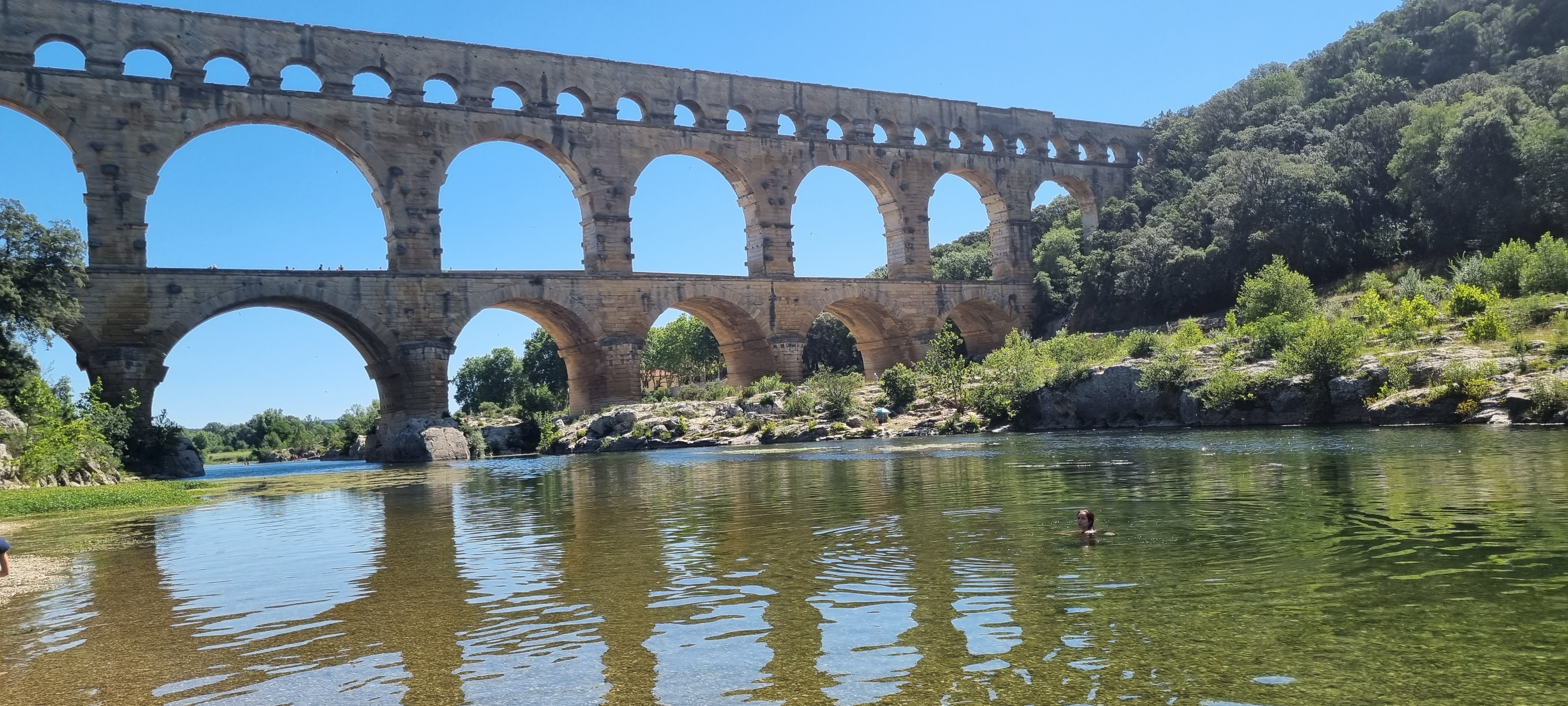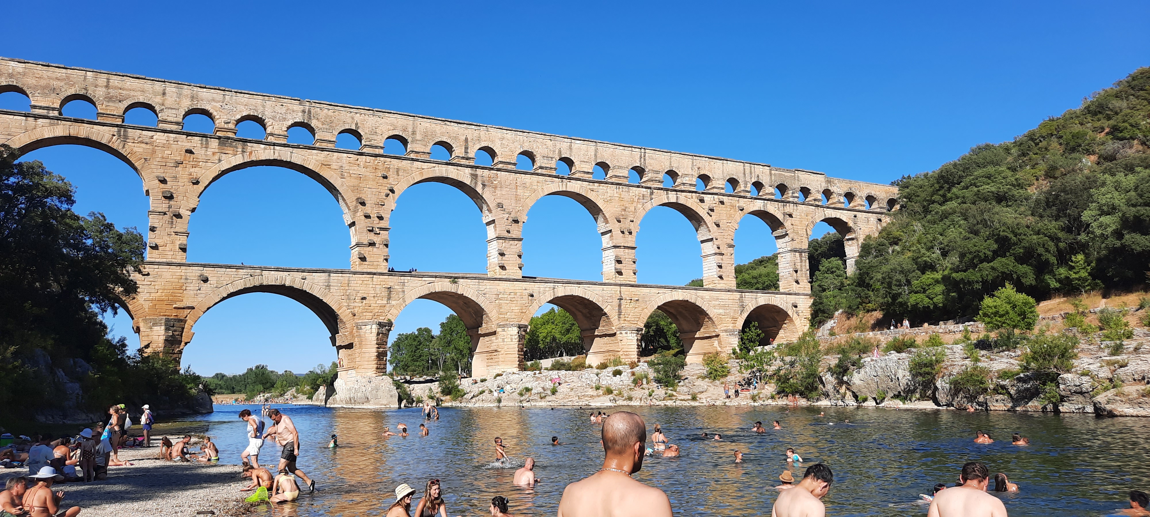 Toujours sympa de visiter le Pont du Gard ! Les petites plages m'ont bien rafraîchies dans mon bivouac caniculaire, et j'ai eu la bonne surprise de découvrir les spectacles son et lumière en nocturne les soirs d'été !